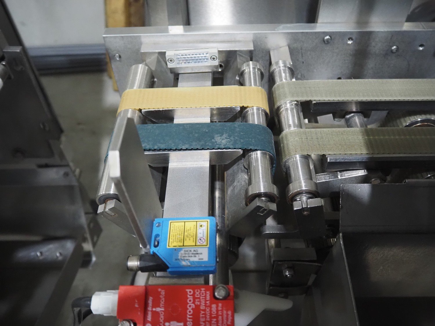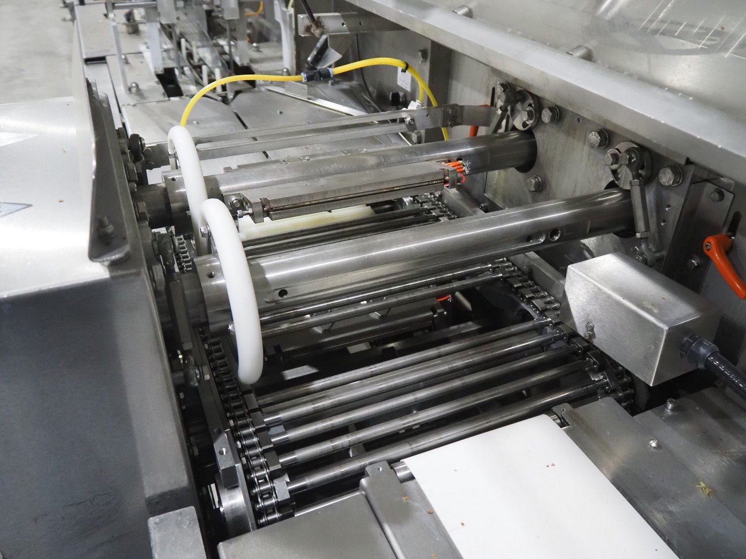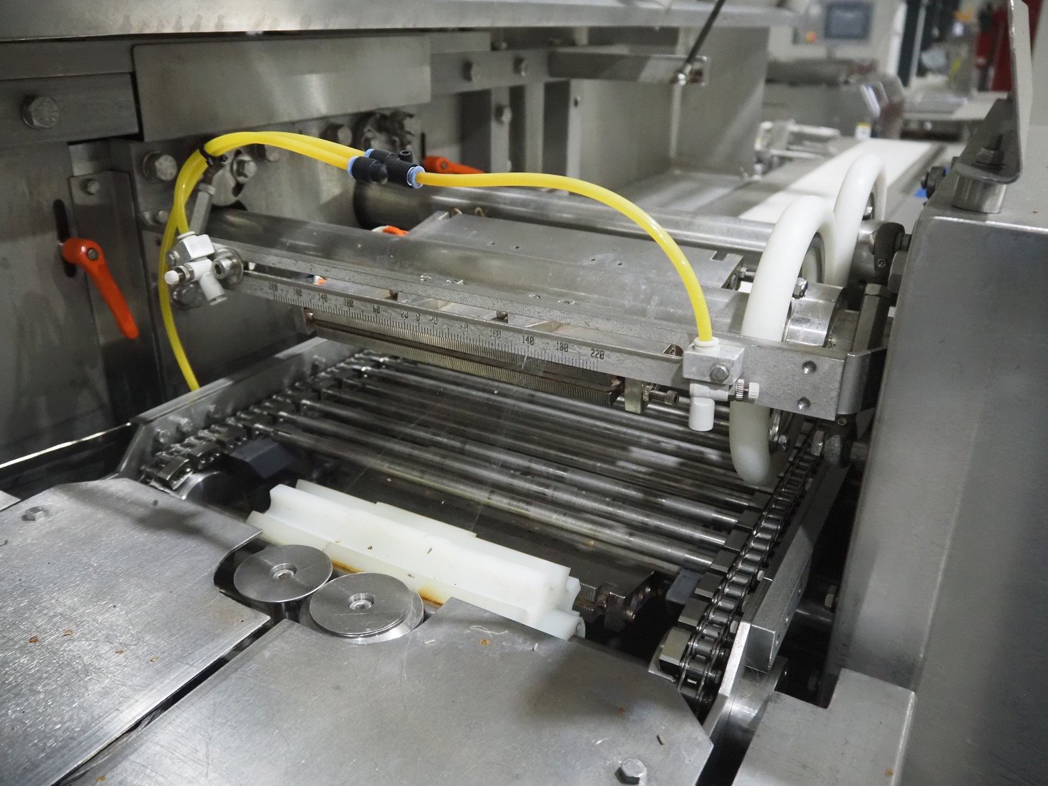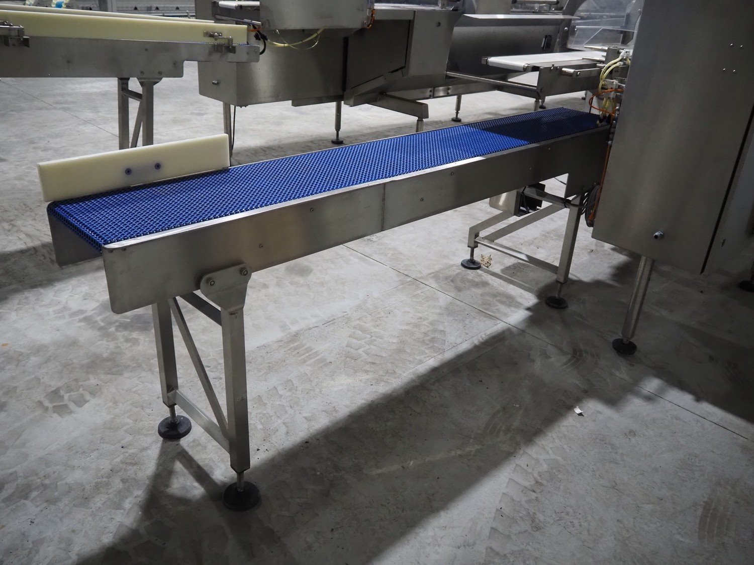 Bradman Lake Group dual feed flow packer, machine type: FT120CLX, serial number: 7098, year of construction: 2006, 415 V, 3 Ph, 50 Hz, 10 kW, plastic belt with dividers, belt width: (2x) 40 mm, divider height: 35 mm, distance between dividers: 300 mm, seal width: 230 mm, total dimensions: 5750 mm x 1200 mm x 2500 mm. Including infeed and outfeed belt, plastic infeed belt , belt width: 160 mm, total dimension: 3500 mm x 980 mm x 1550 mm. plastic outfeed belt, plastic mesh belt, belt width: 300 mm, total dimensions: 2600 mm x 600 mm x 1250 mm.