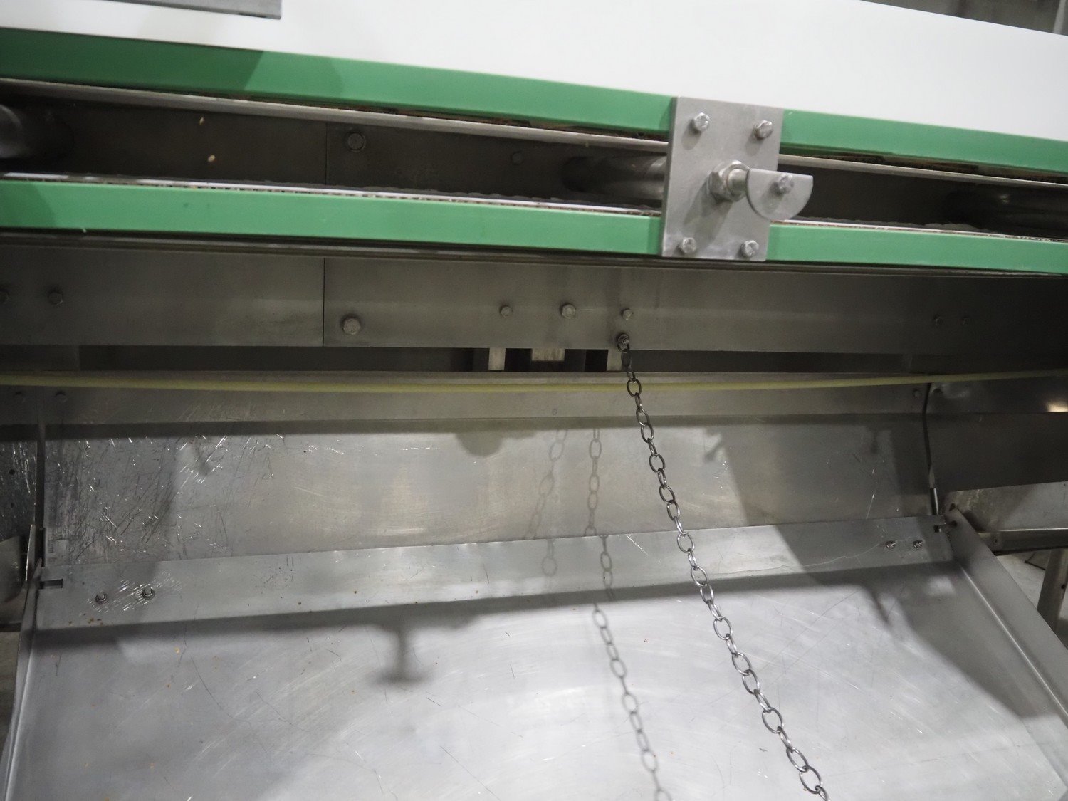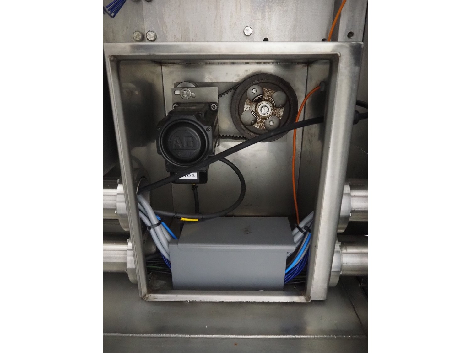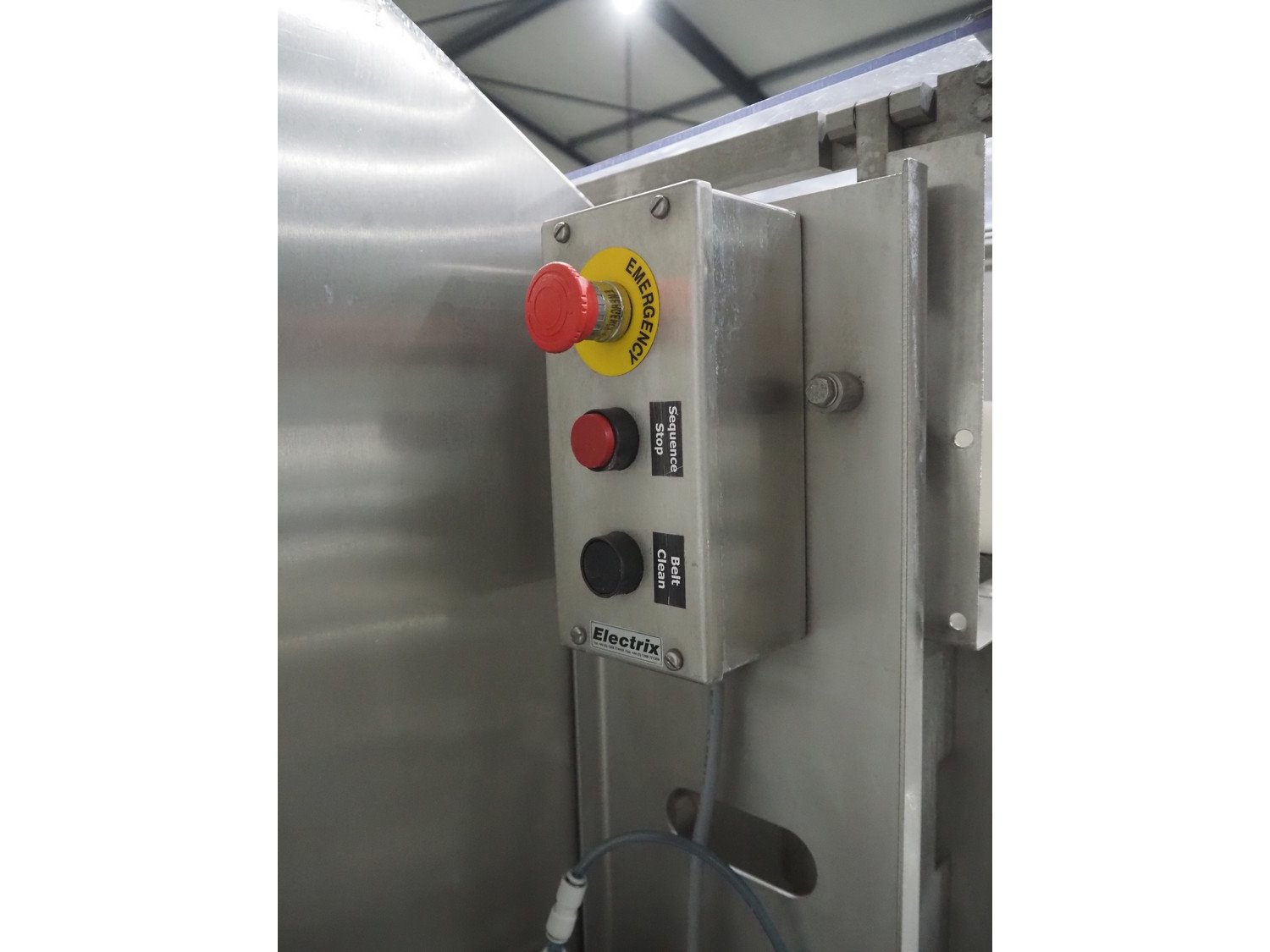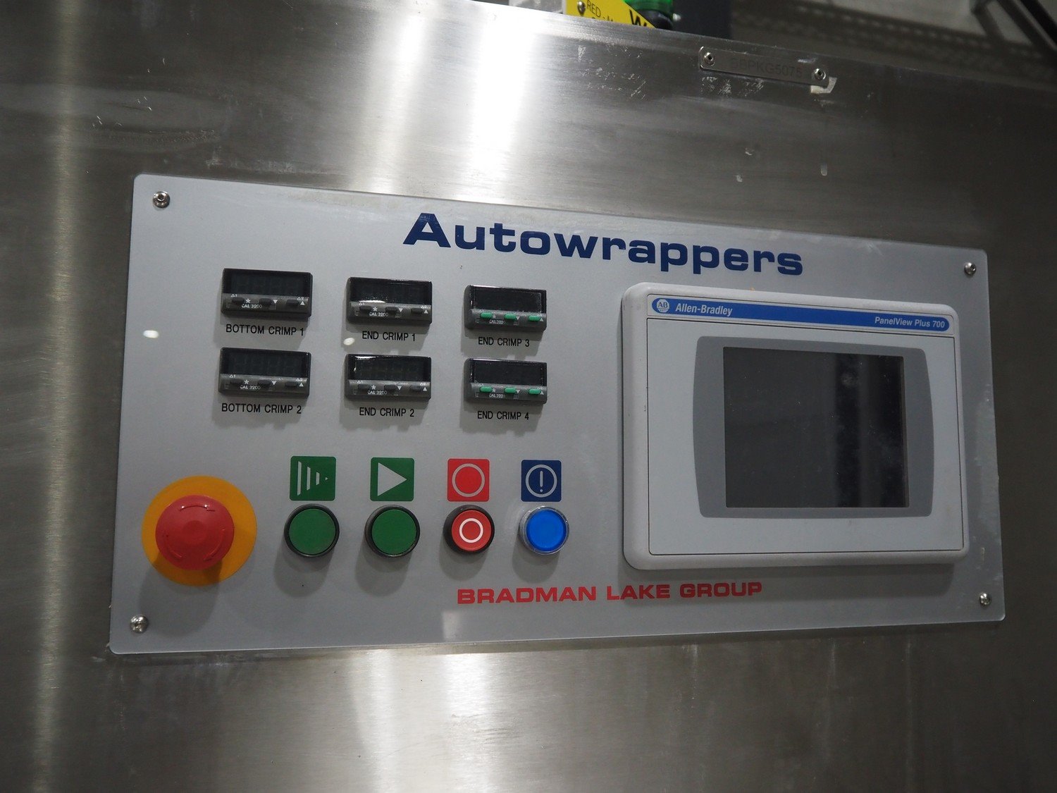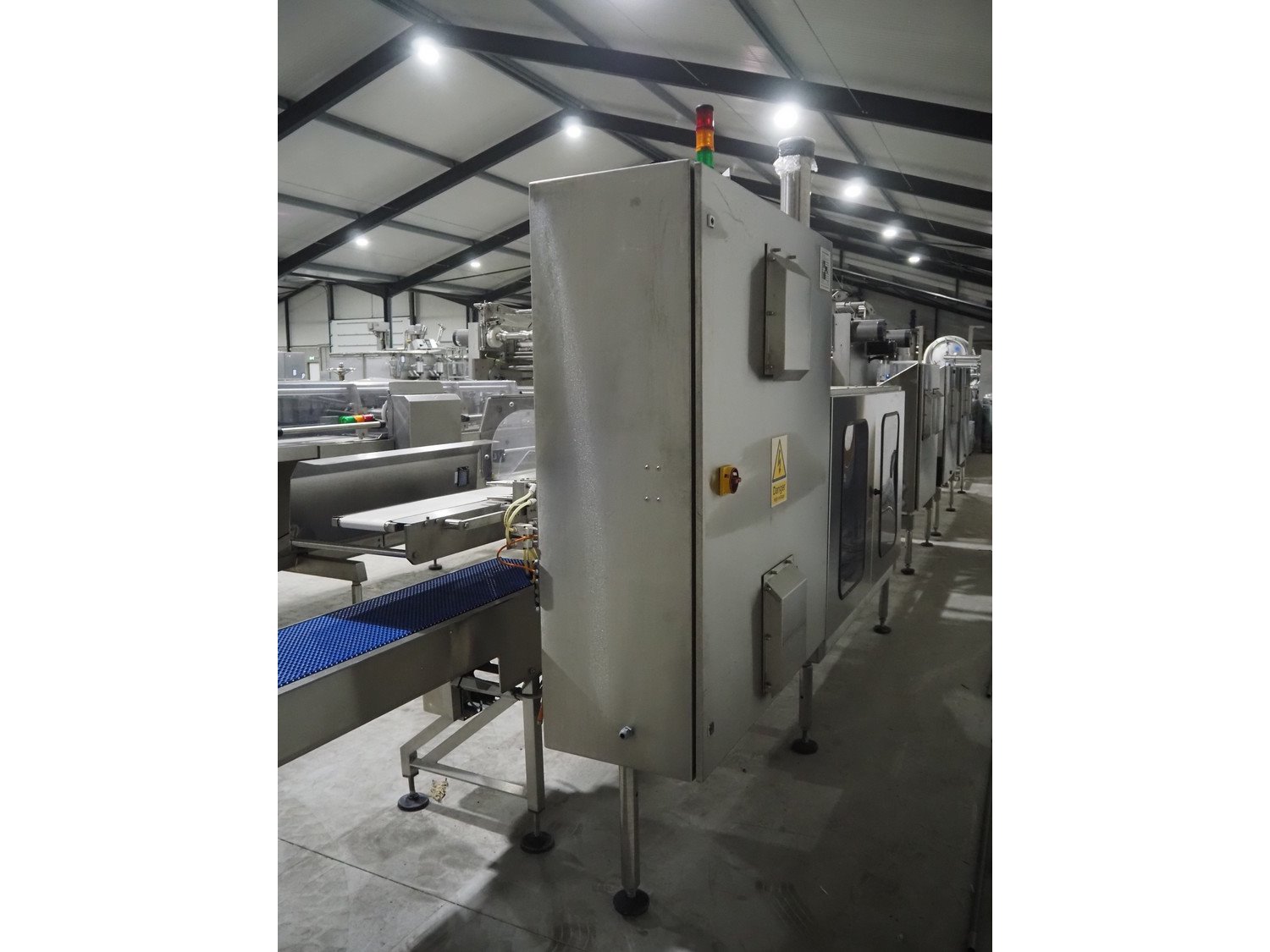 Bradman Lake Group dual feed flow packer, machine type: FT120CLX, serial number: 7098, year of construction: 2006, 415 V, 3 Ph, 50 Hz, 10 kW, plastic belt with dividers, belt width: (2x) 40 mm, divider height: 35 mm, distance between dividers: 300 mm, seal width: 230 mm, total dimensions: 5750 mm x 1200 mm x 2500 mm. Including infeed and outfeed belt, plastic infeed belt , belt width: 160 mm, total dimension: 3500 mm x 980 mm x 1550 mm. plastic outfeed belt, plastic mesh belt, belt width: 300 mm, total dimensions: 2600 mm x 600 mm x 1250 mm.
