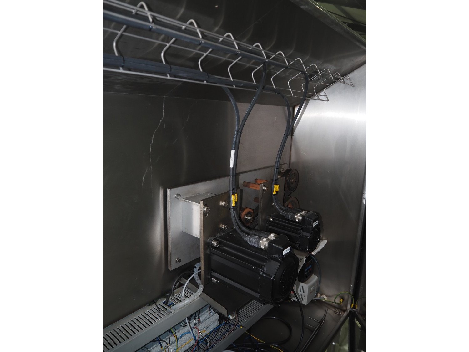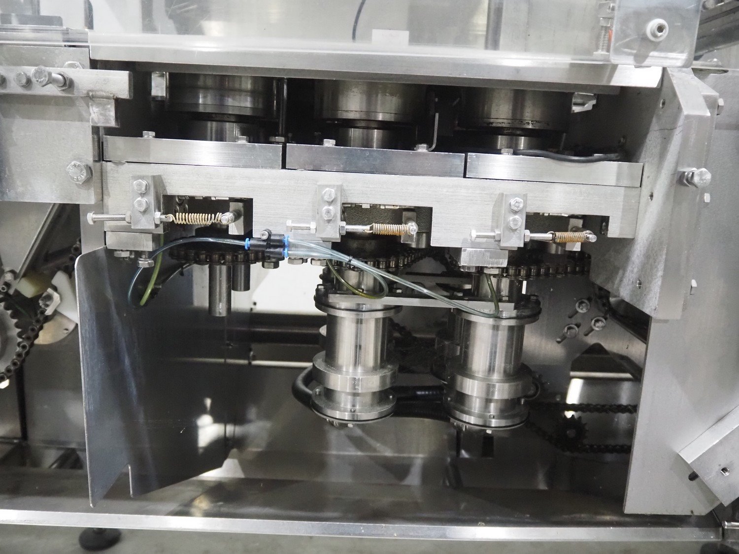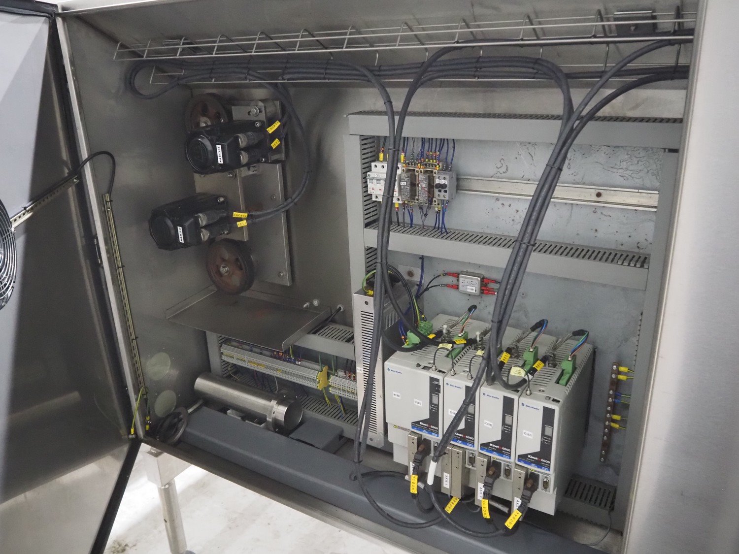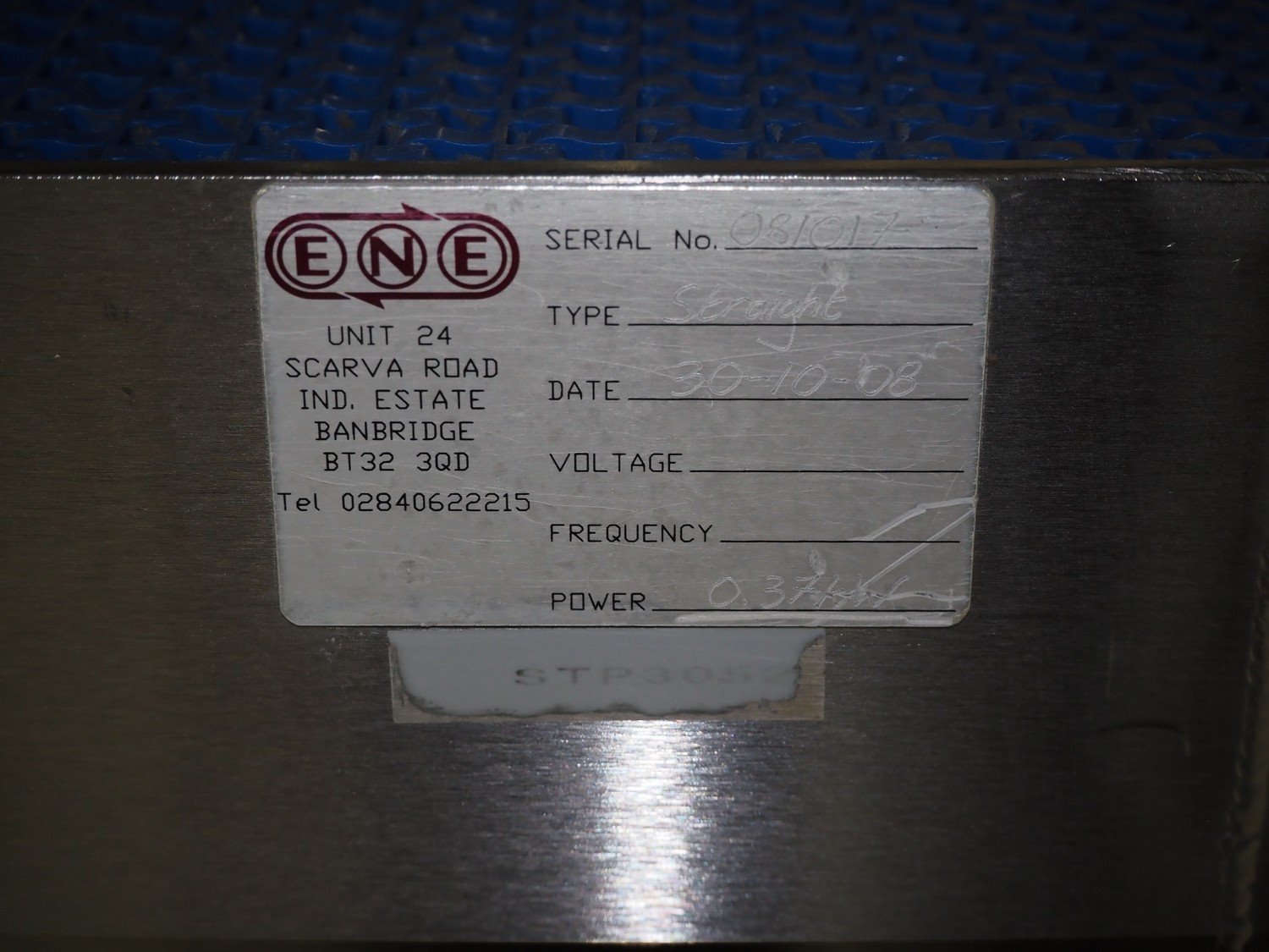 Bradman Lake Group dual feed flow packer, machine type: FT120CLX, serial number: 7098, year of construction: 2006, 415 V, 3 Ph, 50 Hz, 10 kW, plastic belt with dividers, belt width: (2x) 40 mm, divider height: 35 mm, distance between dividers: 300 mm, seal width: 230 mm, total dimensions: 5750 mm x 1200 mm x 2500 mm. Including infeed and outfeed belt, plastic infeed belt , belt width: 160 mm, total dimension: 3500 mm x 980 mm x 1550 mm. plastic outfeed belt, plastic mesh belt, belt width: 300 mm, total dimensions: 2600 mm x 600 mm x 1250 mm.