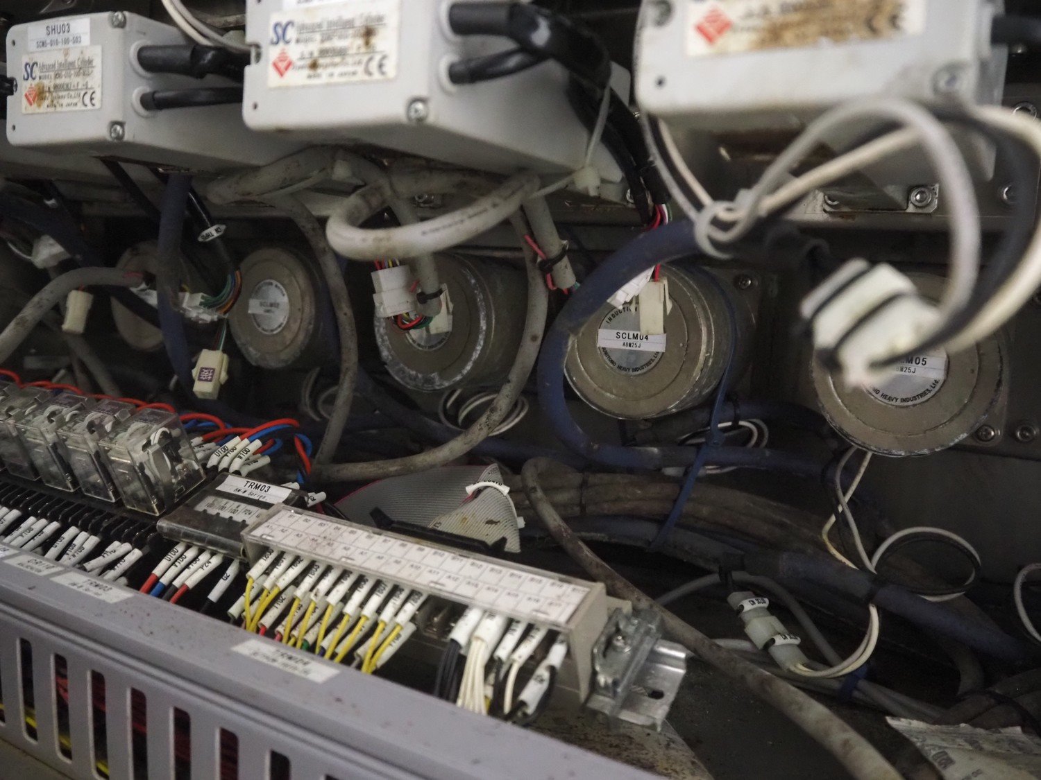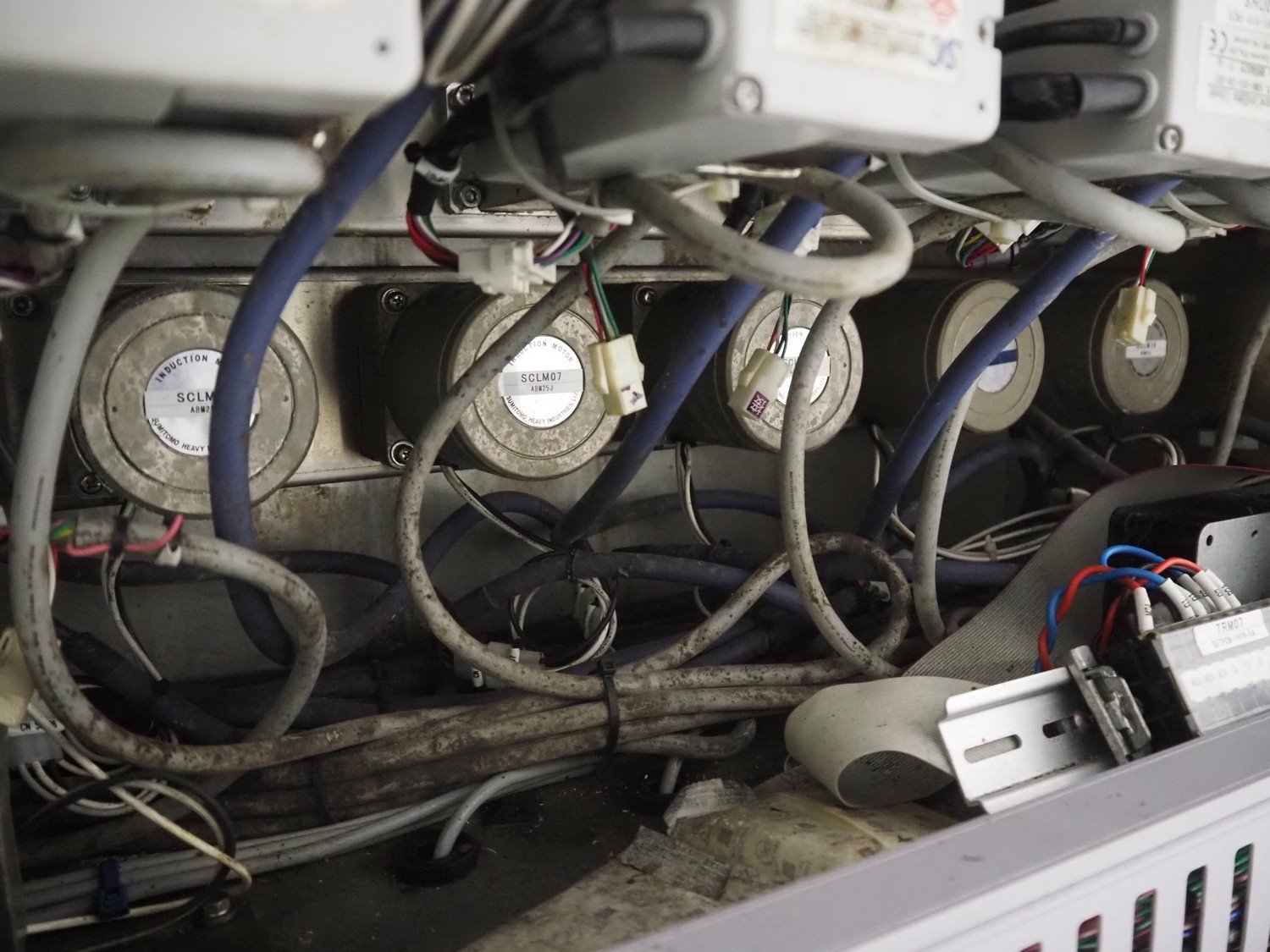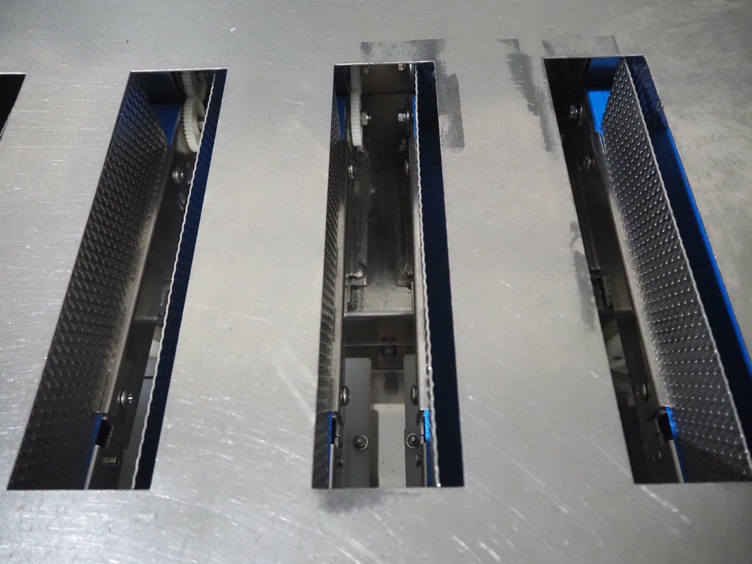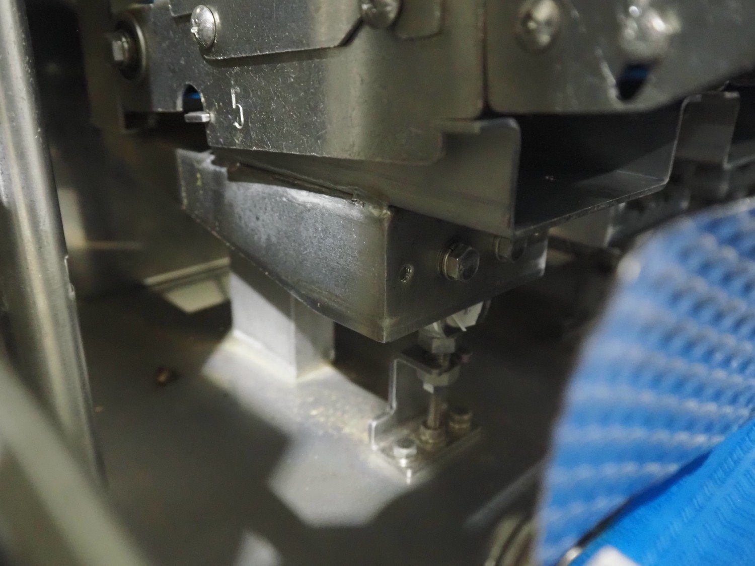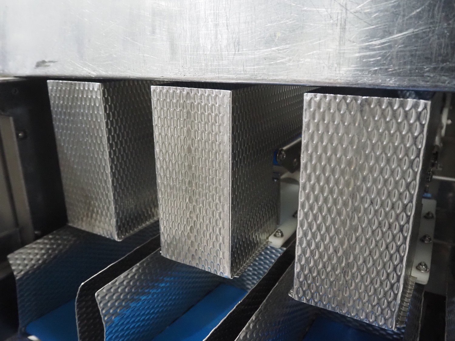 Aja Ltd double 5-heads linear batch weigher, model number: BWS-1000, serial number: B1000EX1004, 200-250 VAC, 50-60 Hz, 2 KVA, minimum capacity: 20 gram, maximum capacity: 500 gram, dimensions: 1800 mm x 1080 mm x 1480 mm. Cover damaged.