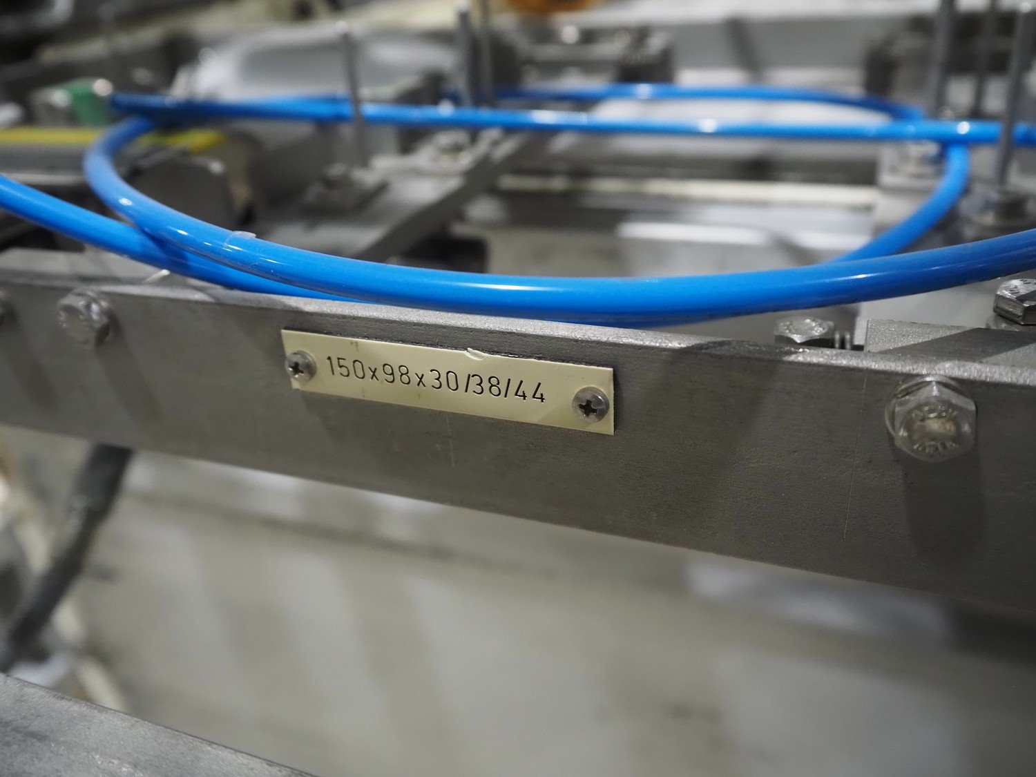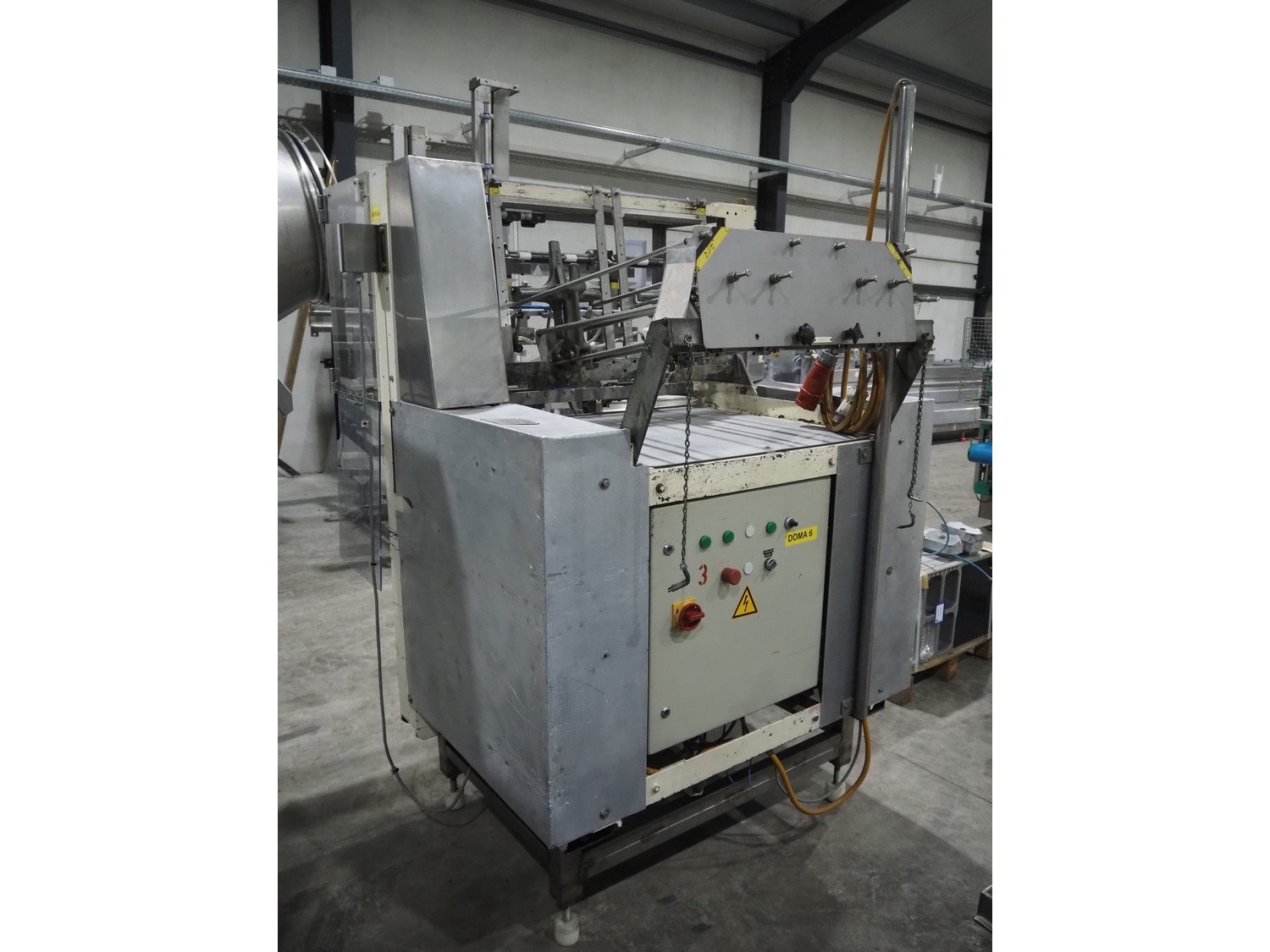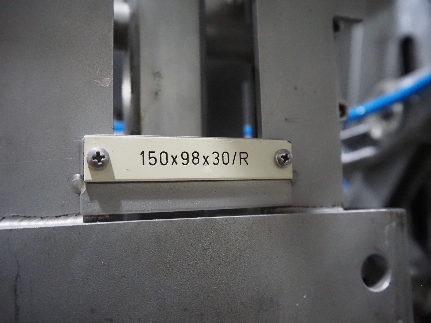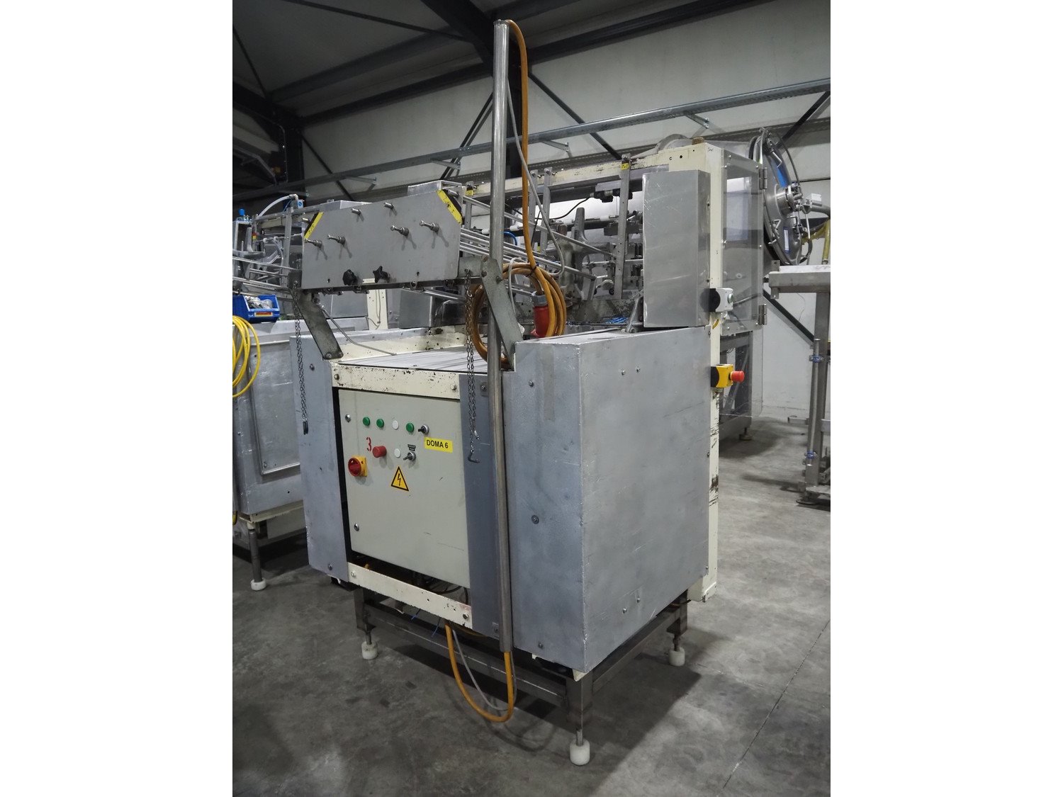 LPF Verpakkingen B.V. carton erector, 2 lanes, dimensions cartons: 150 mm x 98 mm x 30 mm, with Becker vacuum pump, type: BOL/4X, total dimensions: 1500 mm x 1350 mm x 2140 mm. With pallet box with large amount of parts for carton erector, dimensions: 1200 mm x 1000 mm x 1050 mm.