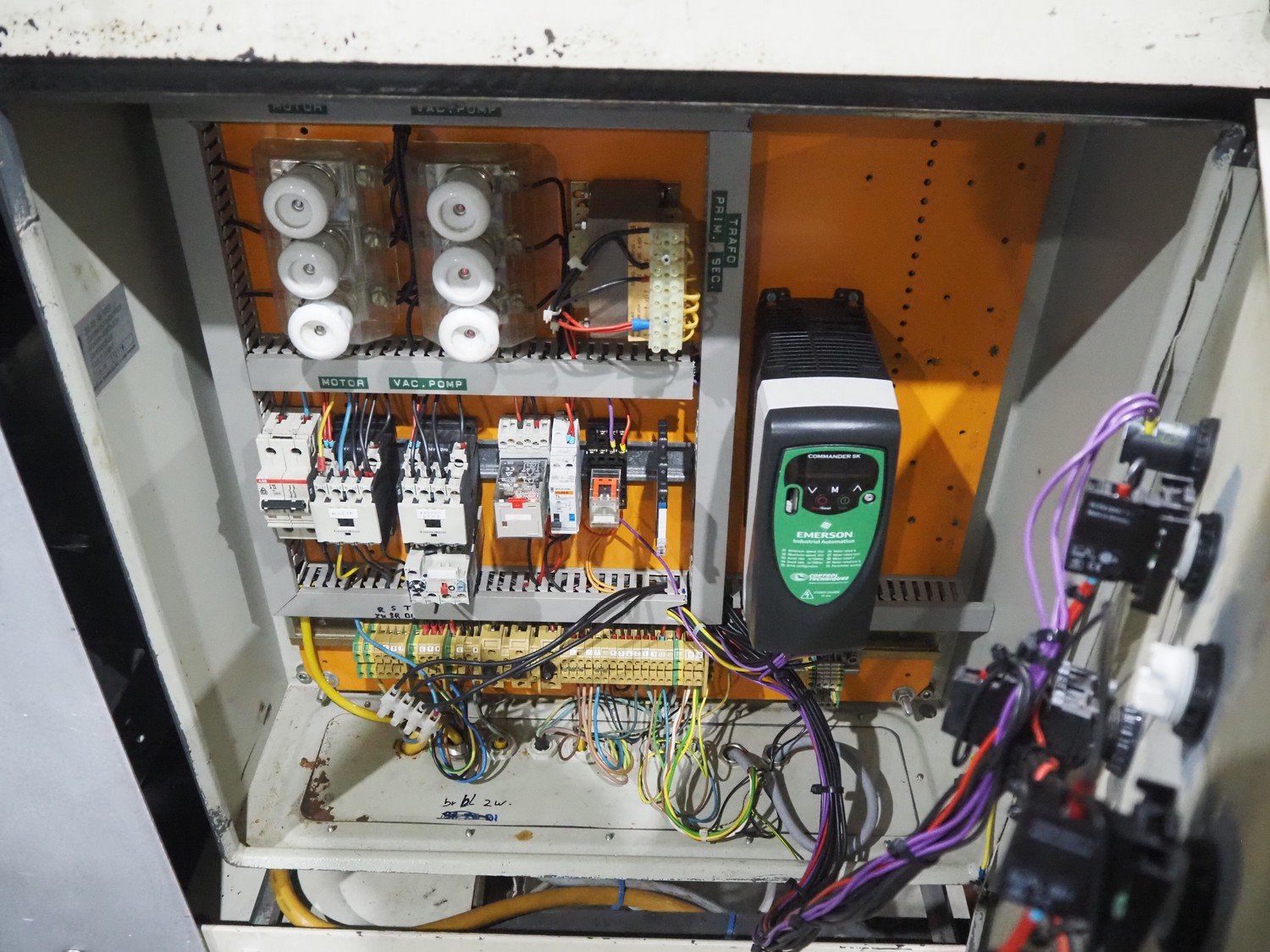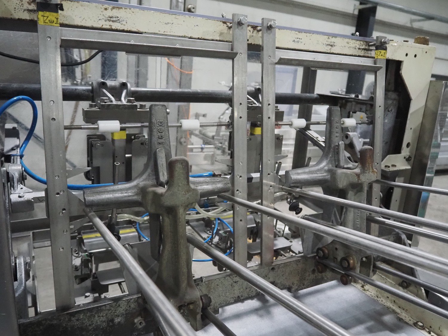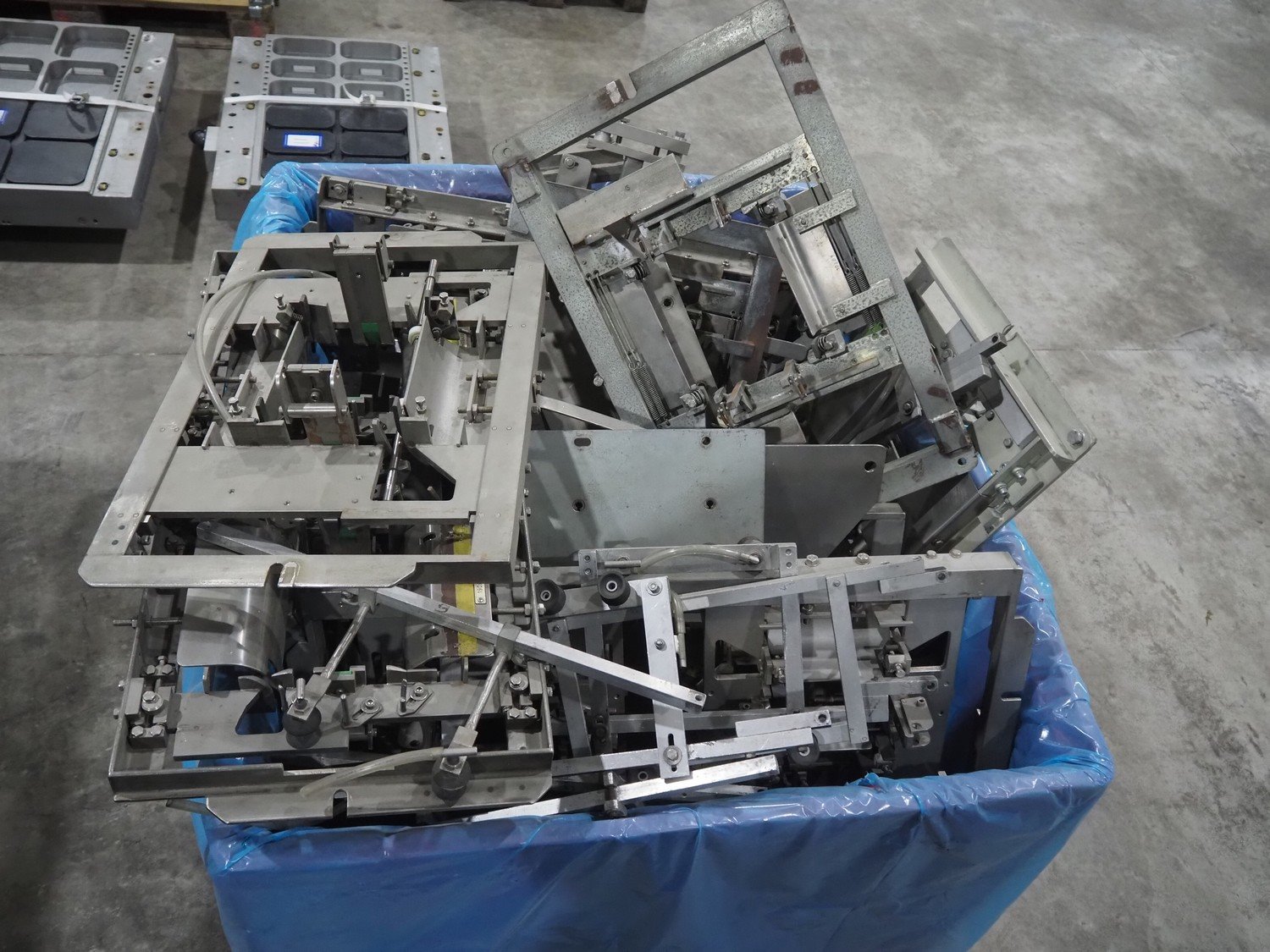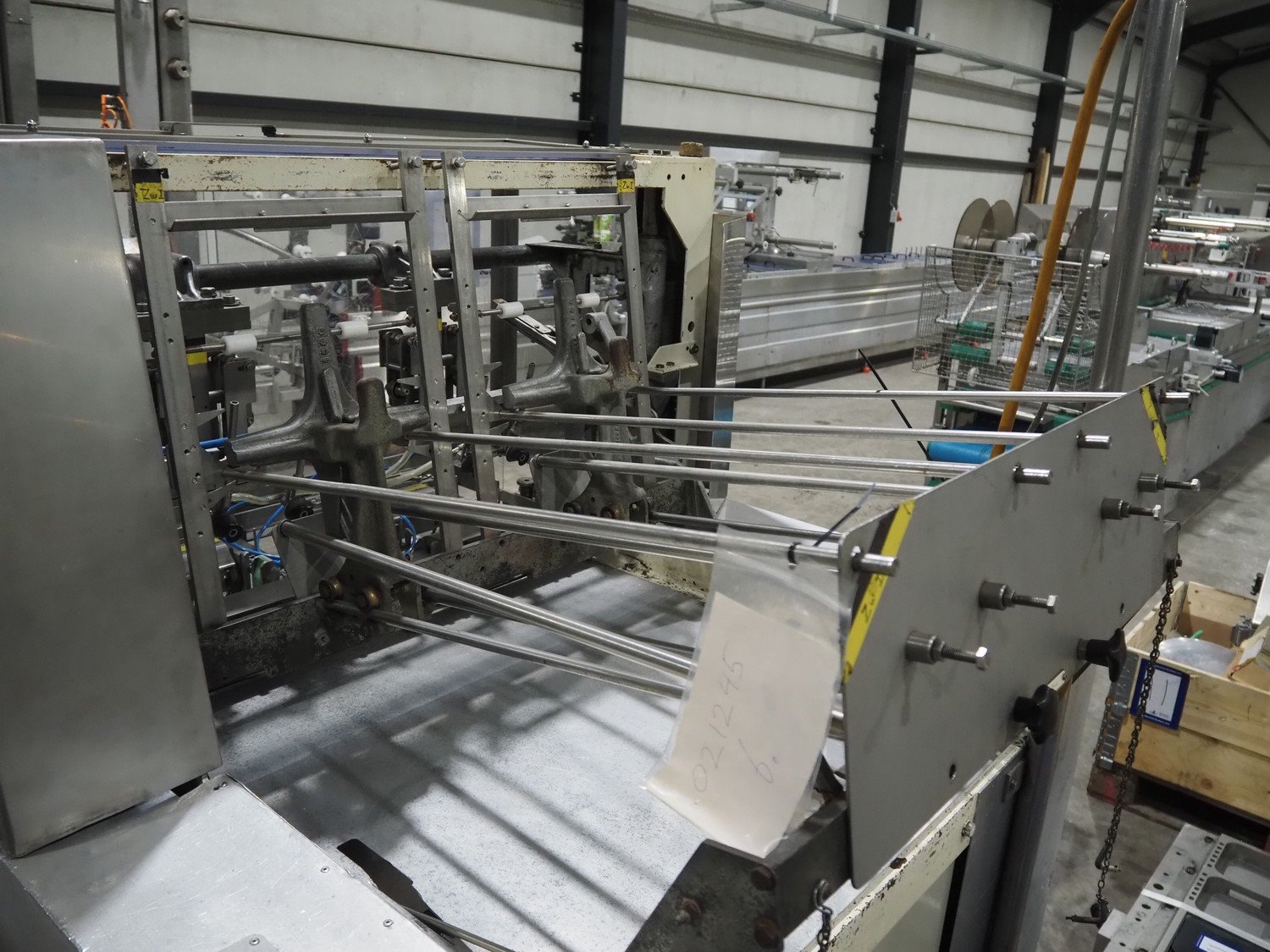 LPF Verpakkingen B.V. carton erector, 2 lanes, dimensions cartons: 150 mm x 98 mm x 30 mm, with Becker vacuum pump, type: BOL/4X, total dimensions: 1500 mm x 1350 mm x 2140 mm. With pallet box with large amount of parts for carton erector, dimensions: 1200 mm x 1000 mm x 1050 mm.
