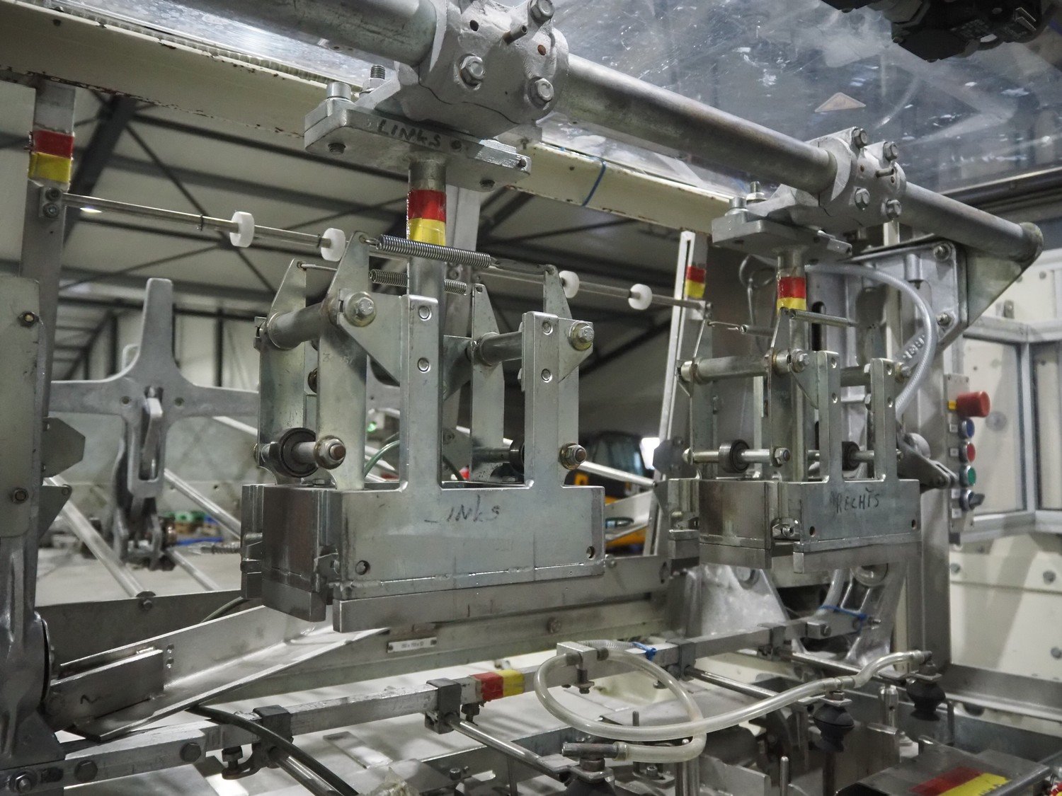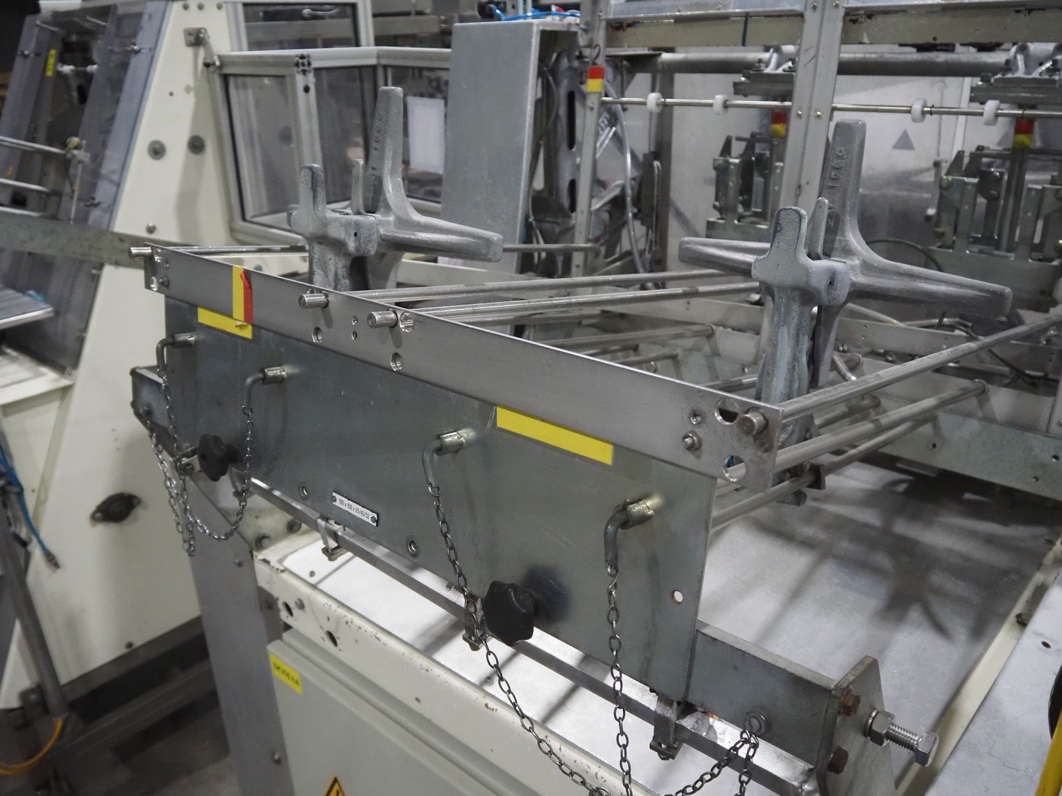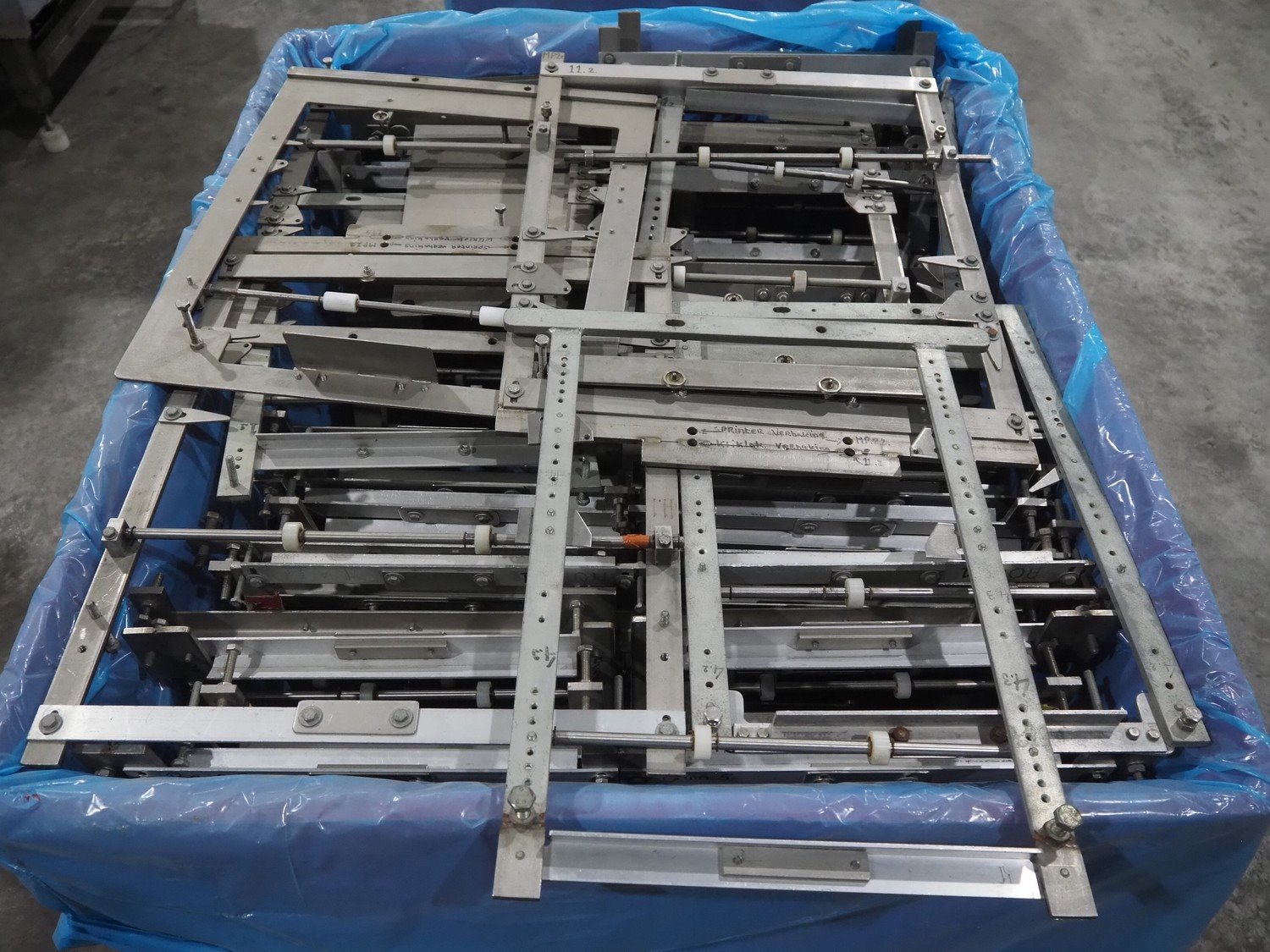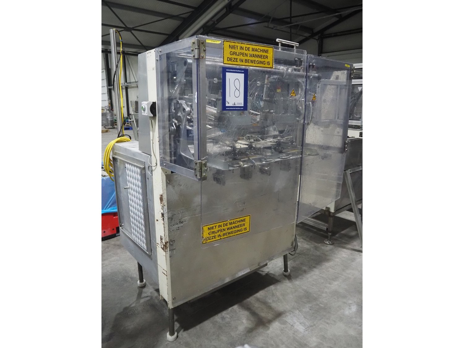 LPF Verpakkingen B.V. carton erector, 2 lanes, dimensions cartons: 150 mm x 98 mm x 30 mm, with Becker vacuum pump, type: BOL/4X, total dimensions: 1500 mm x 1350 mm x 2140 mm. With pallet box with large amount of parts for carton erector, dimensions: 1200 mm x 1000 mm x 1050 mm.