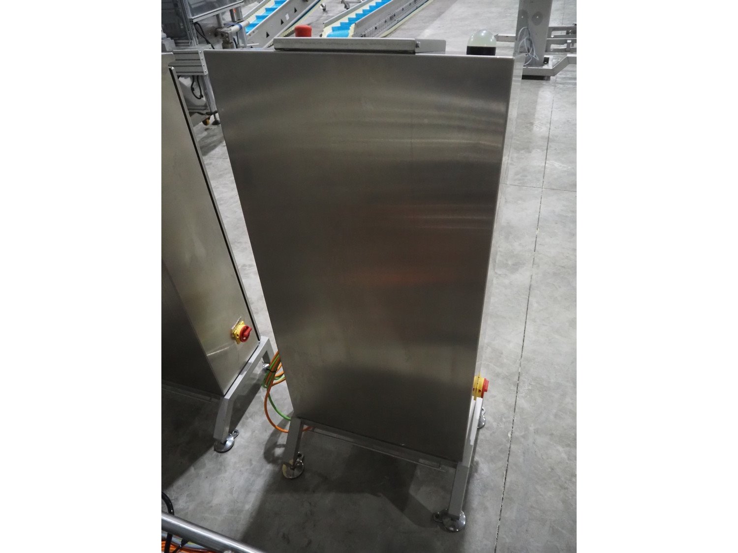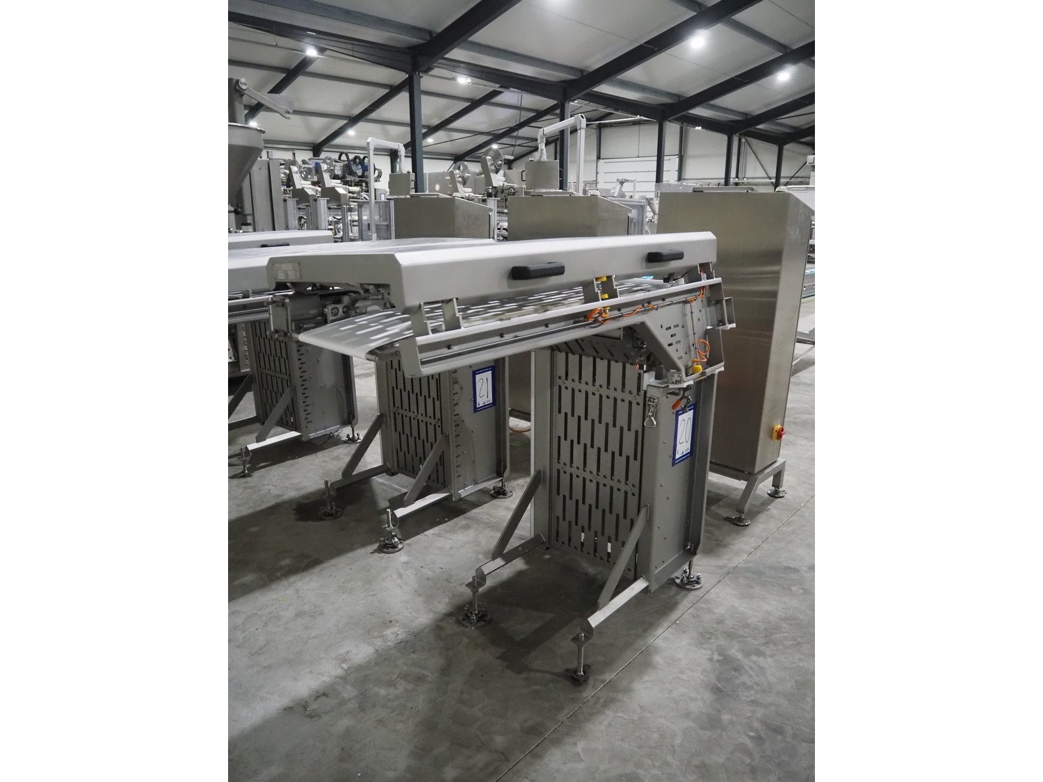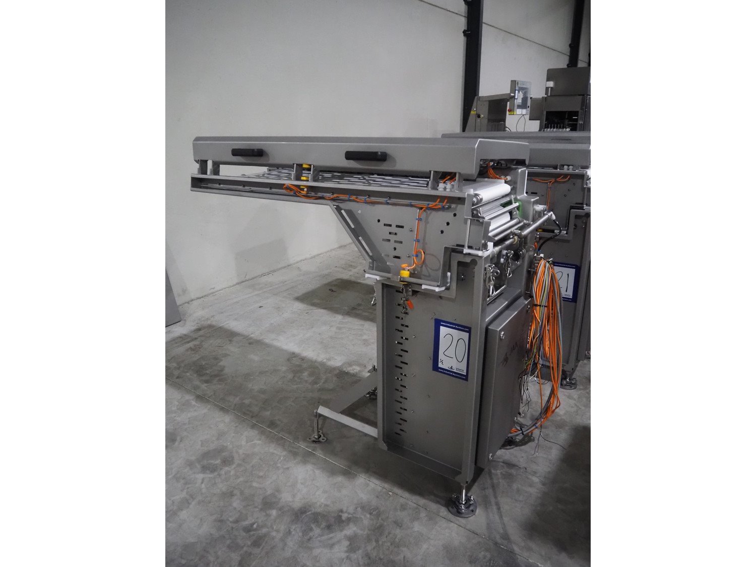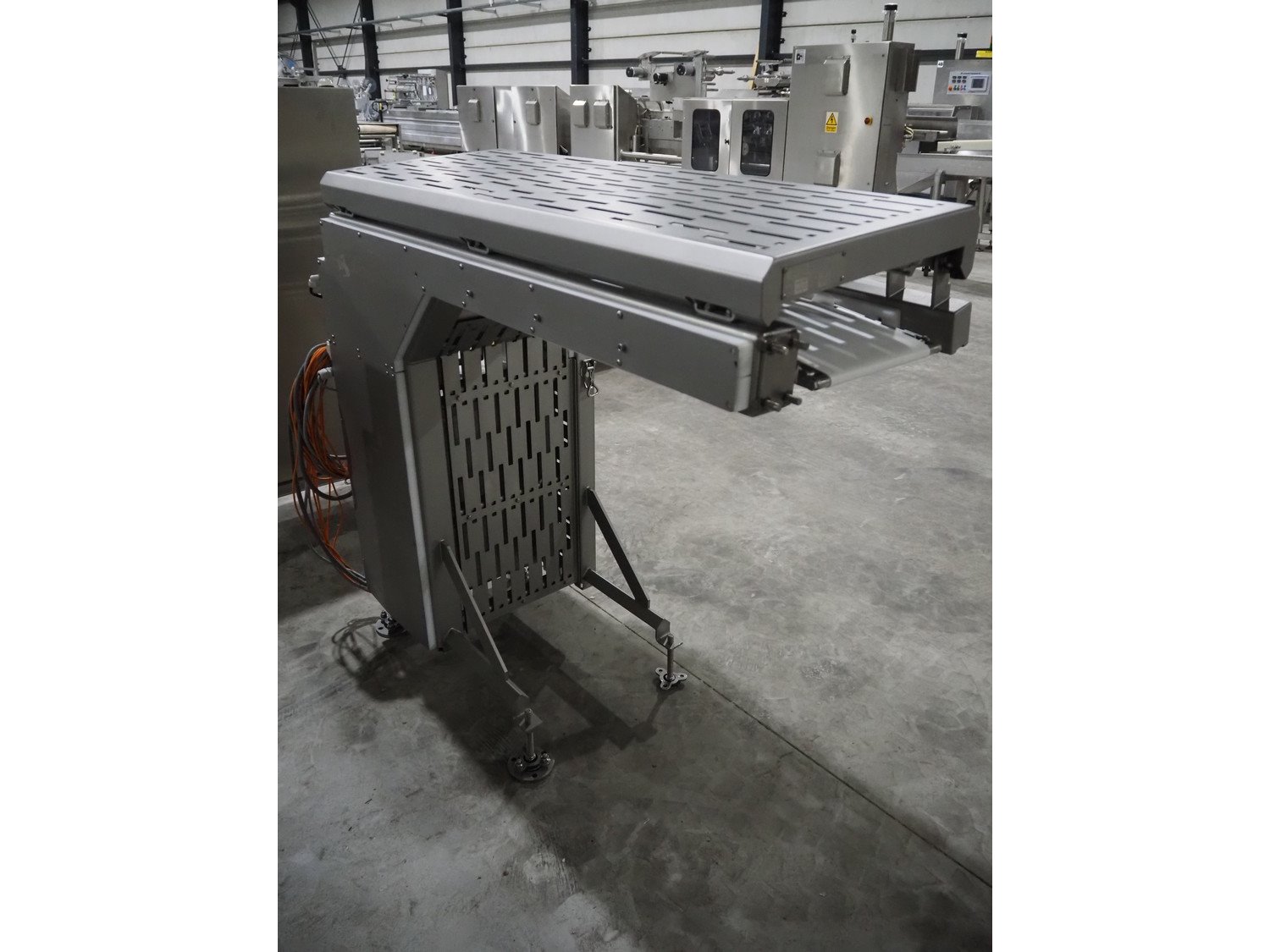 Jansen Techniek shuttle conveyor, type: SBK150, model: schietband, year of construction: 2019, plastic belt, belt width: 240 mm, total dimensions: 1400 mm x 600 mm x 1250 mm. Including switch cabinet, dimensions: 700 mm x 500 mm x 1250.
