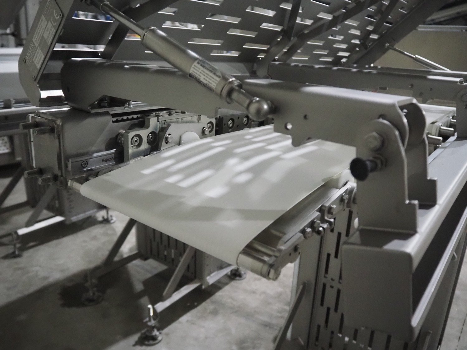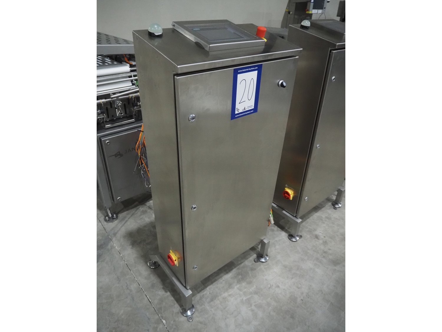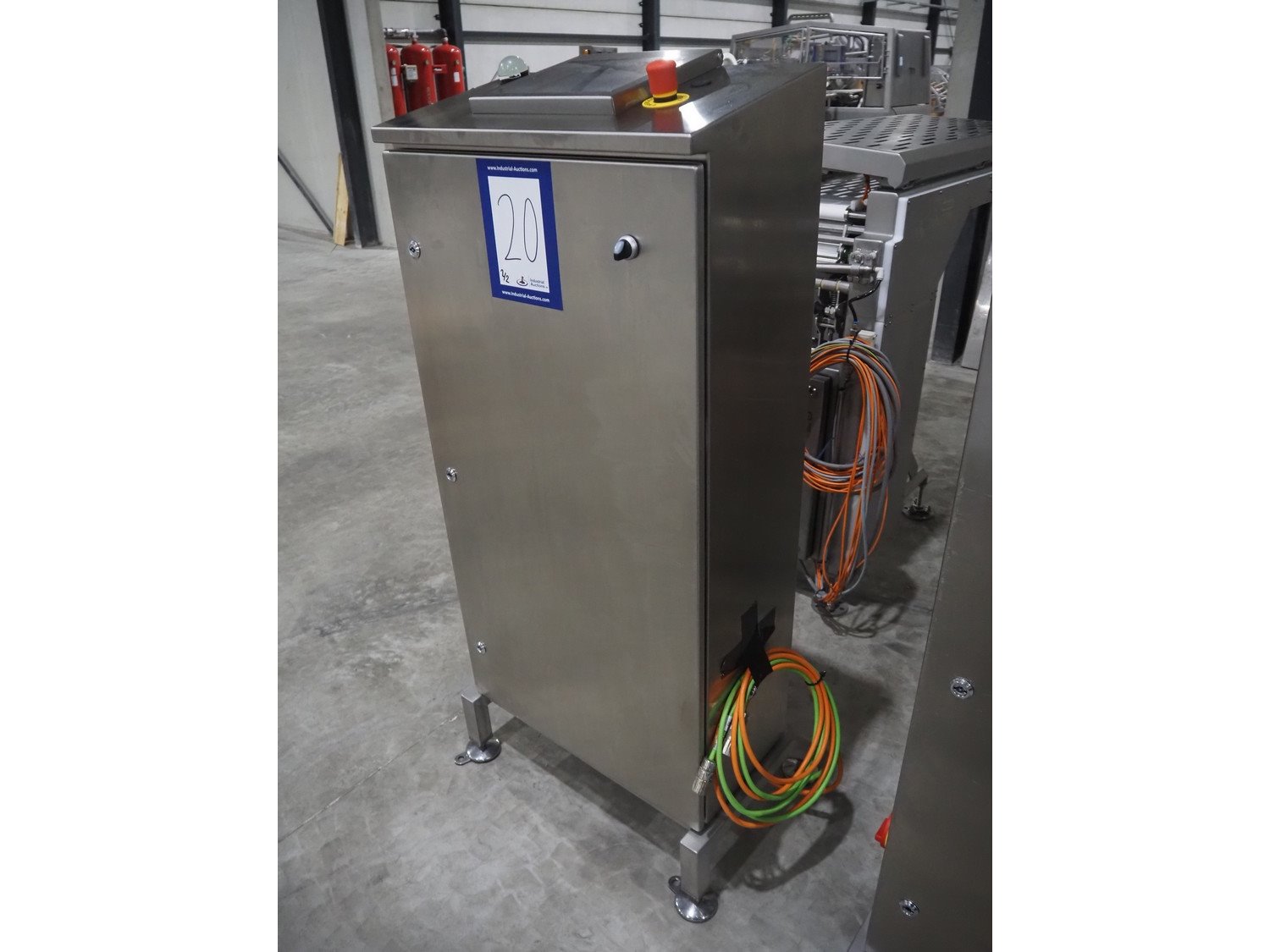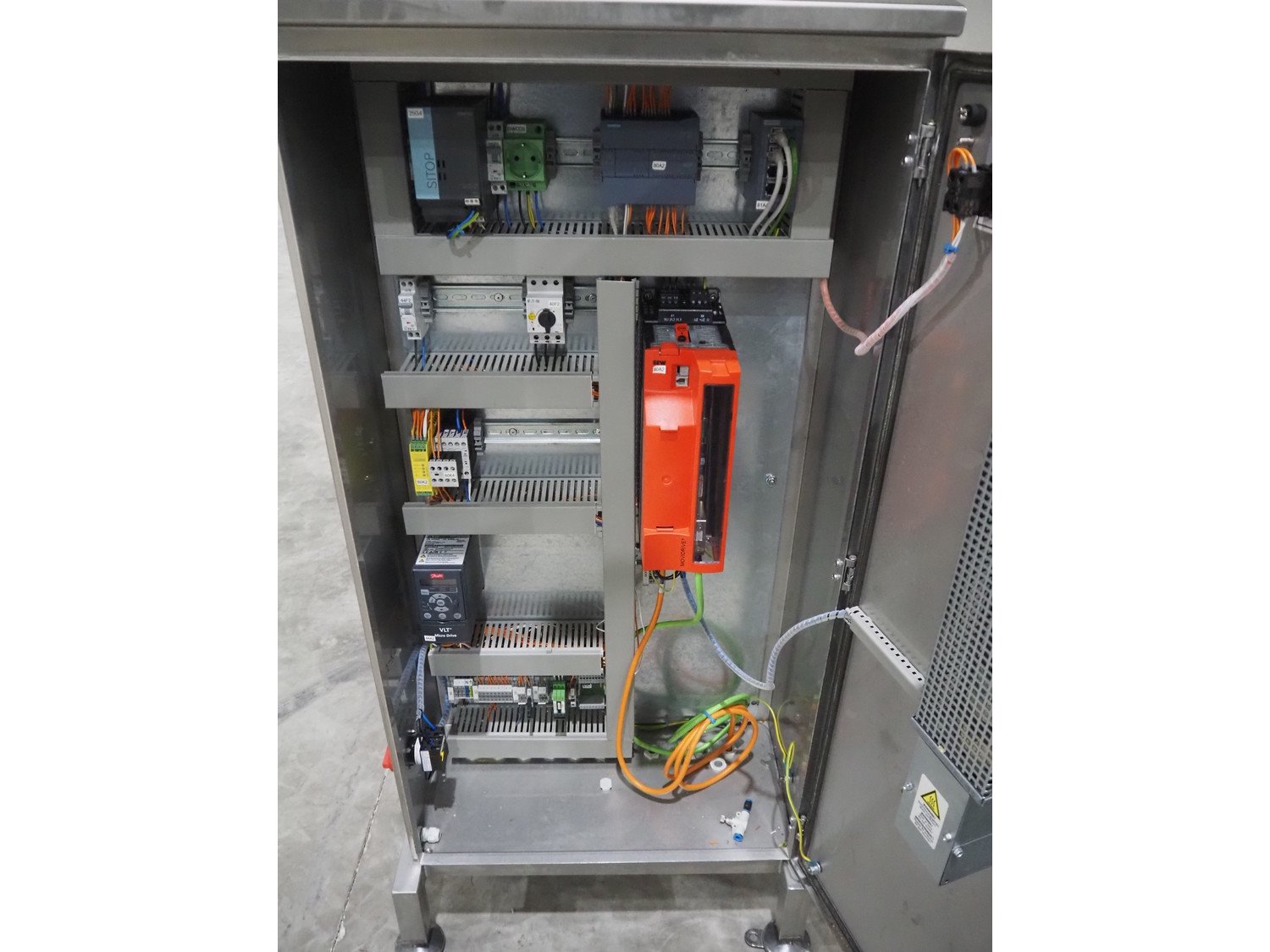 Jansen Techniek shuttle conveyor, type: SBK150, model: schietband, year of construction: 2019, plastic belt, belt width: 240 mm, total dimensions: 1400 mm x 600 mm x 1250 mm. Including switch cabinet, dimensions: 700 mm x 500 mm x 1250.