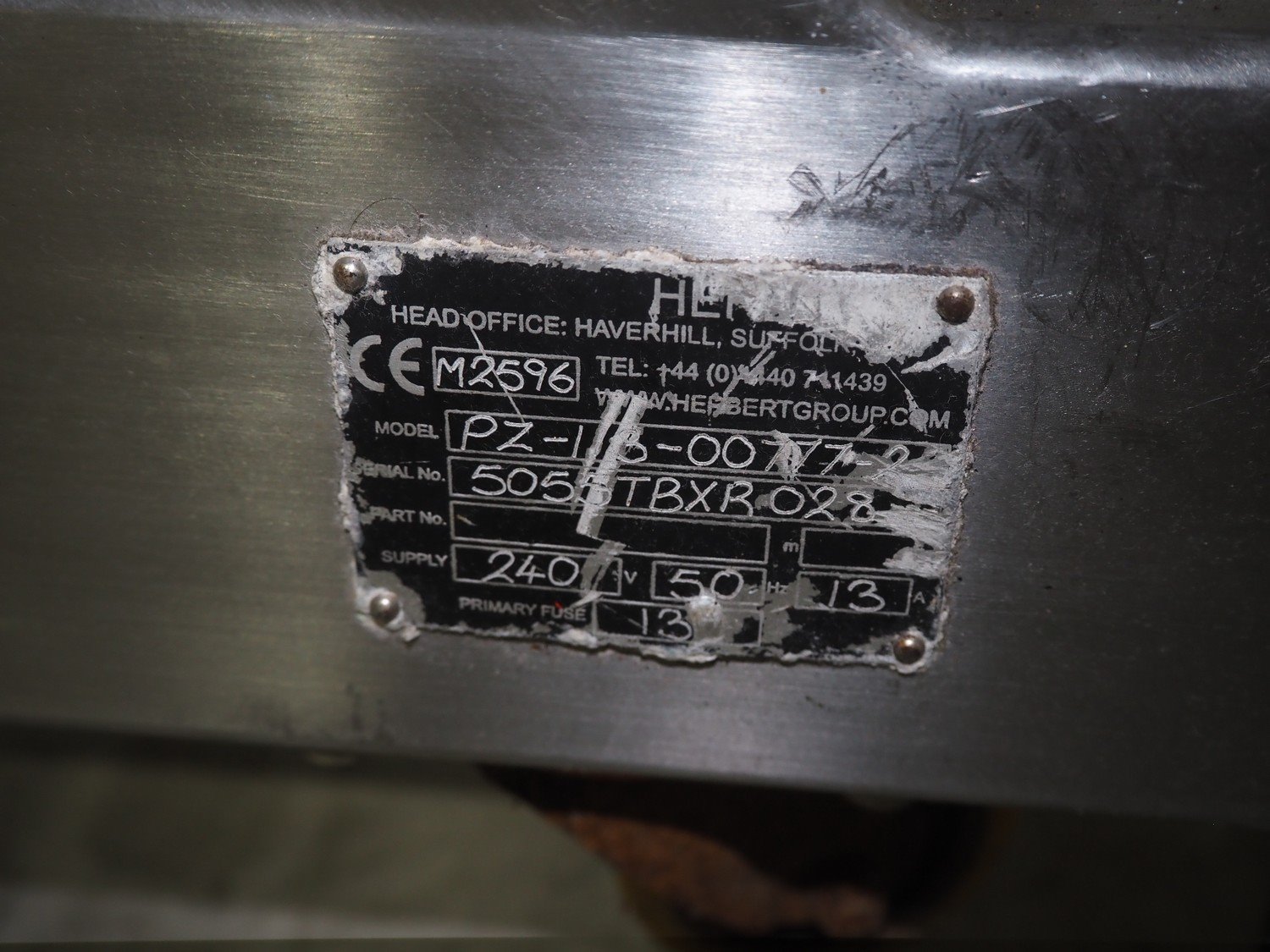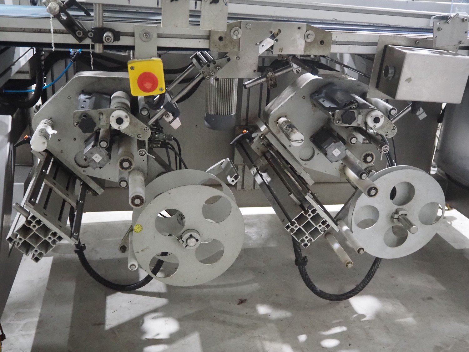 Herbert labeller with double top and double bottom labeller, model: PZ-113-00777-2, serial number: 5055TBXR028, belt width: 285 mm, total dimensions: 2600 mm x 1200 mm x 2010 mm. Technical condition unknown.