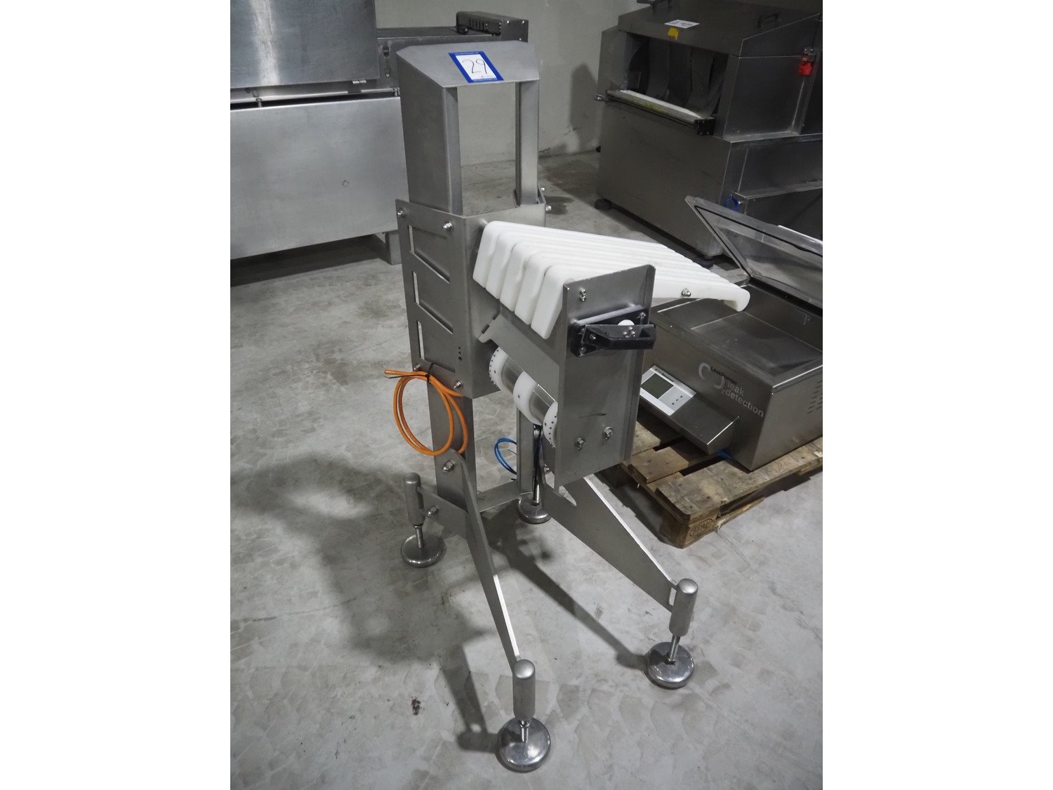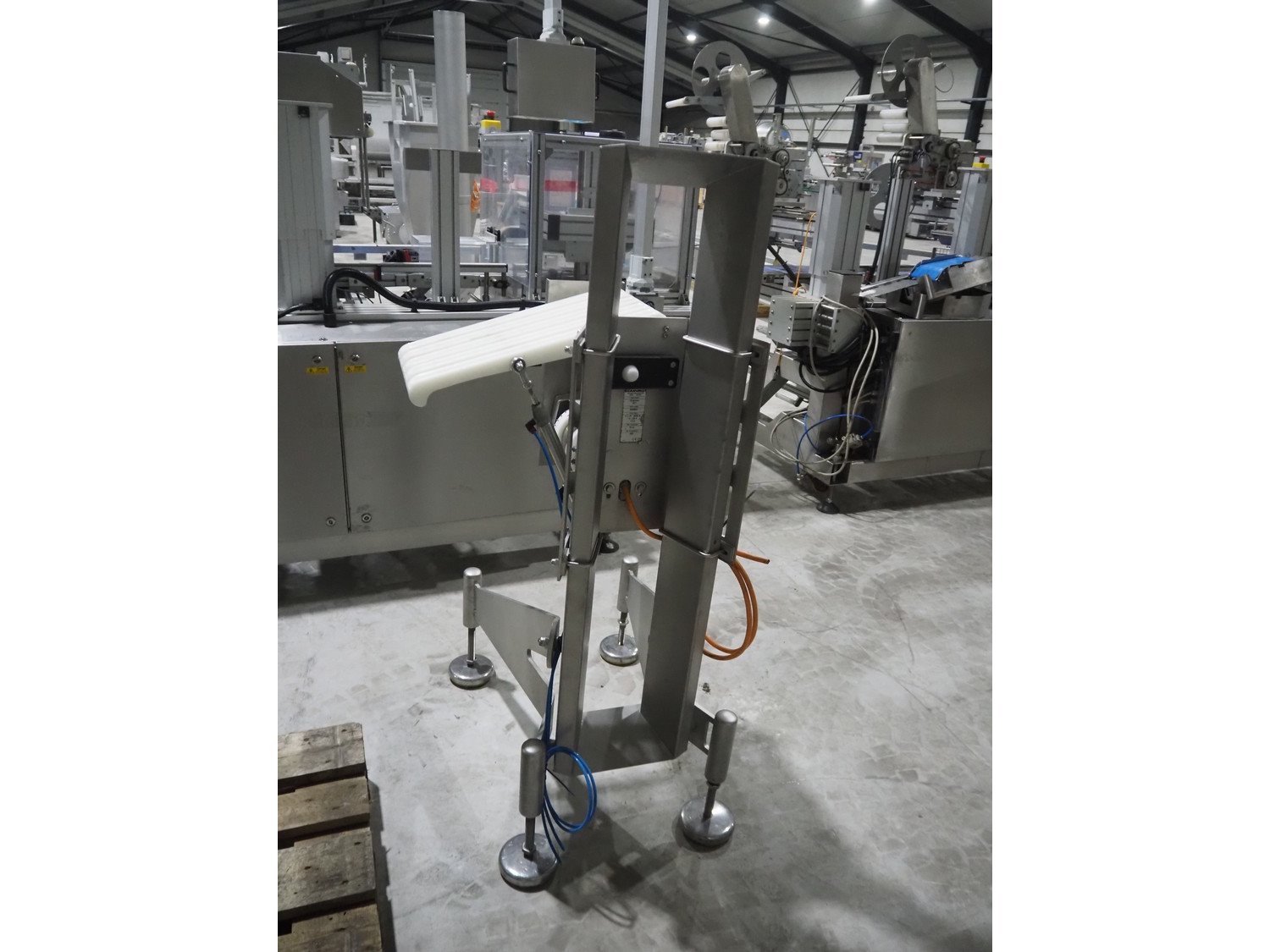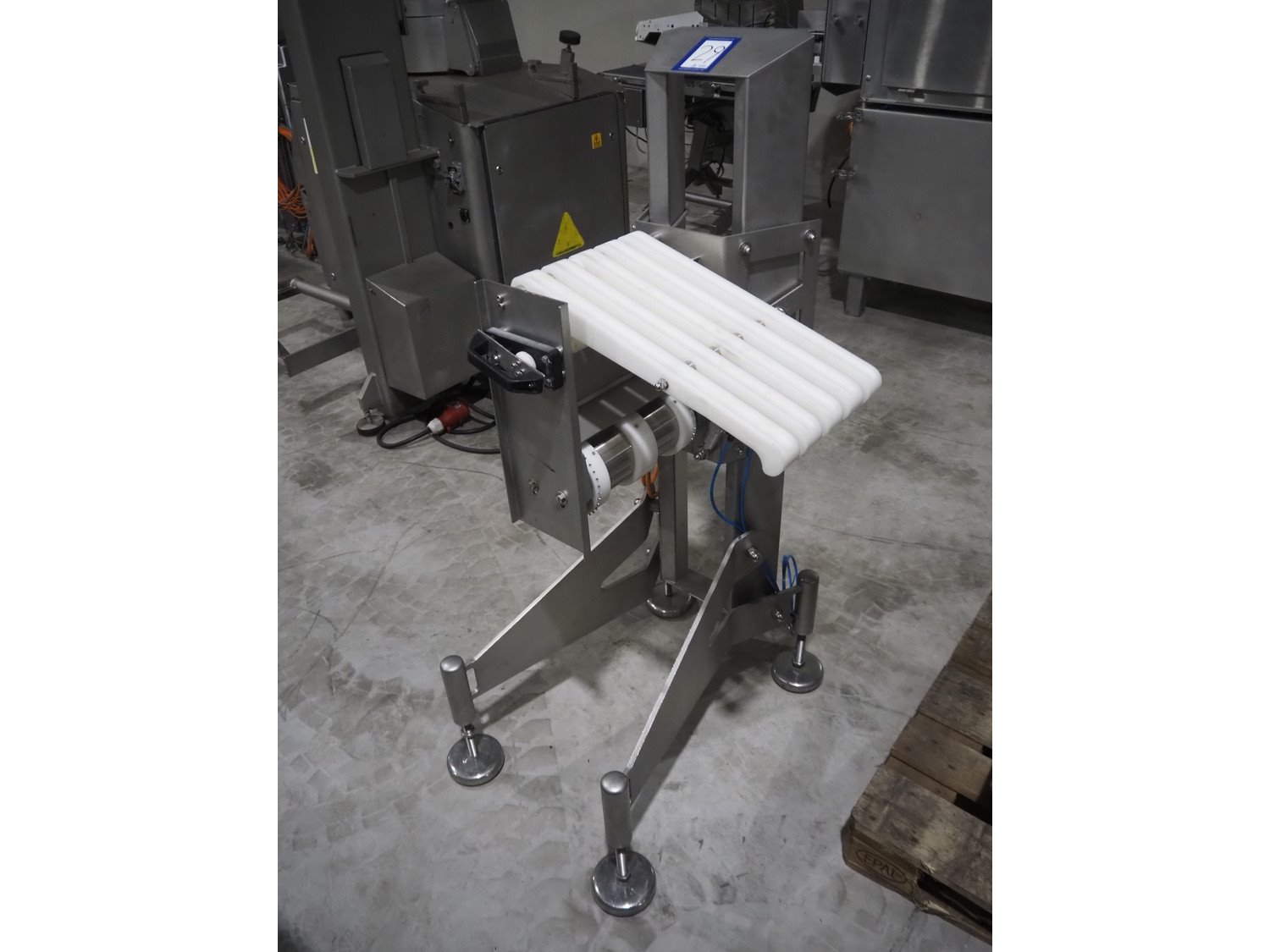 Scanvaegt rejector belt, type: DropDown, serial number: BQI00044, year of construction: 2005, 3x230 V, 3 Ph, 50/60 Hz, 1.2 A, weight: 50 kg, belt width: 275 mm, total dimensions: 800 nmm x 670 mm x 1390 mm.