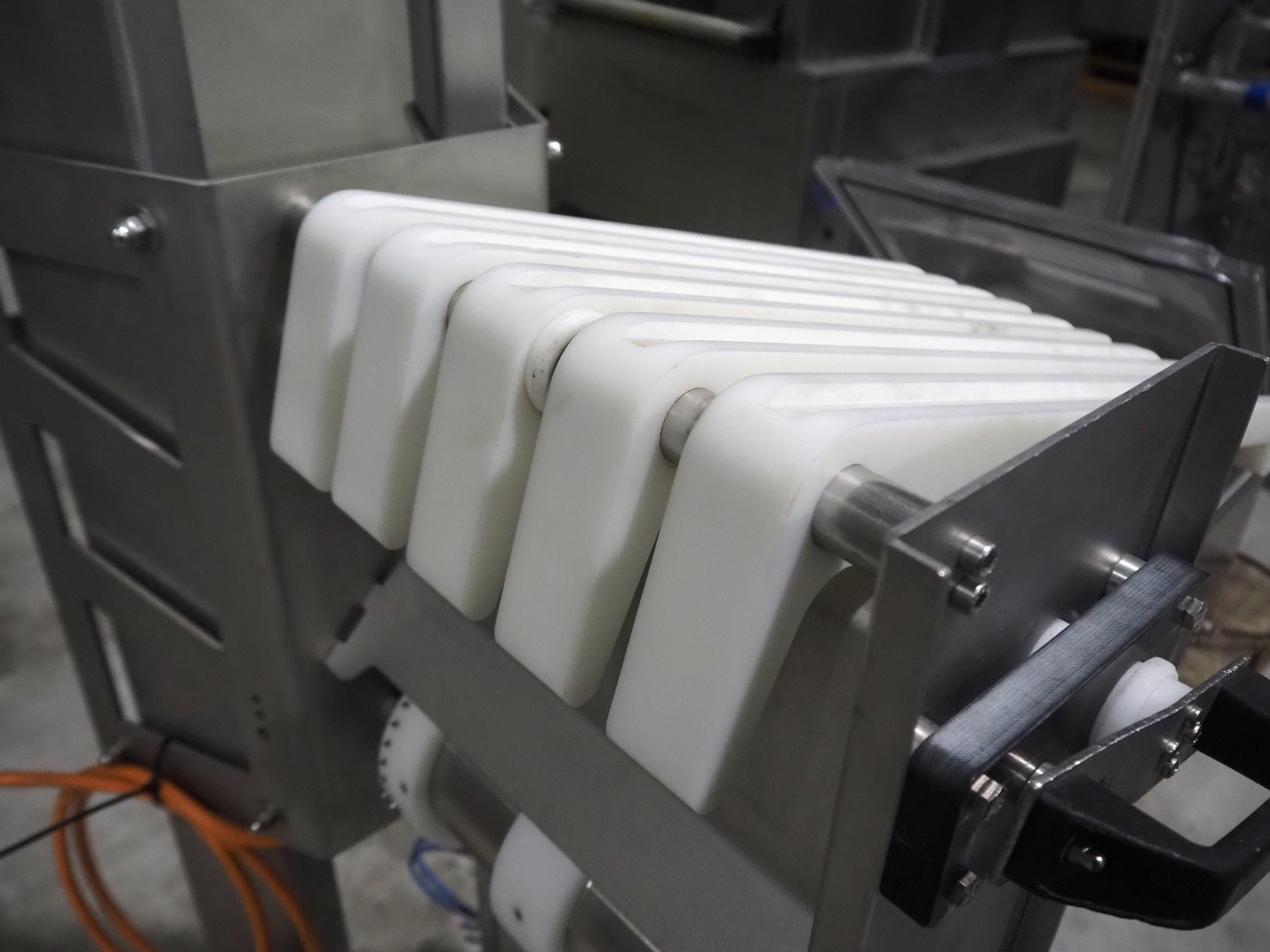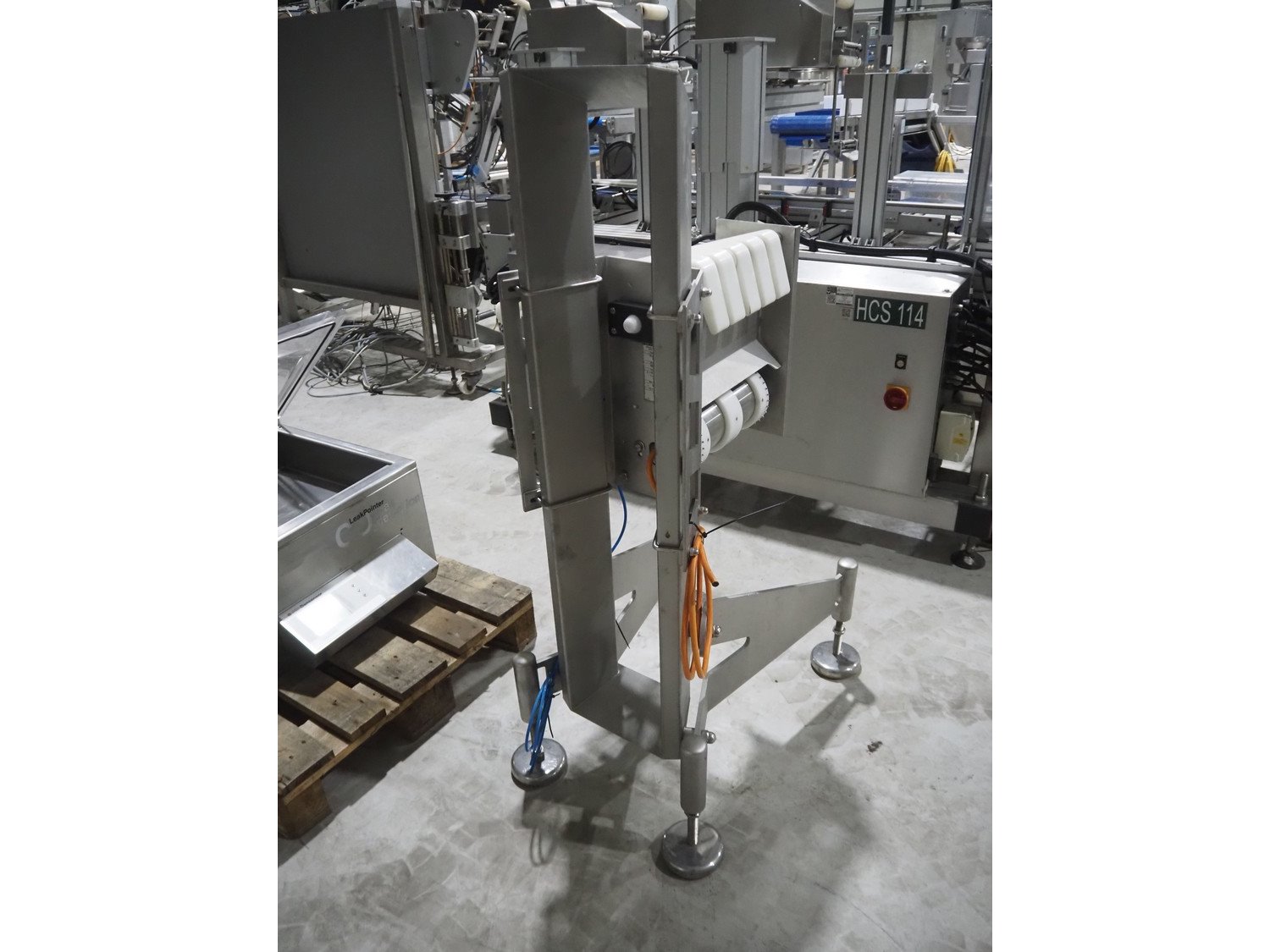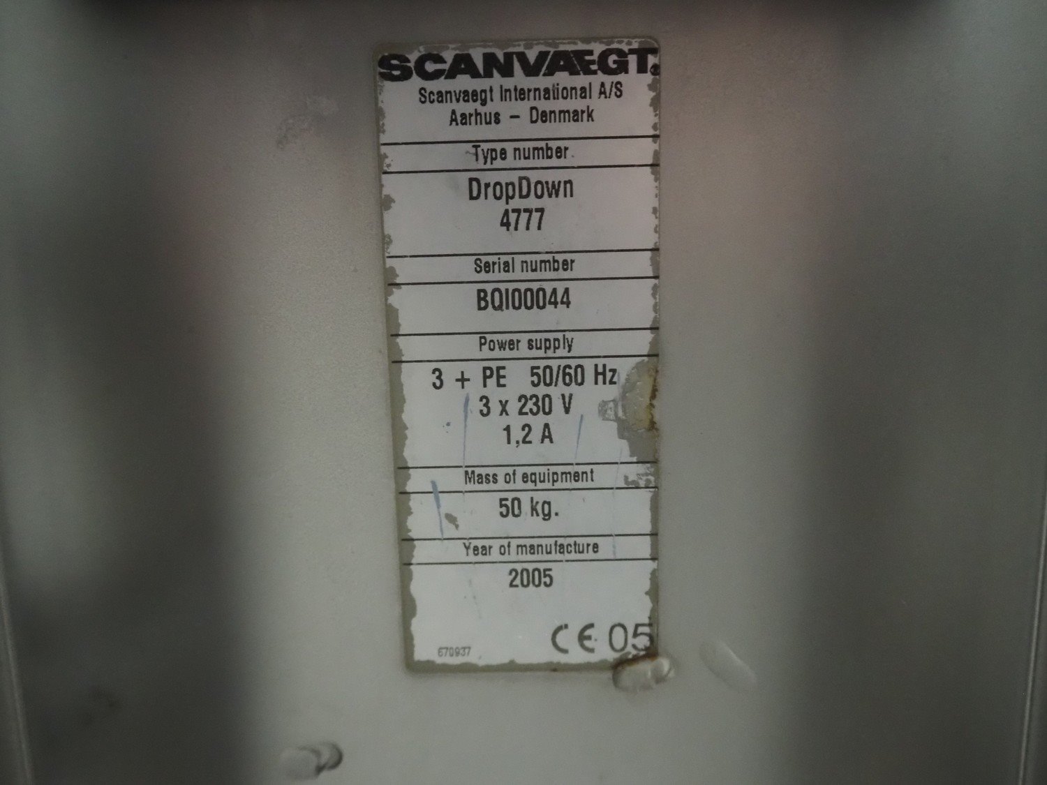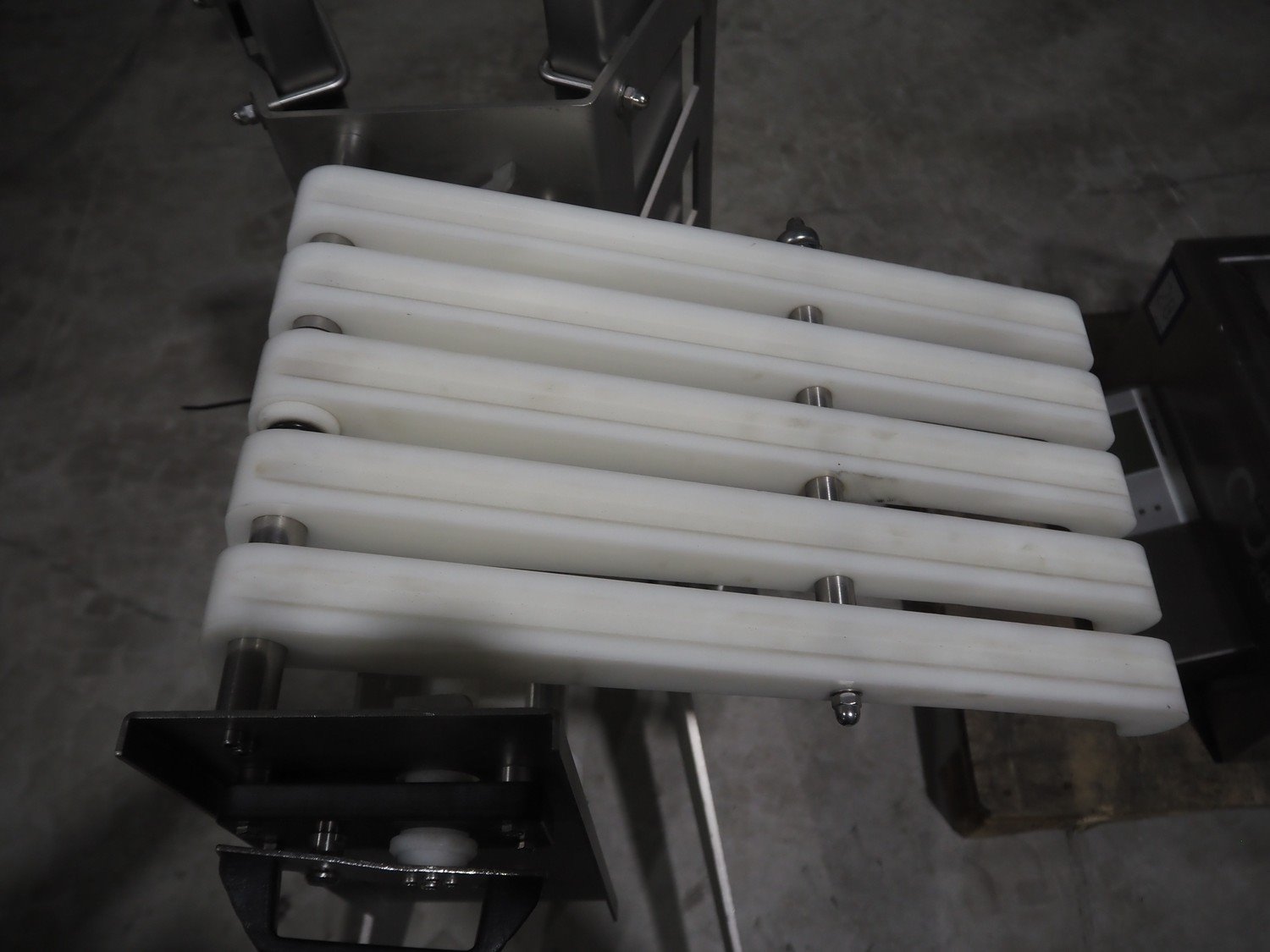 Scanvaegt rejector belt, type: DropDown, serial number: BQI00044, year of construction: 2005, 3x230 V, 3 Ph, 50/60 Hz, 1.2 A, weight: 50 kg, belt width: 275 mm, total dimensions: 800 nmm x 670 mm x 1390 mm.