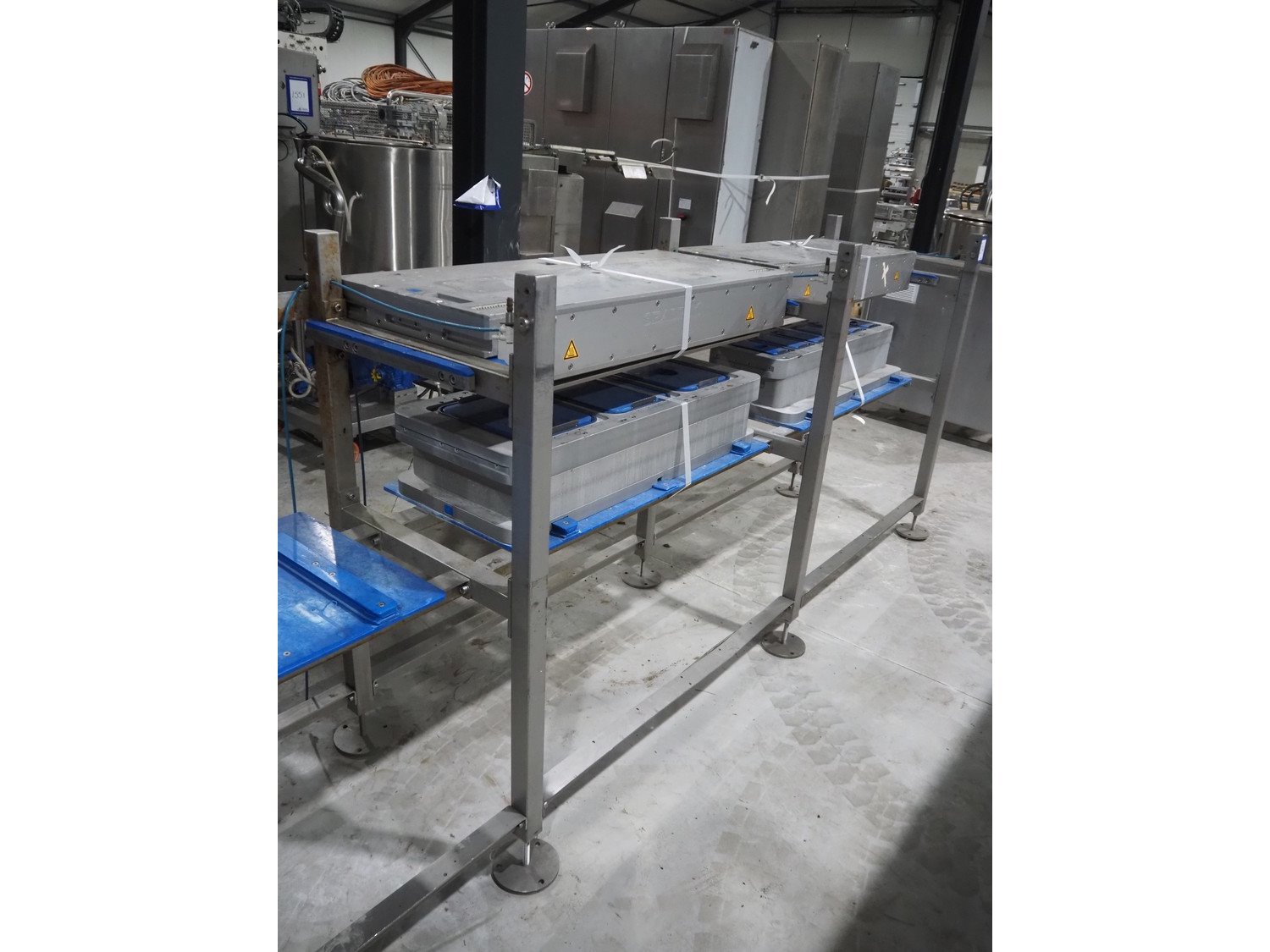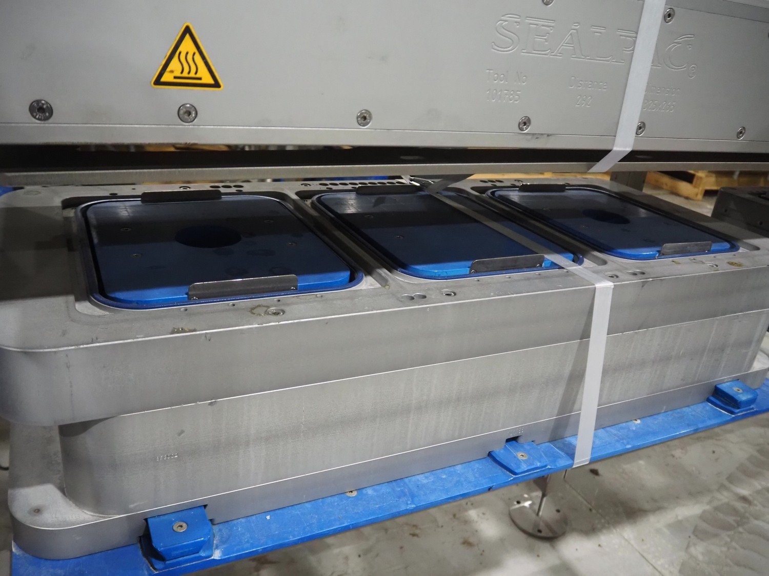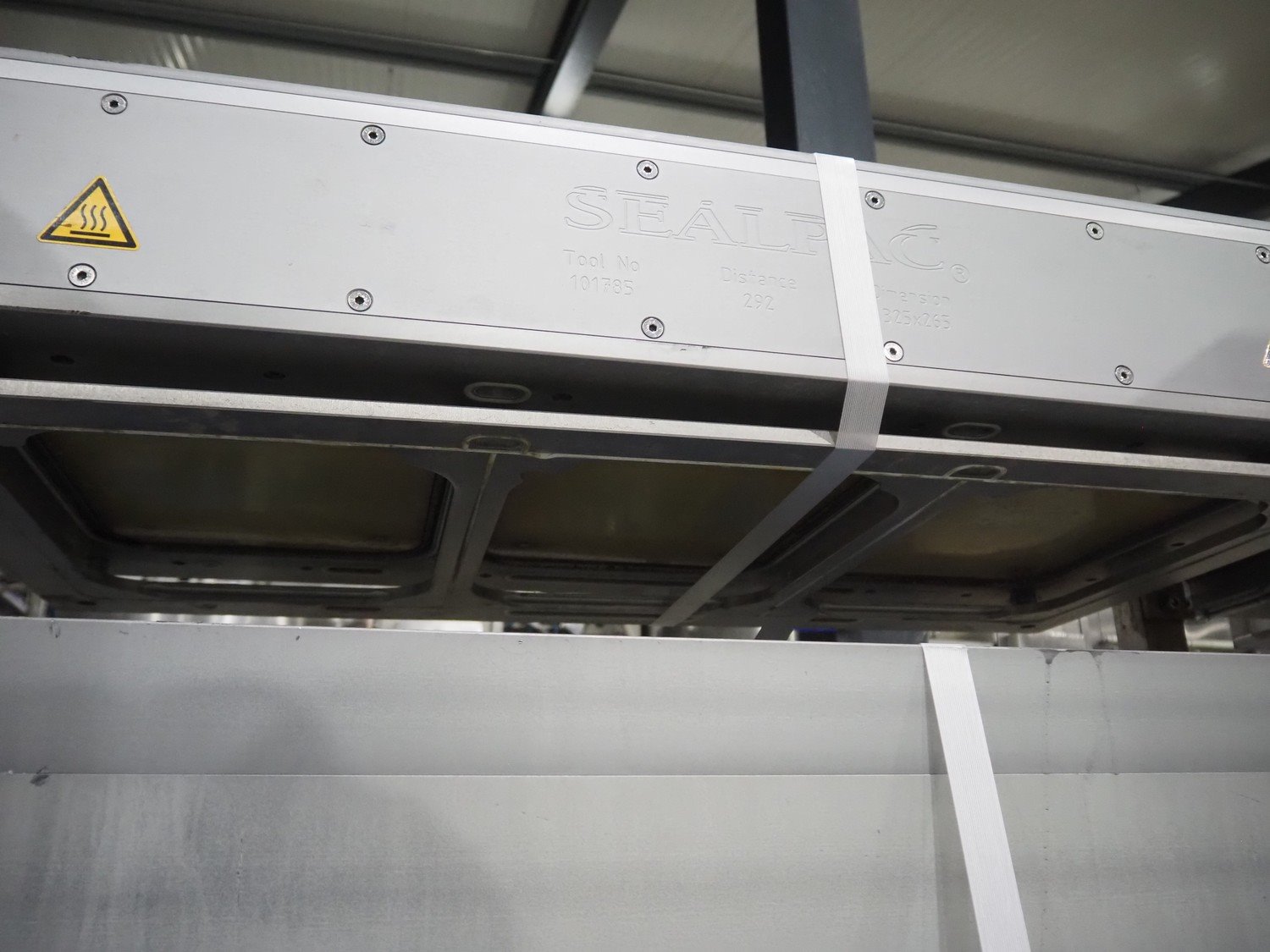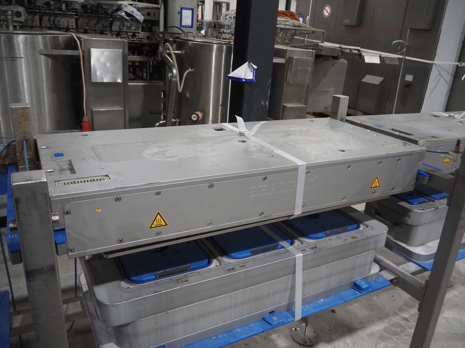 Sealpac dyes on s/s rack, dimensions dye: (6x) 170 mm x 120 mm, (3x) 300 mm x 240 mm, dimensions rack: 4900 mm x 750 mm x 1300 mm.