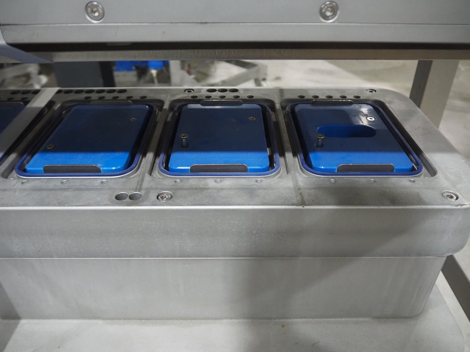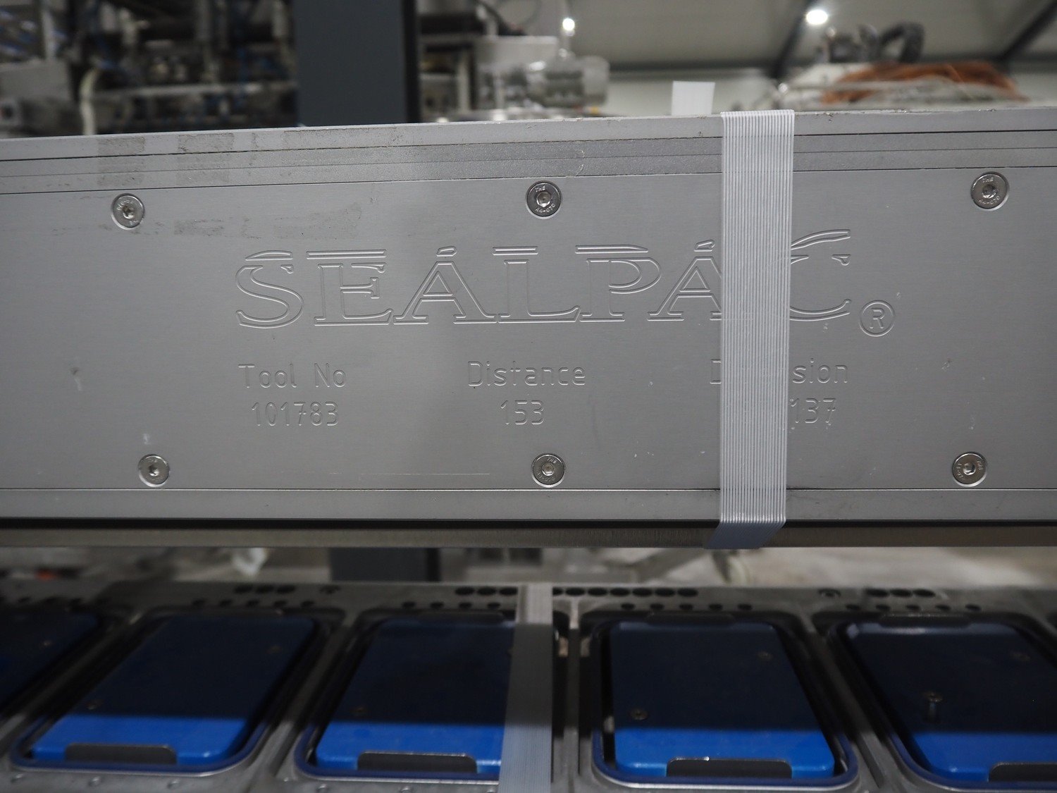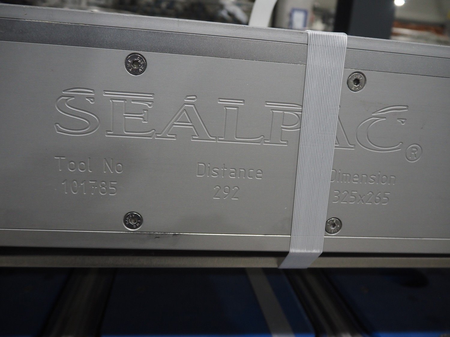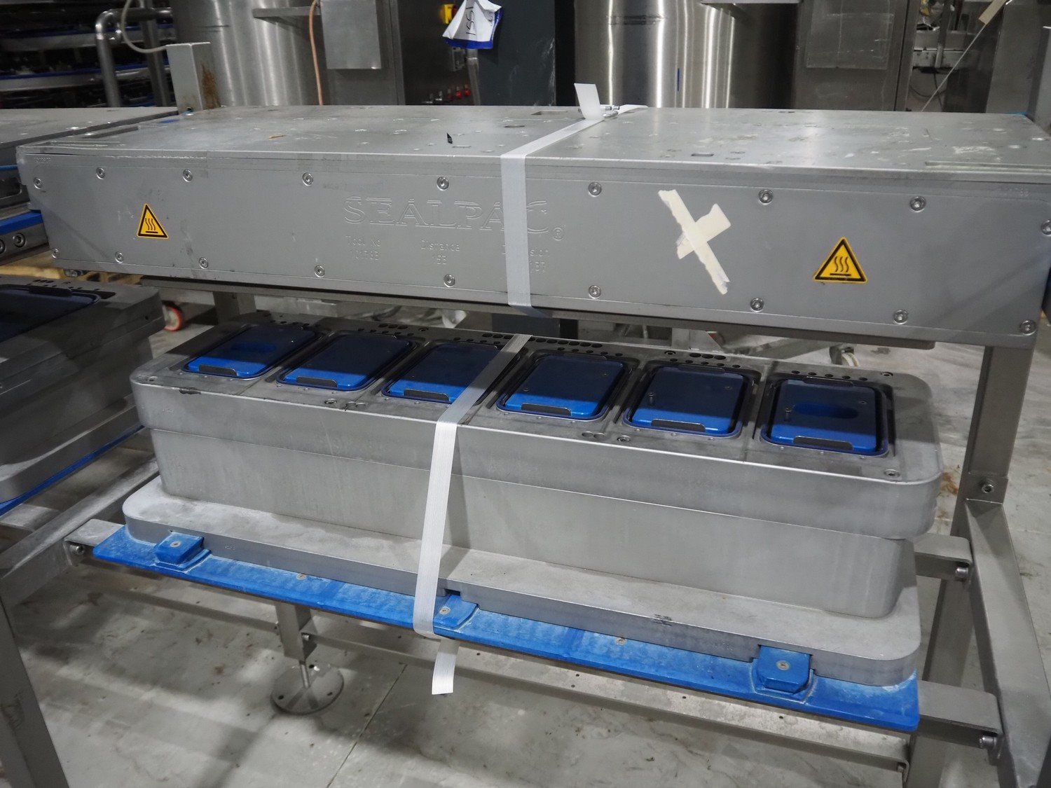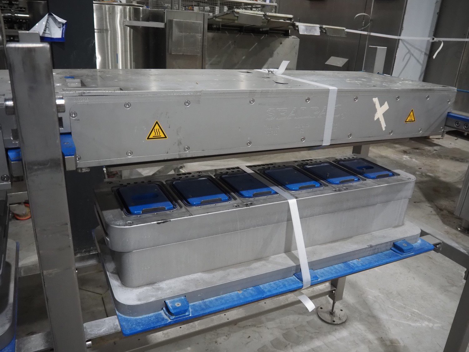 Sealpac dyes on s/s rack, dimensions dye: (6x) 170 mm x 120 mm, (3x) 300 mm x 240 mm, dimensions rack: 4900 mm x 750 mm x 1300 mm.