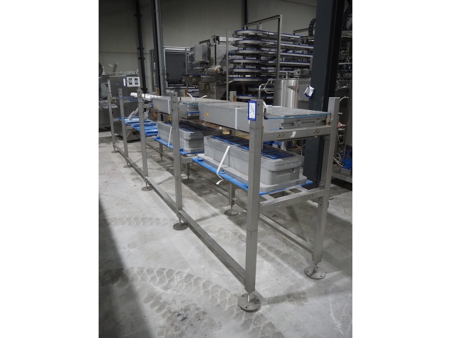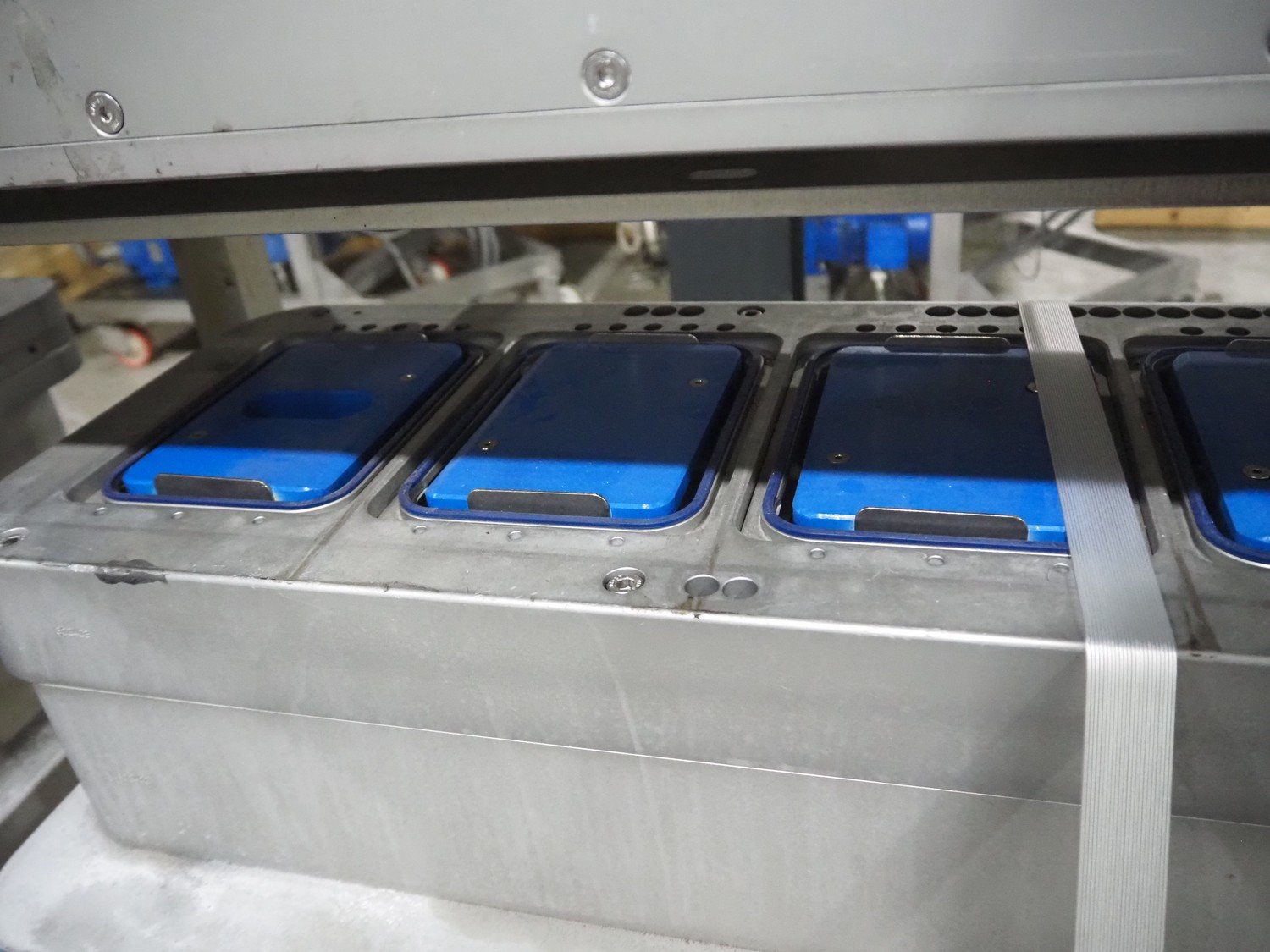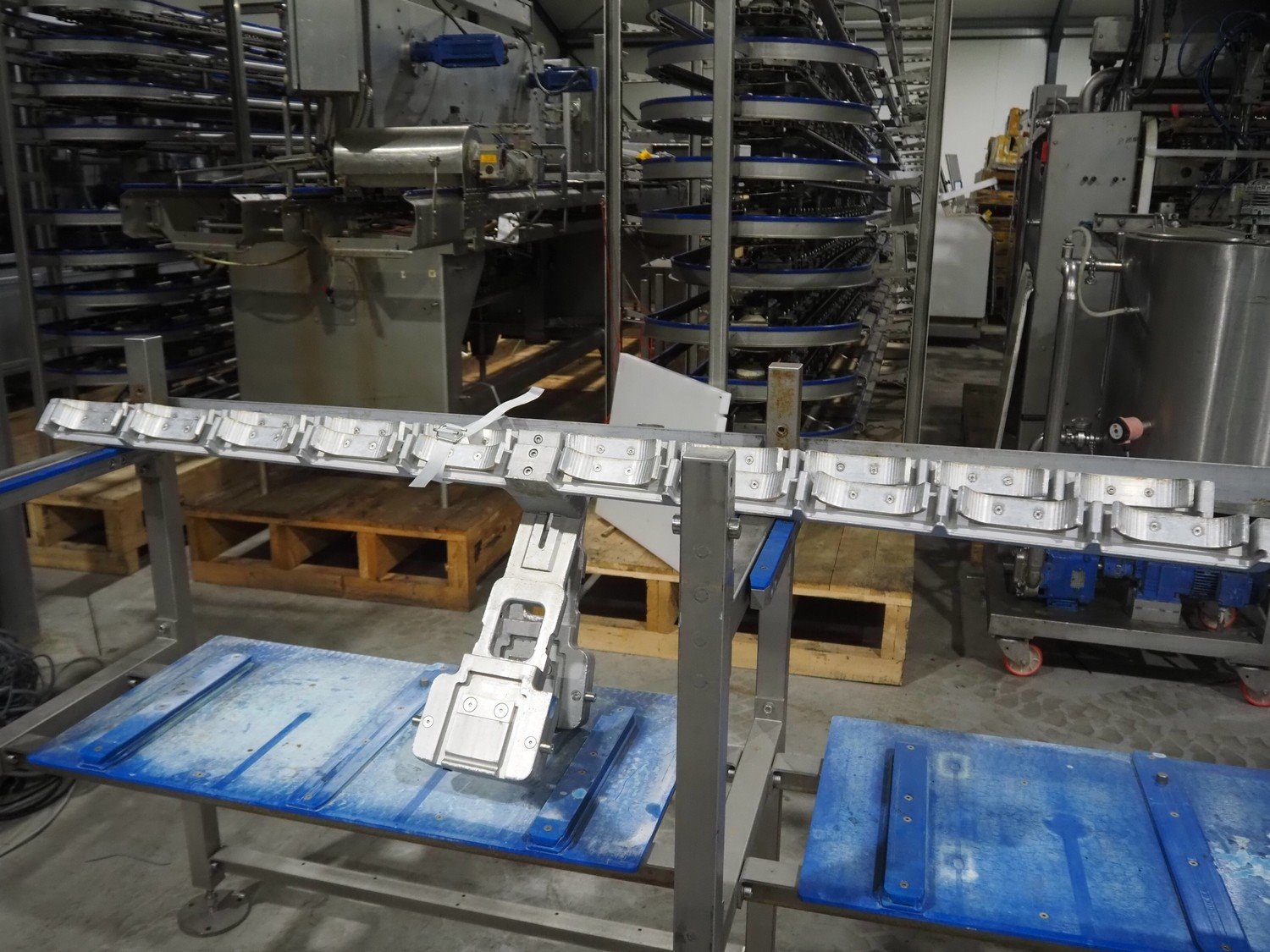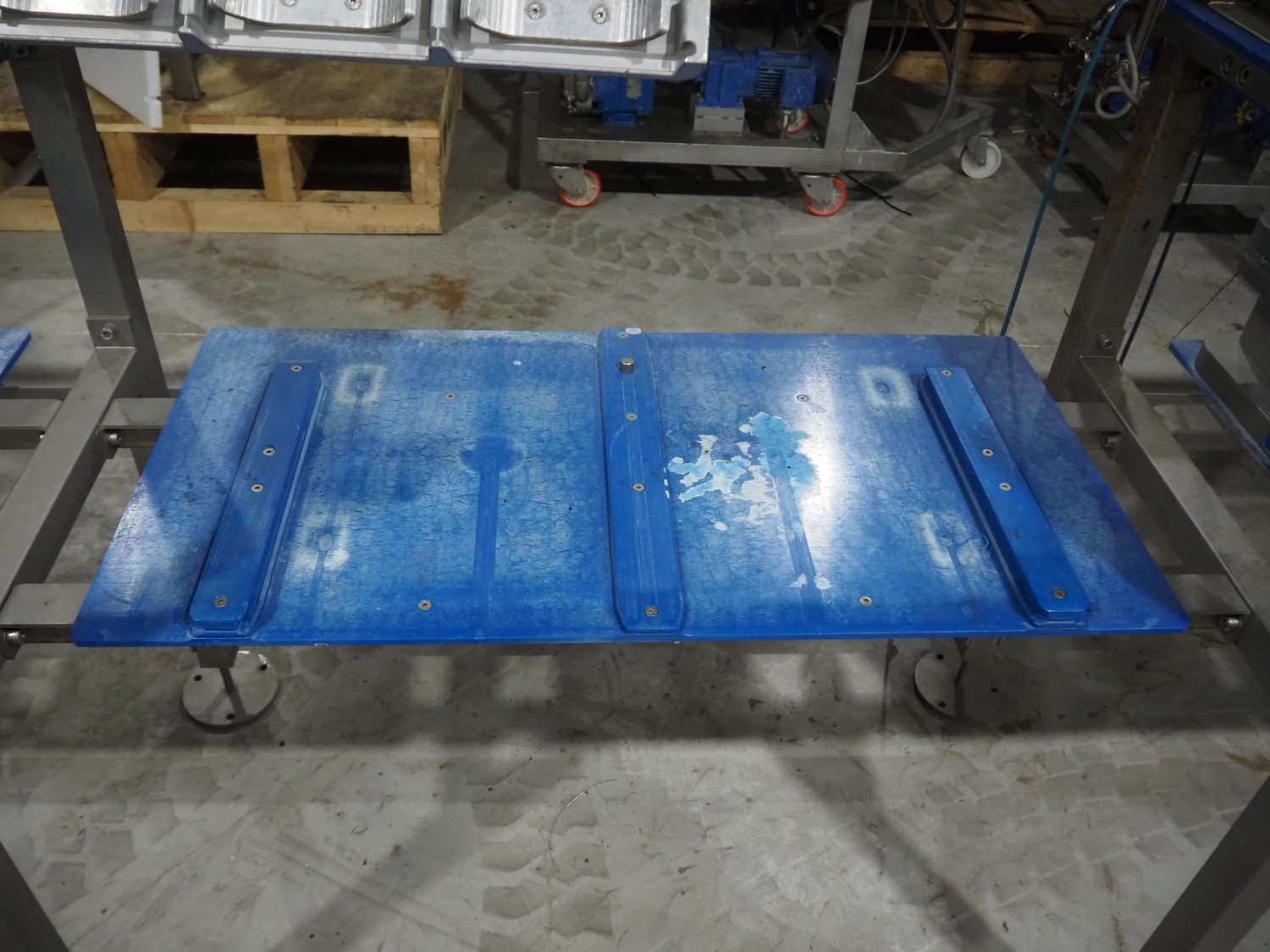 Sealpac dyes on s/s rack, dimensions dye: (6x) 170 mm x 120 mm, (3x) 300 mm x 240 mm, dimensions rack: 4900 mm x 750 mm x 1300 mm.
