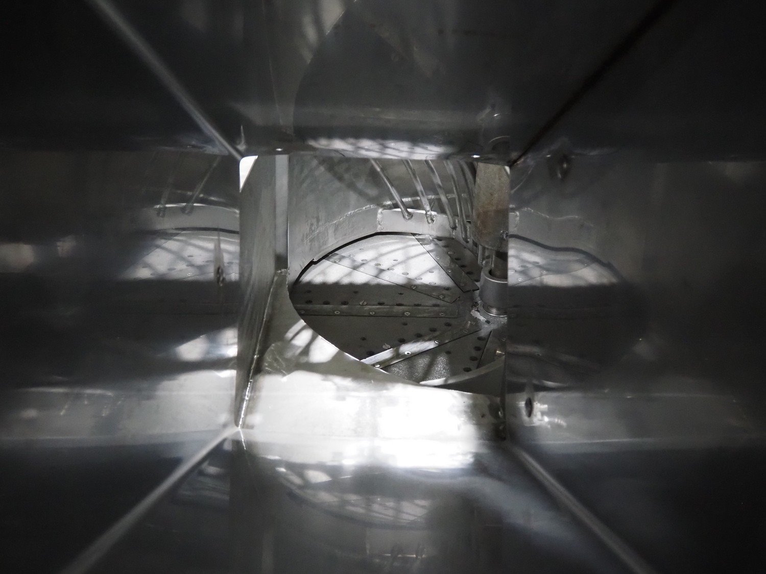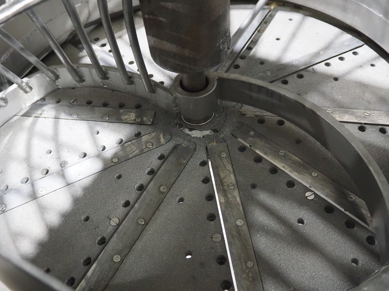 Vegetable slicer, s/s frame, clearance: 250 mm x 250 mm, inside dimensions: Ø 570 mm x 240 mm, 10 knifes, knife length: 240 mm, total dimensions: 1360 mm x 1150 mm x 1500 mm.