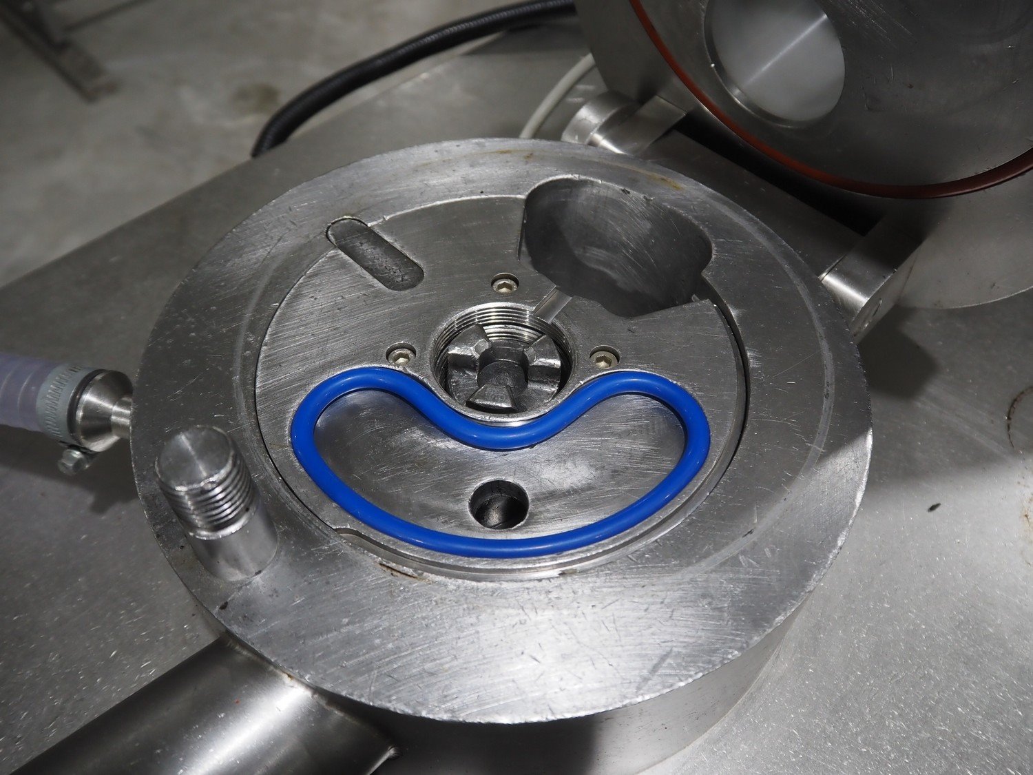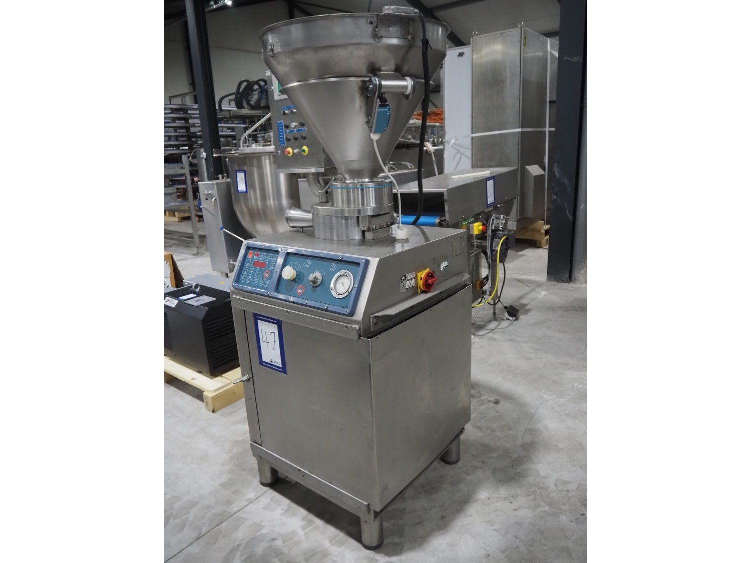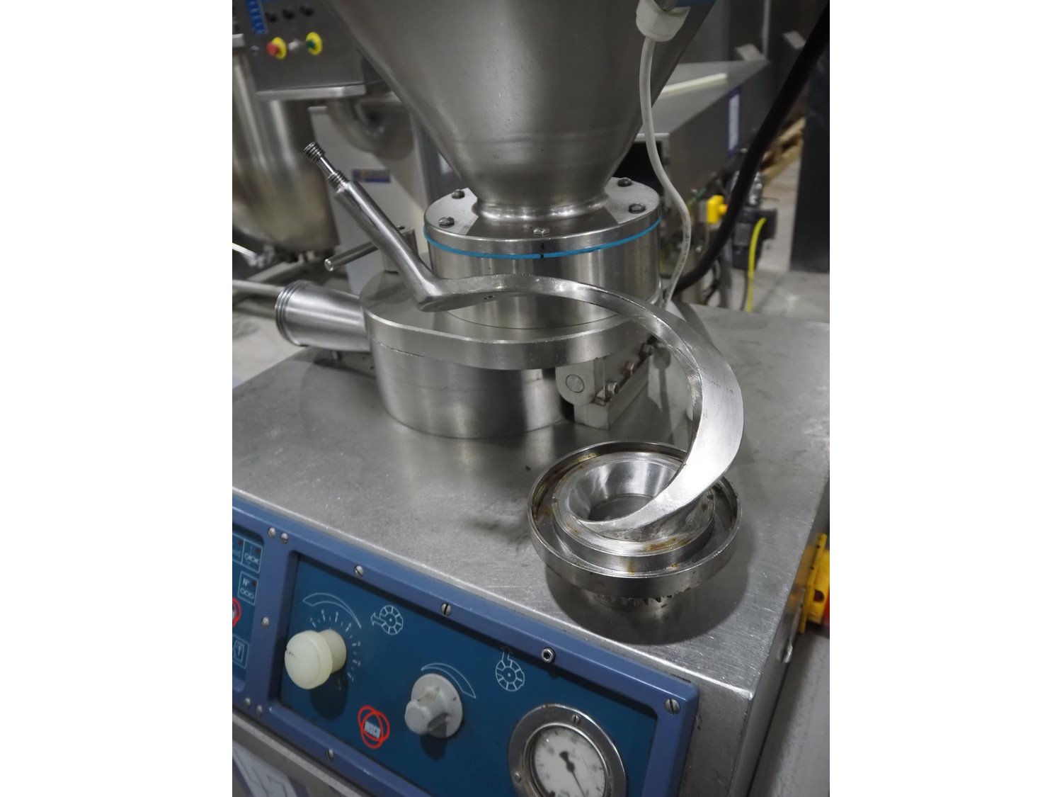 Risco SPA vacuum filling machine, type: RS 1040, serial number: A194007, year of construction: 1994, 415 V, 9/16 A, 3.7 kW, dimensions: 700 mm x 800 mm x 1650 mm. Rotor is incomplete, scraper is missing.