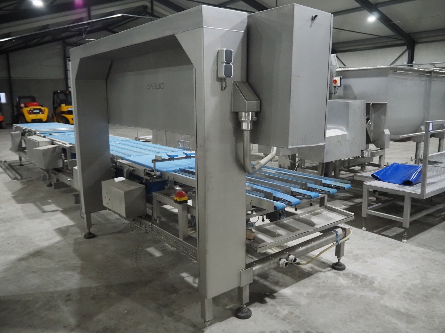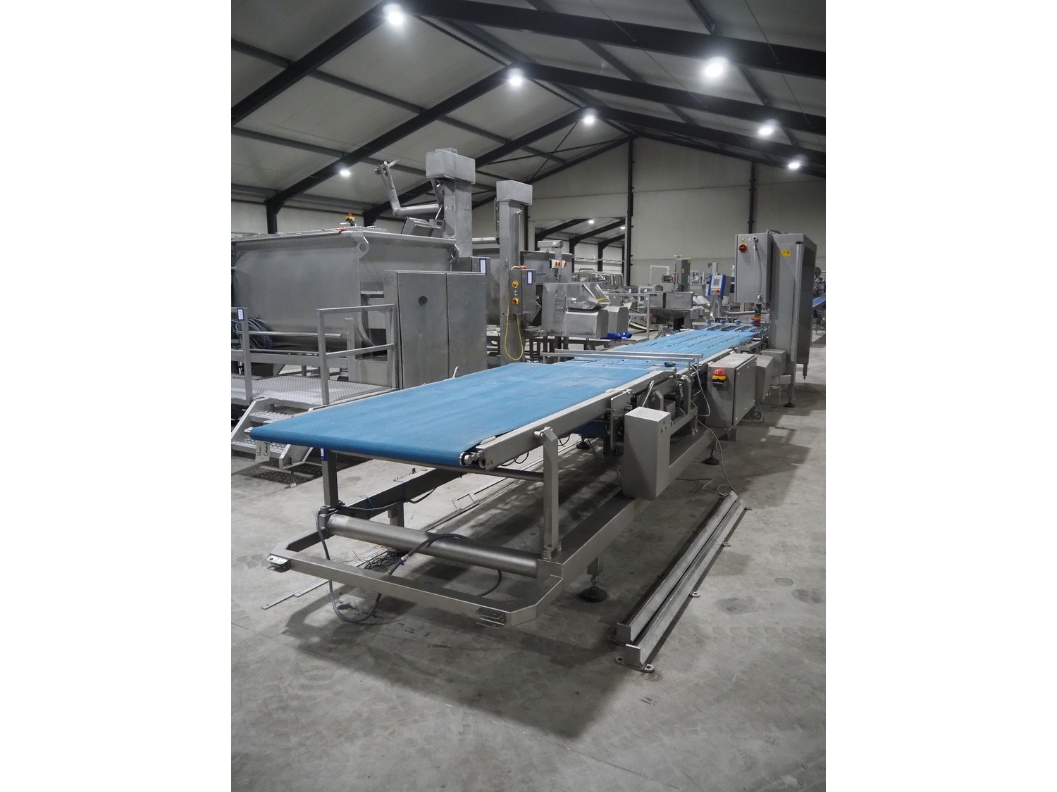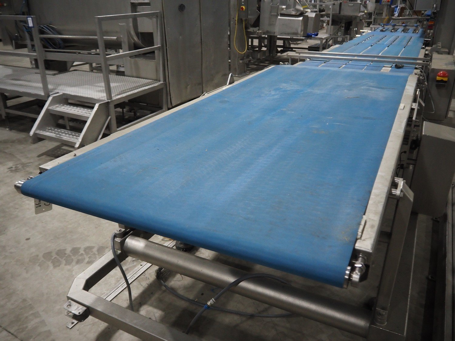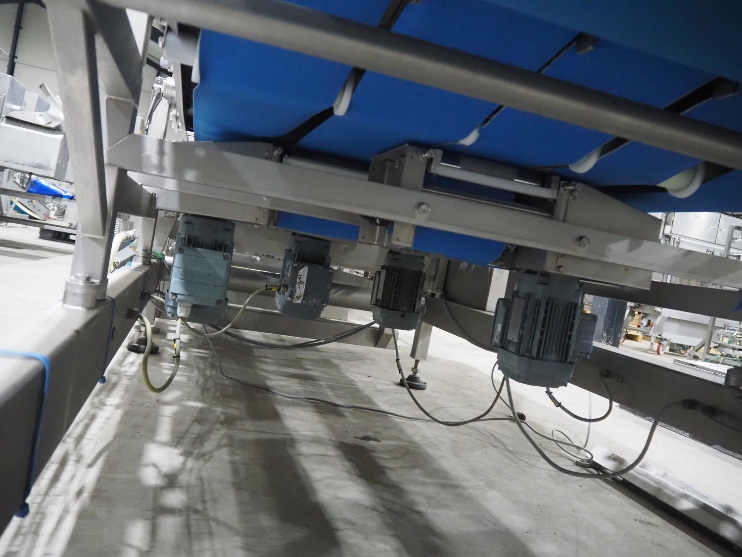 Kortlever spraying belt, serial number: 2920, plastic belts, belt width: 1000 mm, 950 mm, (5x) 190 mm, (5x) 180 mm, (5x) 90 mm, total dimensions: 9500 mm x 1700 mm x 2100 mm. Without spraying system.