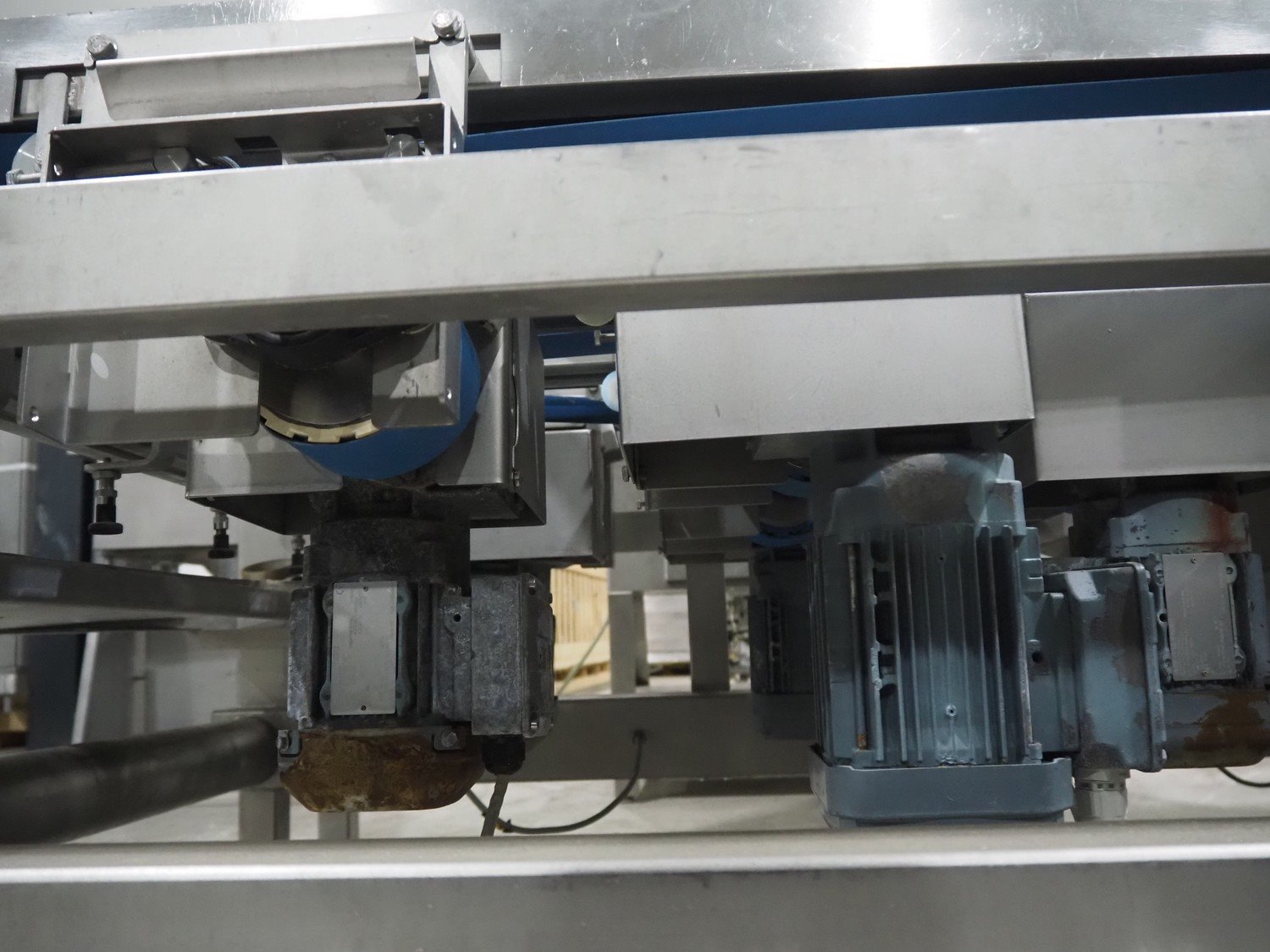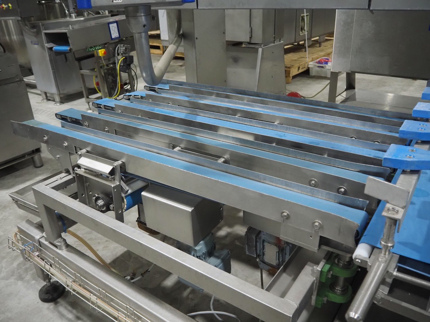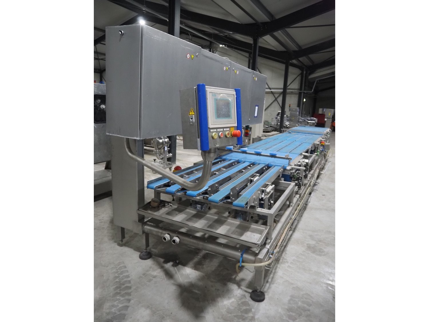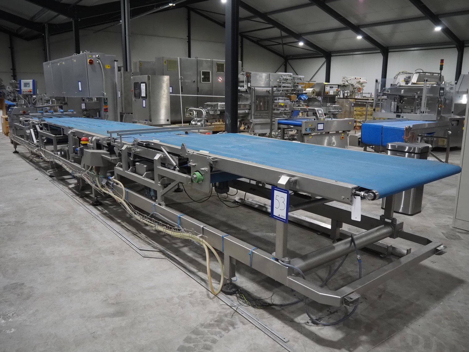 Kortlever spraying belt, serial number: 2920, plastic belts, belt width: 1000 mm, 950 mm, (5x) 190 mm, (5x) 180 mm, (5x) 90 mm, total dimensions: 9500 mm x 1700 mm x 2100 mm. Without spraying system.