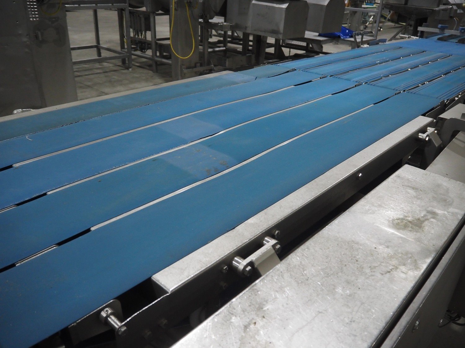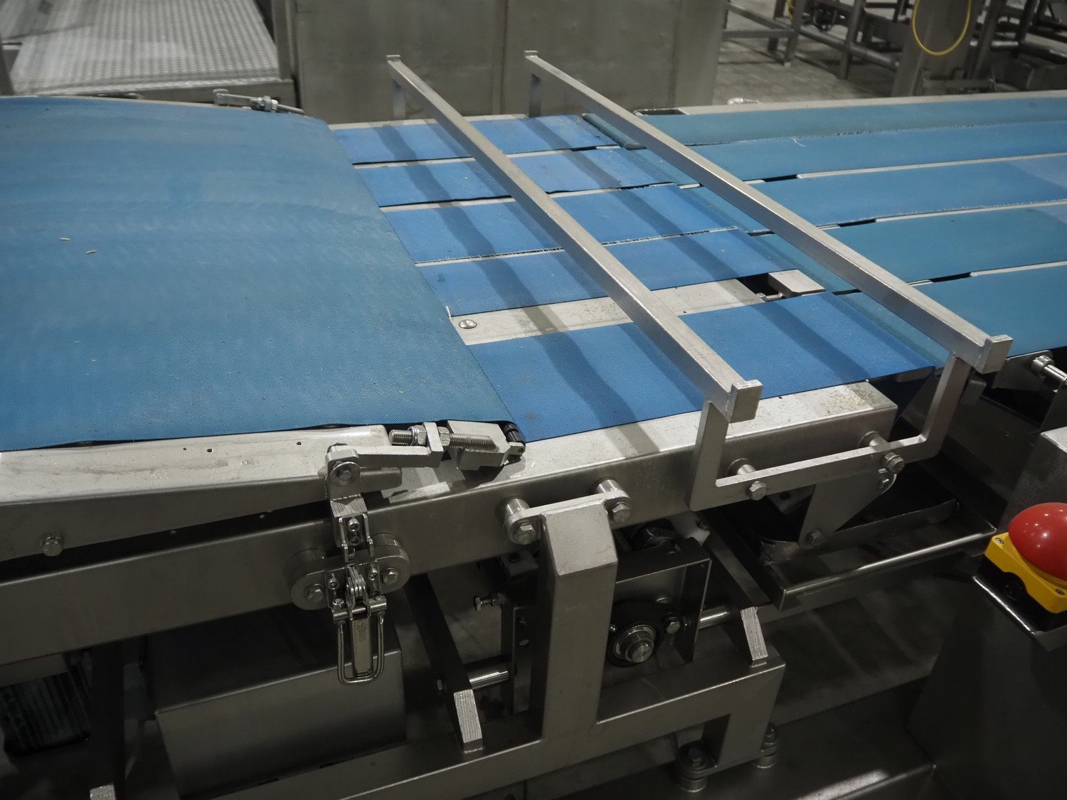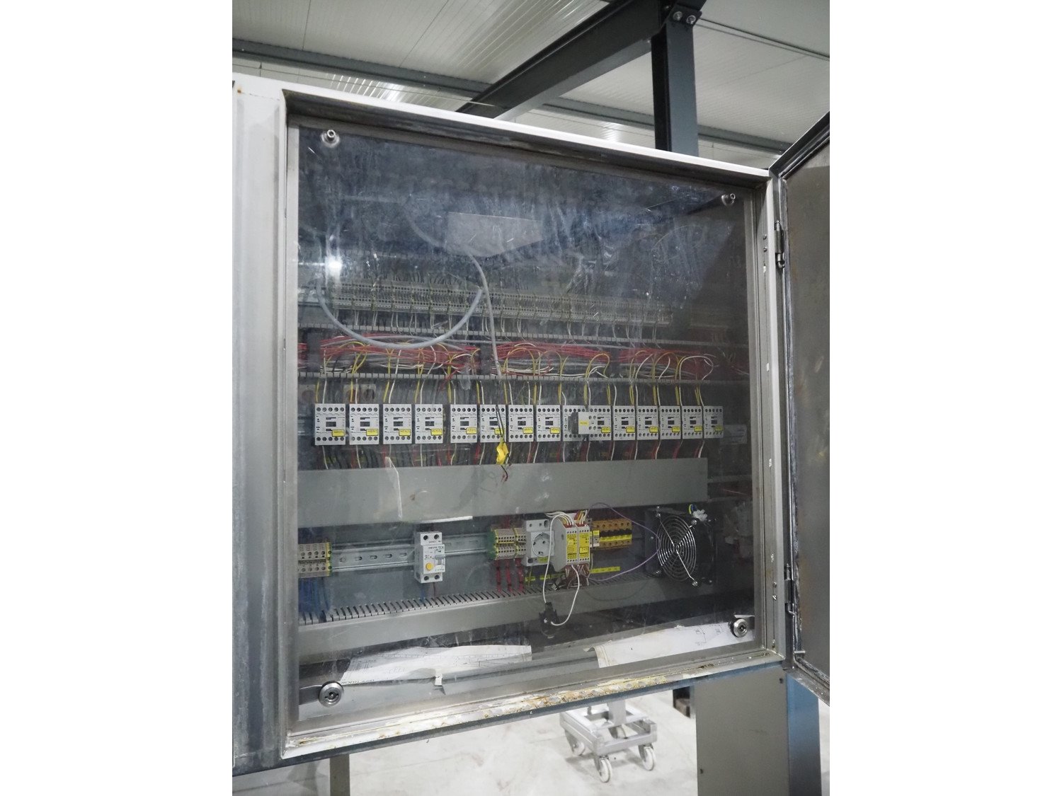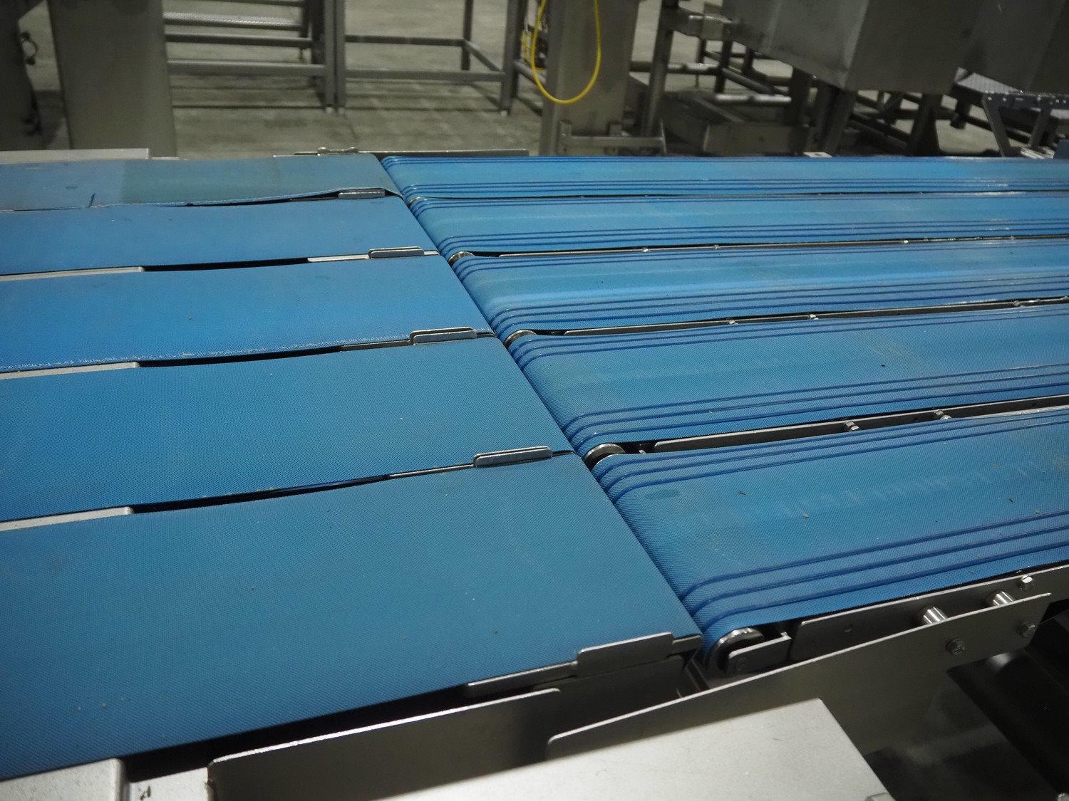 Kortlever spraying belt, serial number: 2920, plastic belts, belt width: 1000 mm, 950 mm, (5x) 190 mm, (5x) 180 mm, (5x) 90 mm, total dimensions: 9500 mm x 1700 mm x 2100 mm. Without spraying system.