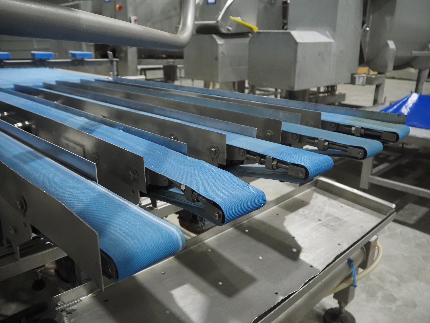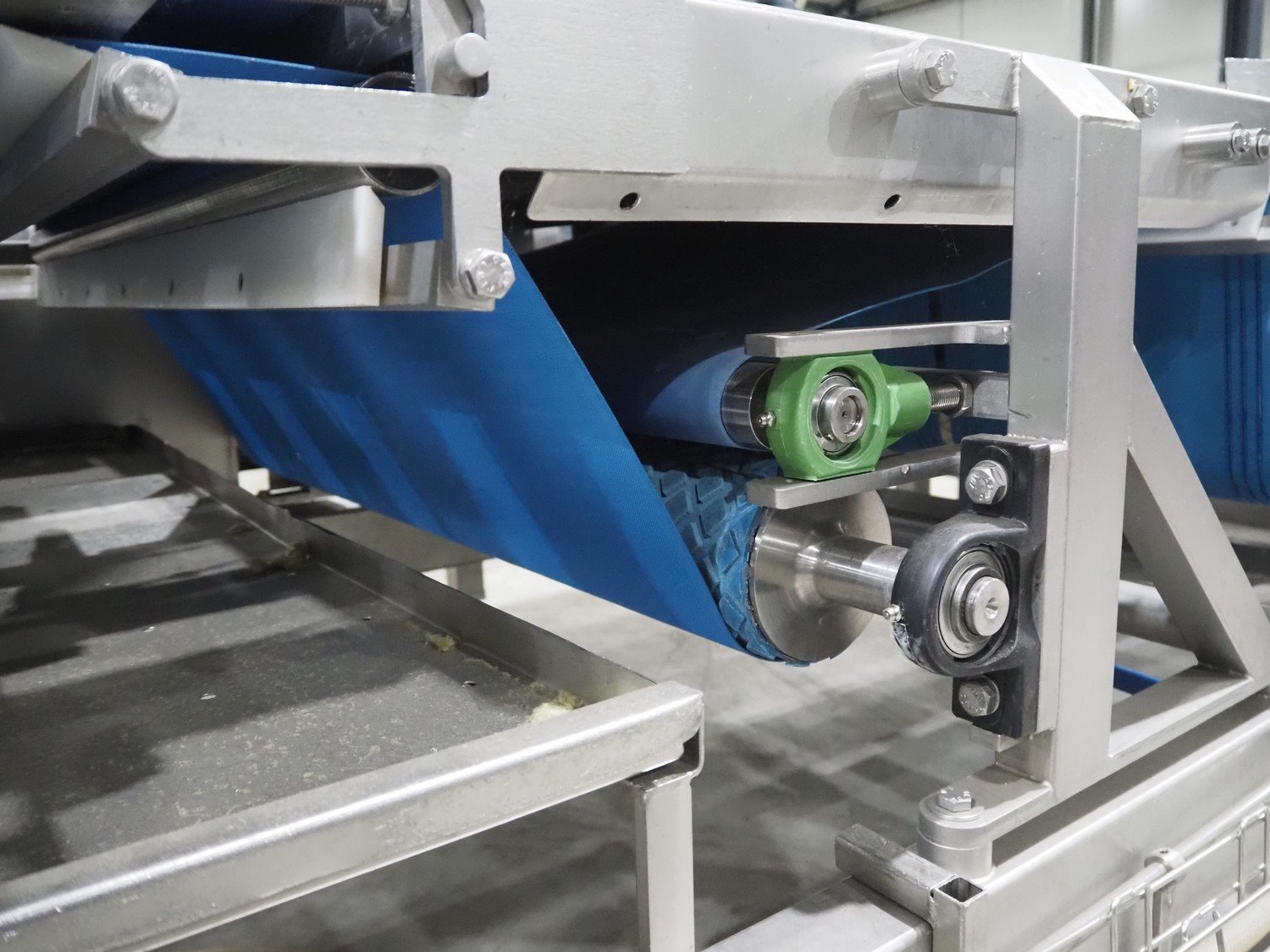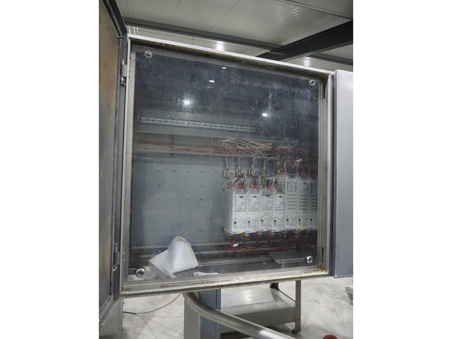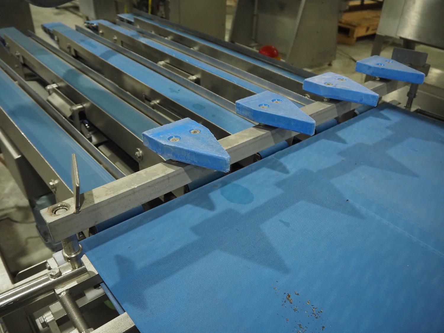 Kortlever spraying belt, serial number: 2920, plastic belts, belt width: 1000 mm, 950 mm, (5x) 190 mm, (5x) 180 mm, (5x) 90 mm, total dimensions: 9500 mm x 1700 mm x 2100 mm. Without spraying system.