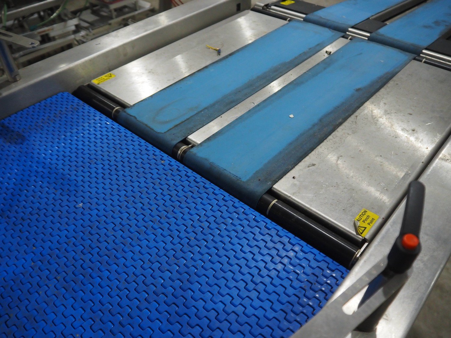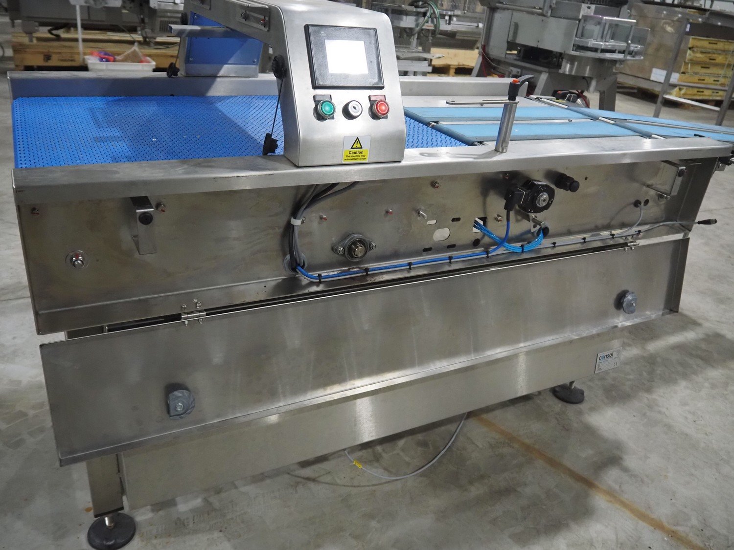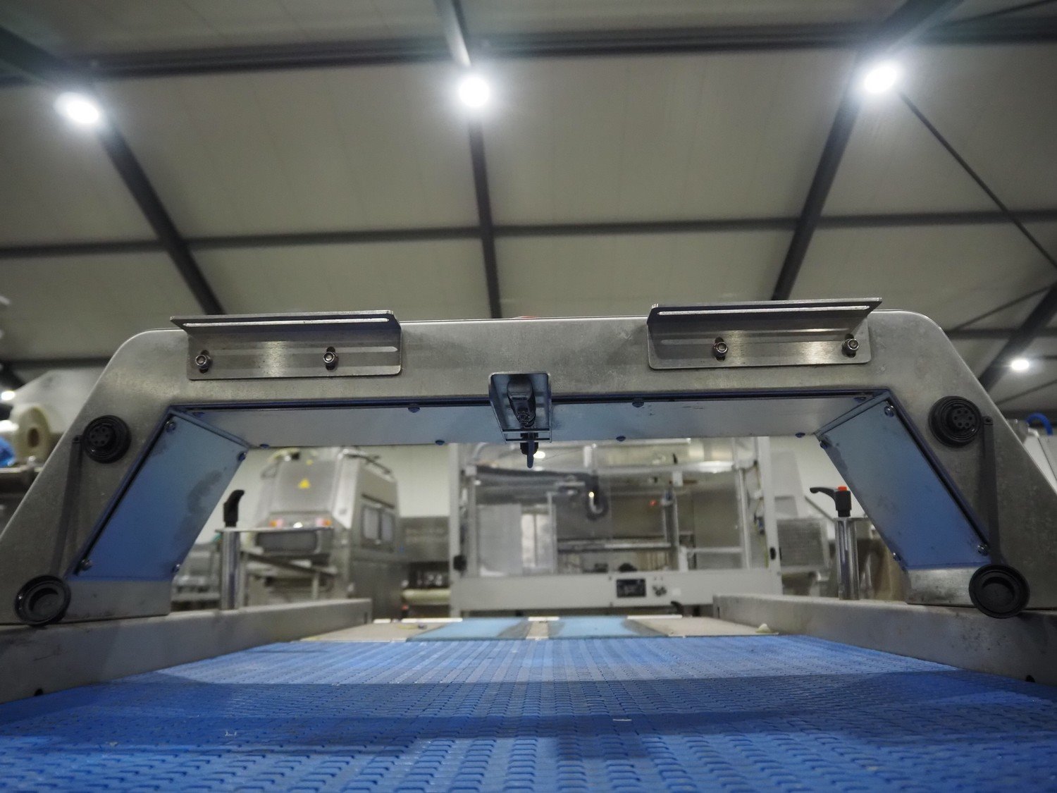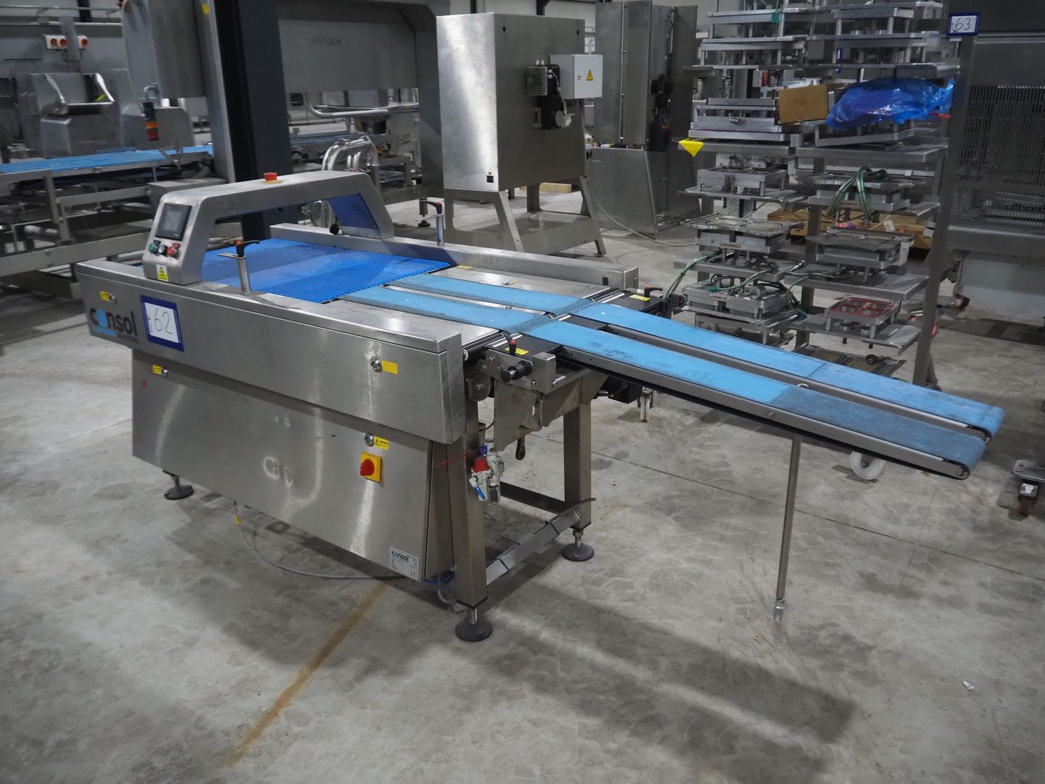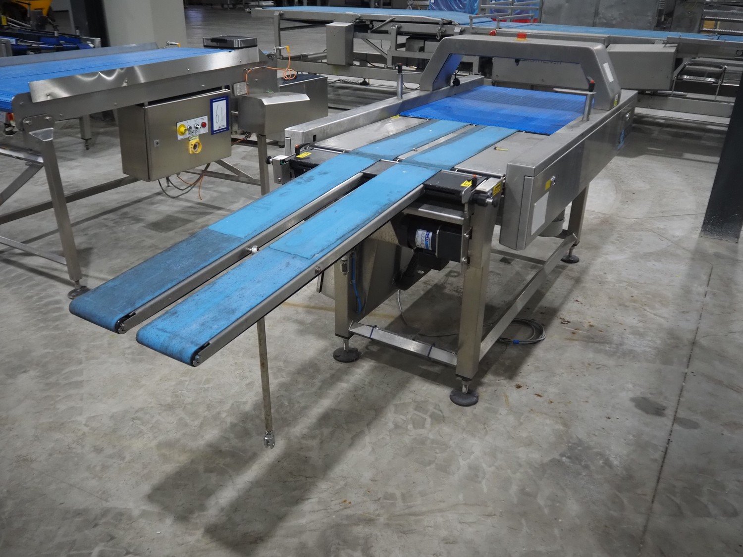 Consol Converging Solutions lane dividing belt, model: INT3, serial number: CS 6696, year of construction: 2019, 230 V, 16 A, plastic belts, belt width: (1x) 680 mm, (2x) 135 mm, total dimensions: 2650 mm x 860 mm x 1150 mm.