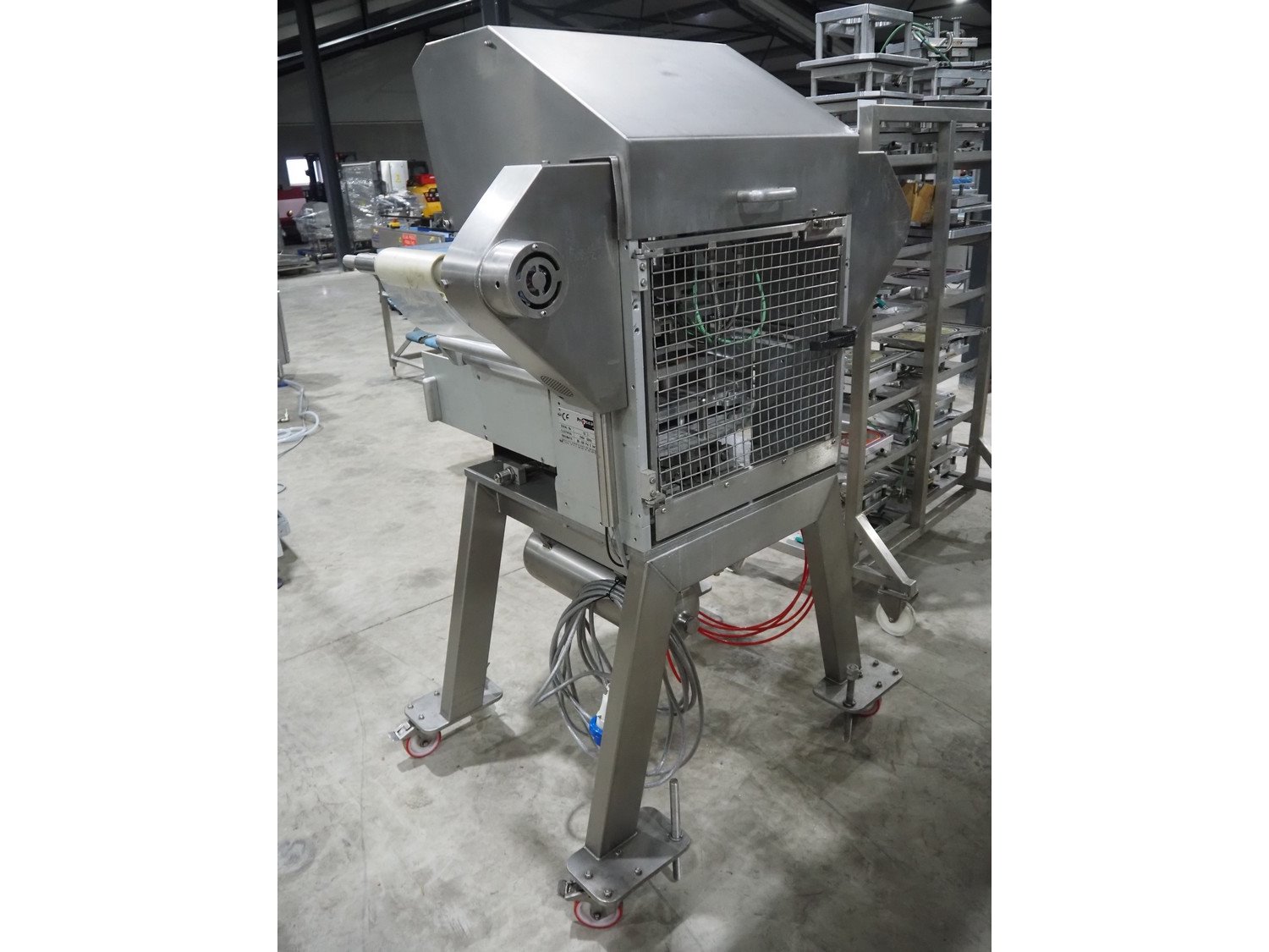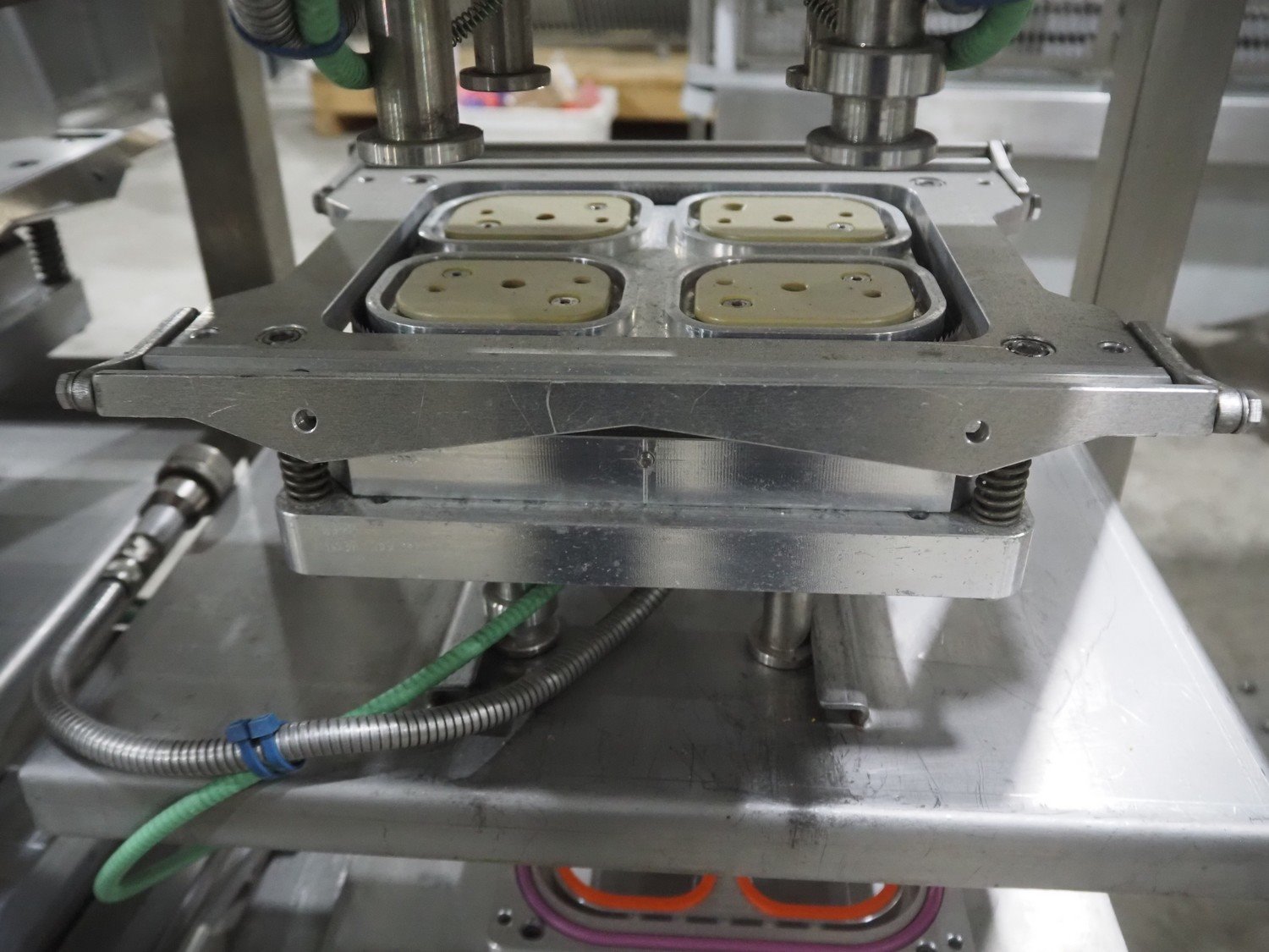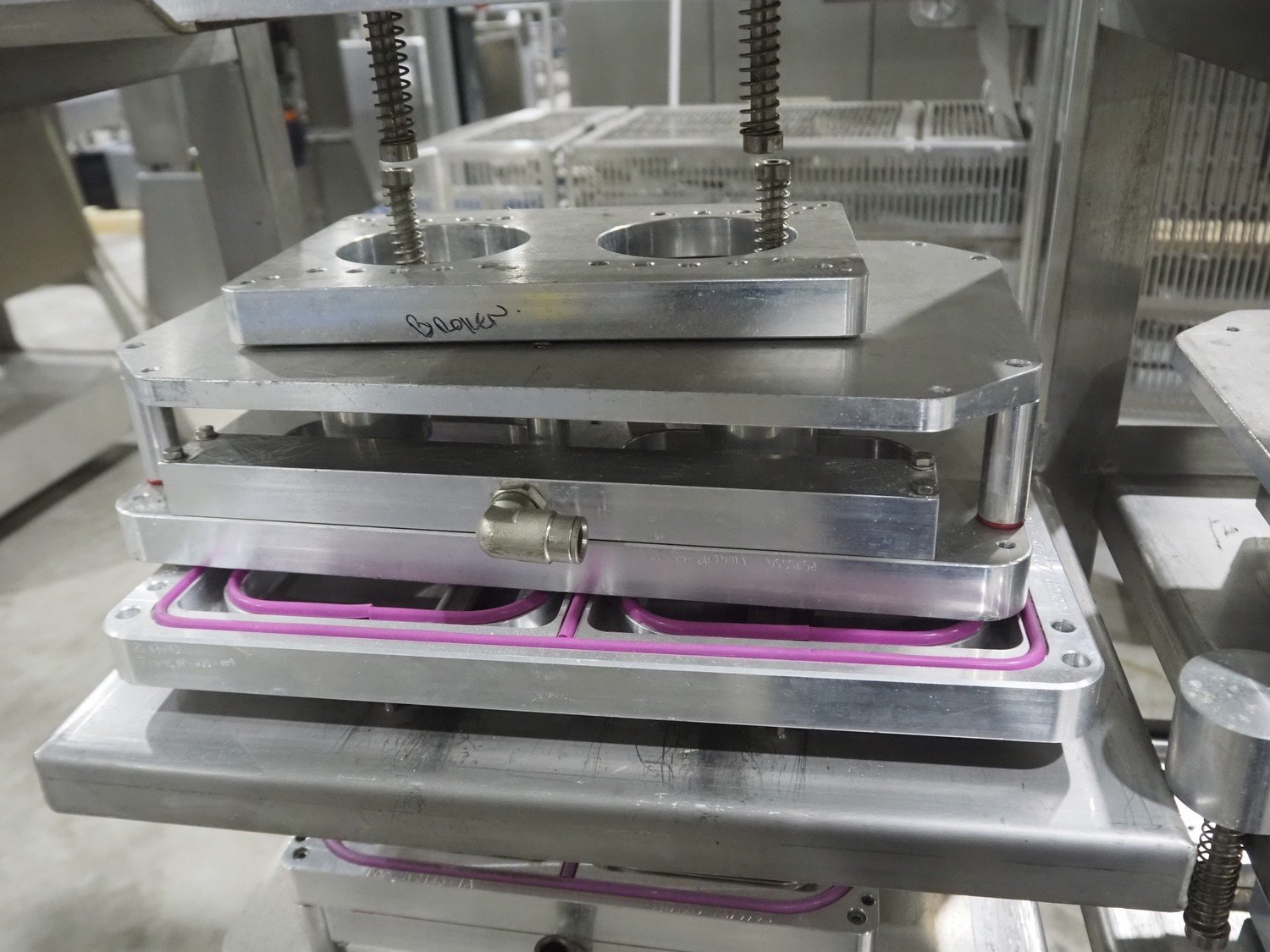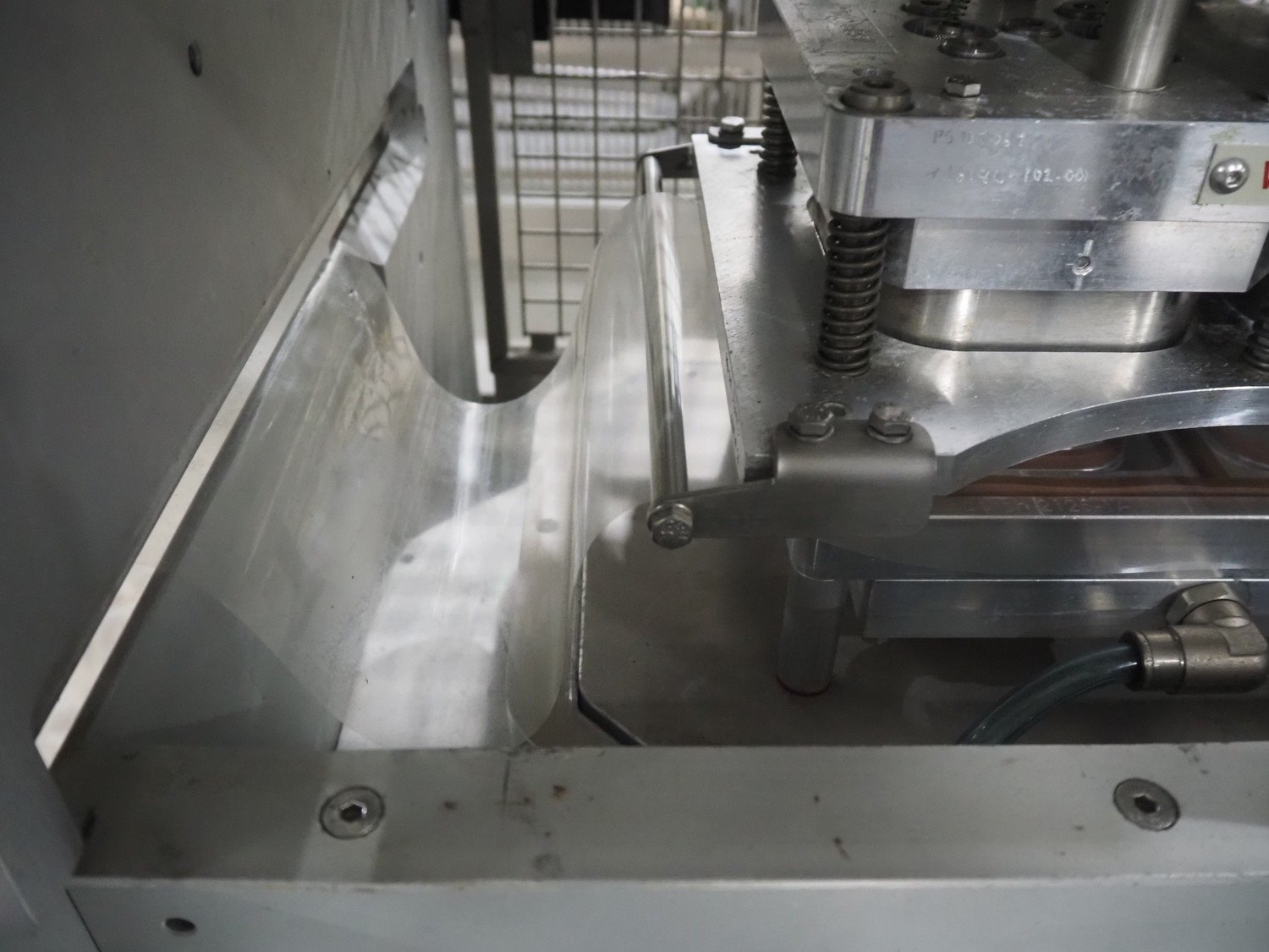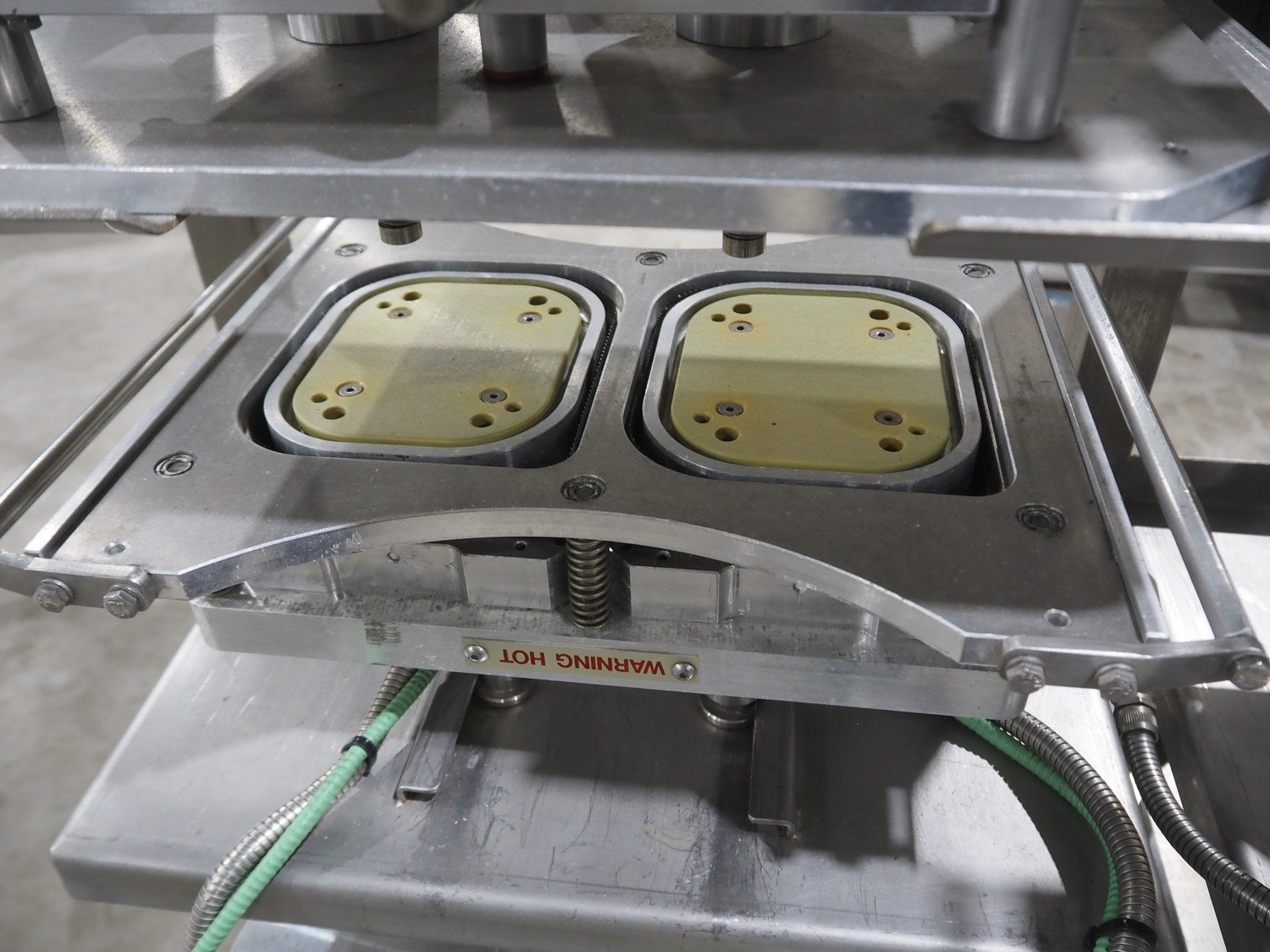 Proseal UK LTD mobile rotating traysealer, serial number: 1058, 240 V, 50 Hz, 5 bar, film width: 205 mm, dye: (2x) 105 mm x 160 mm, total dimensions: 1150 mm x 1000 mm x 1680 mm. Including s/s rack with large amount of extra forms, dye: (2x) 140 mm x 165 mm, (2x) 120 mm x 160 mm, (2x) 170 mm x 215 mm, 175 mm x 215 mm, (2x) 115 mm x 115 mm, (2x) 165 mm x 215 mm, (2x) Ø 135 mm, total dimensions rack: 1000 mm x 900 mm x 1600 mm.