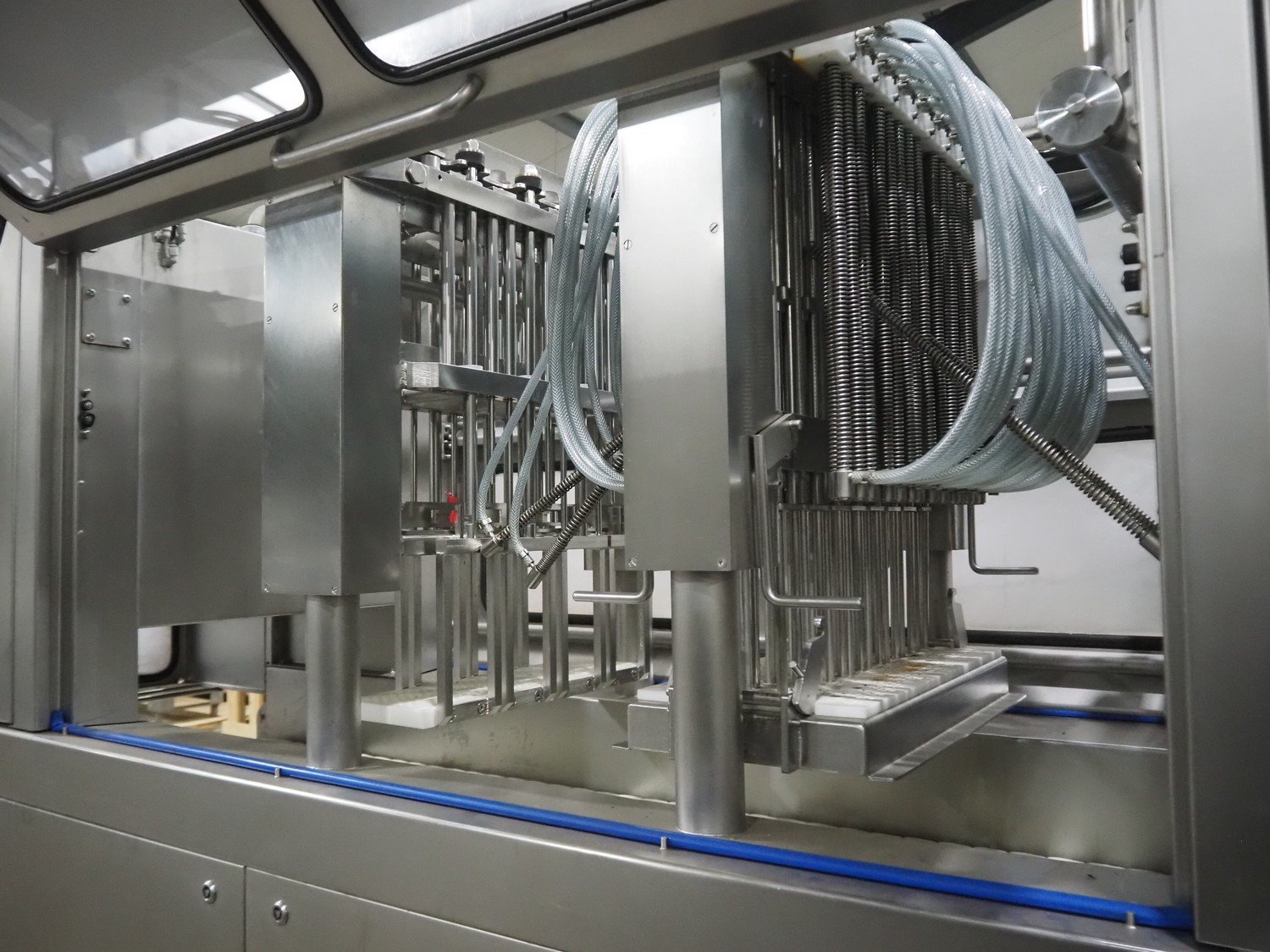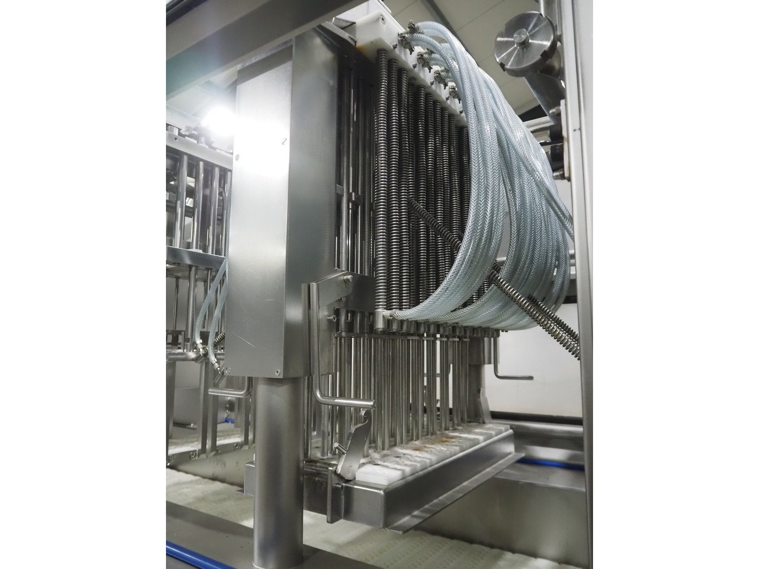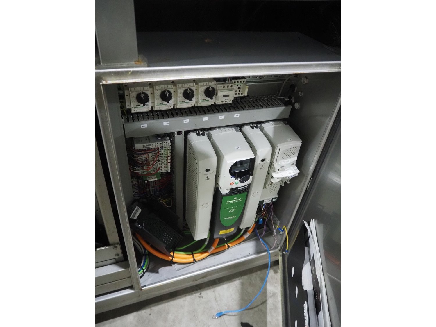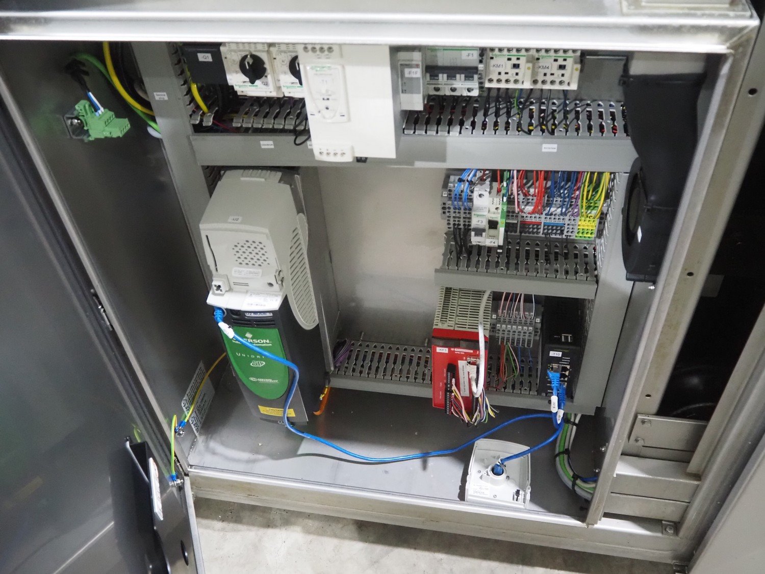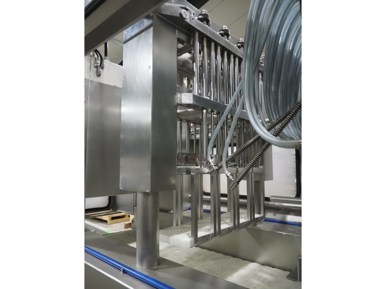 Fomaco injector, model: FGM 64 DC M3, serial number: 14818-2013, 400 V, 3 Ph, 50 Hz, 63 A, 19 kW, 6 bar, plastic mesh belt, belt width: 525 mm, total dimensions: 3200 mm x 1150 mm x 2500 mm. Incomplete. Including trolley for belt, dimensions: 2950 mm x 700 mm x 1220 mm.