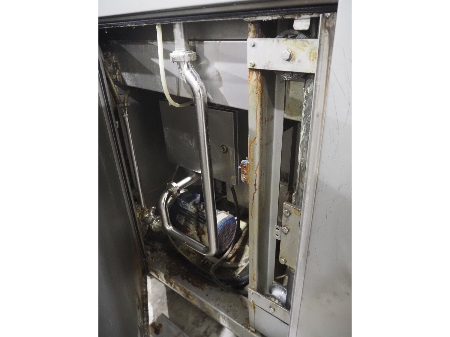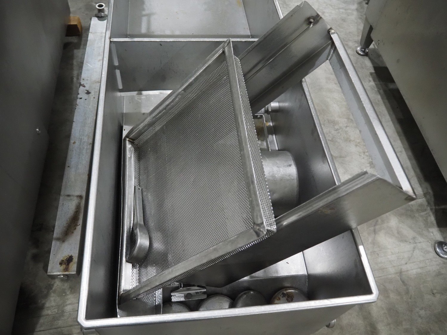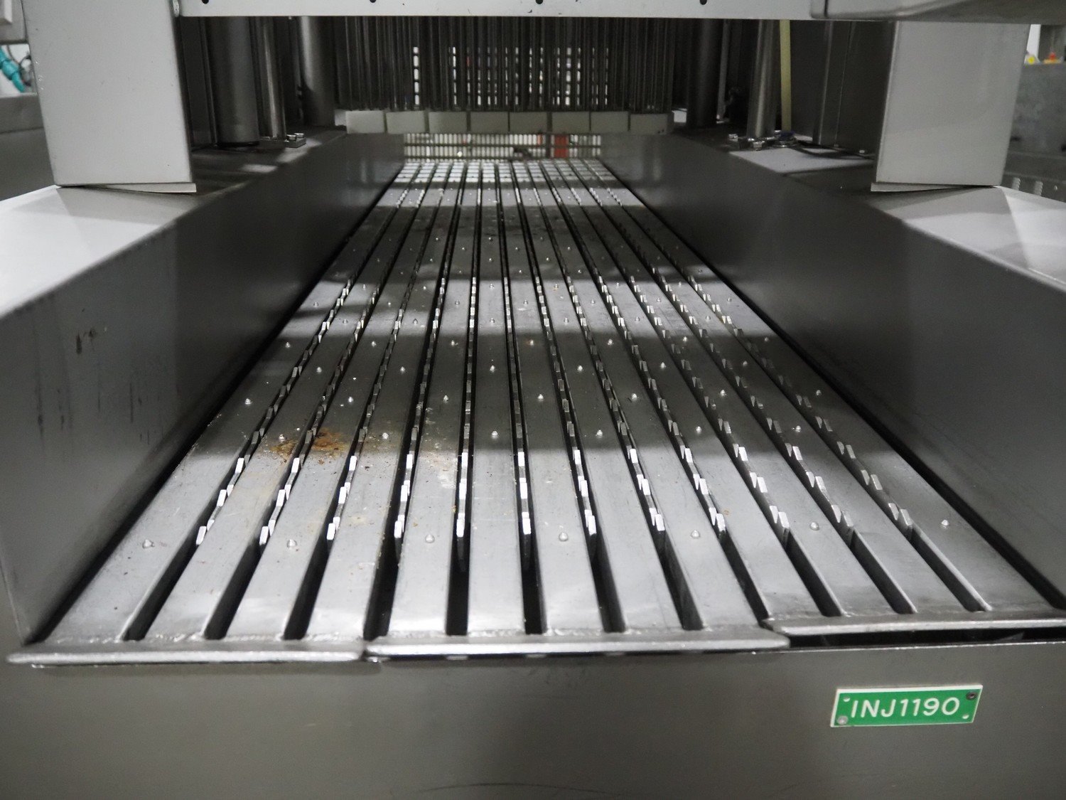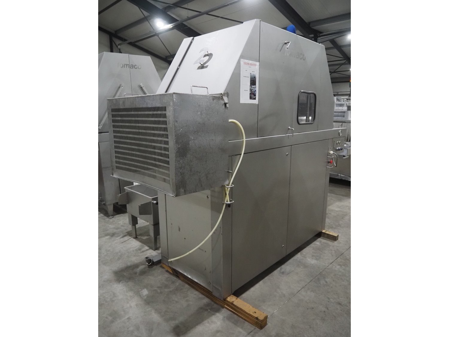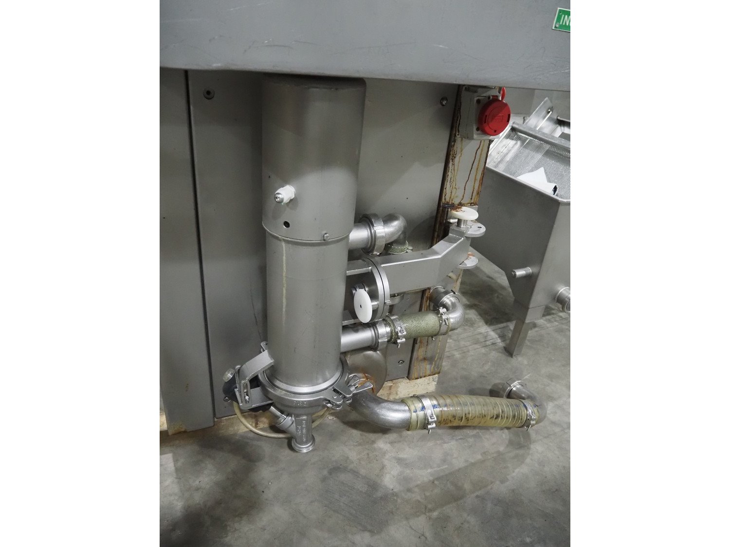 Fomaco A/S injector, model: FGM 64F SW, machine number: 7897 1999, year of construction: 1999, 400 V, 3 Ph, 50 Hz, 18/32 A, 6 bar, s/s walking beam width: 540 mm, clearance: 540 mm x 150 mm, total dimensions: 1680 mm x 850 mm x 2220 mm. Including Fomaco A/S mobile filter tub, model: PFS 5/225 ROS, machine number: 8720, year of construction: 2001, dimensions: 1800 mm x 620 mm x 920 mm. Filter tub is incomplete.