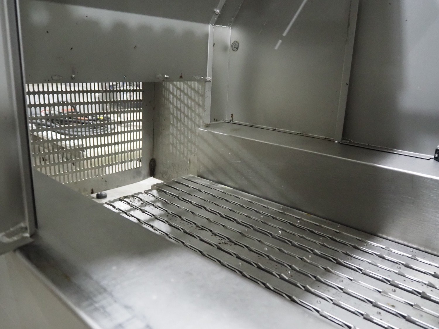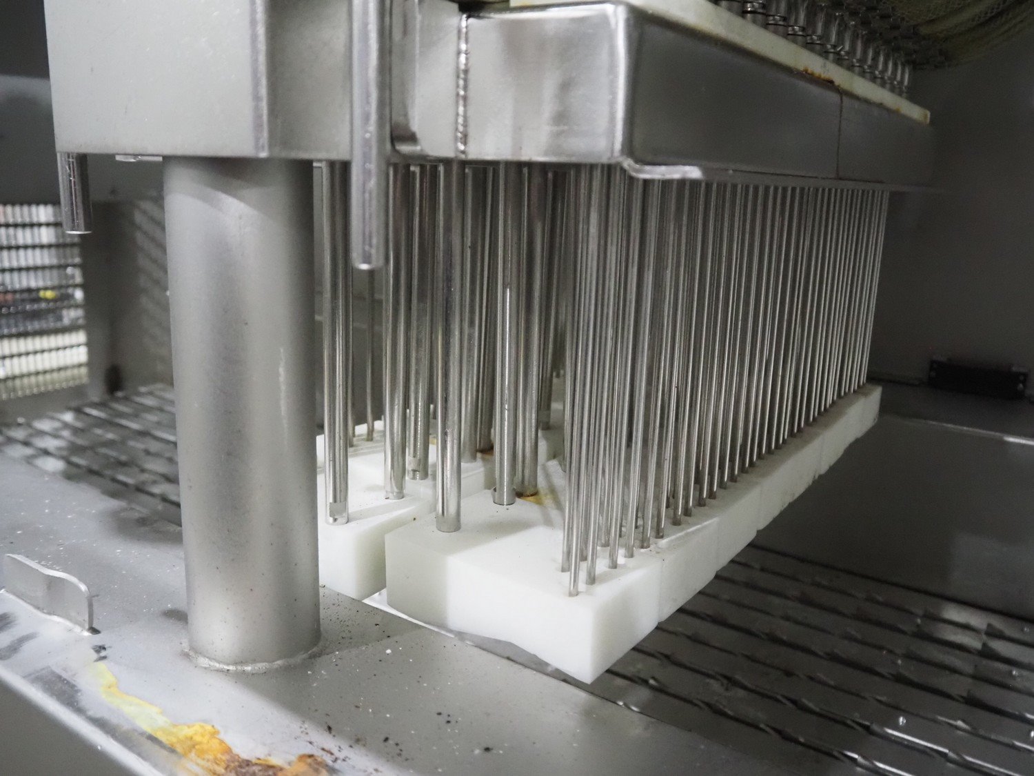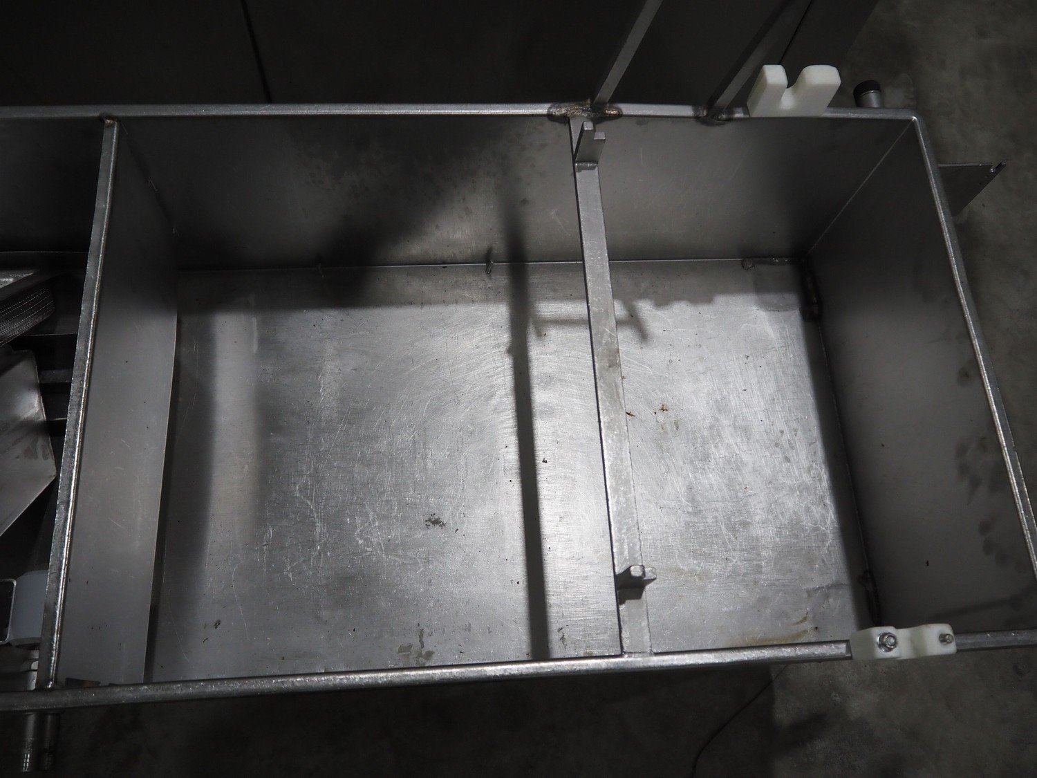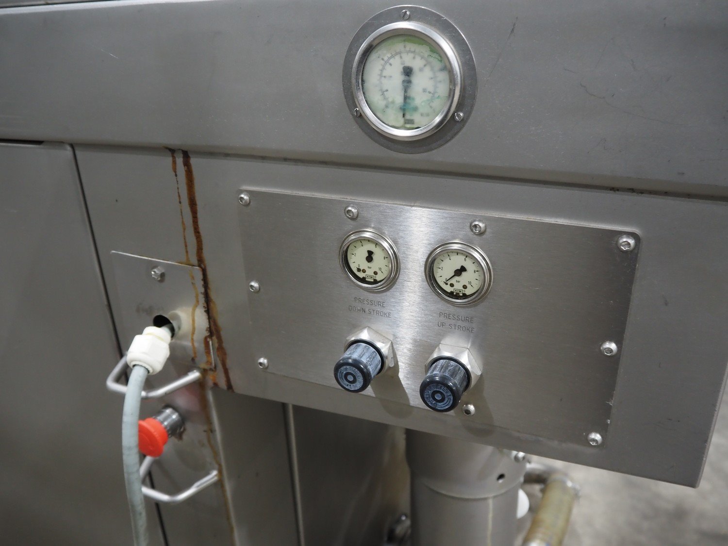 Fomaco A/S injector, model: FGM 64F SW, machine number: 7897 1999, year of construction: 1999, 400 V, 3 Ph, 50 Hz, 18/32 A, 6 bar, s/s walking beam width: 540 mm, clearance: 540 mm x 150 mm, total dimensions: 1680 mm x 850 mm x 2220 mm. Including Fomaco A/S mobile filter tub, model: PFS 5/225 ROS, machine number: 8720, year of construction: 2001, dimensions: 1800 mm x 620 mm x 920 mm. Filter tub is incomplete.