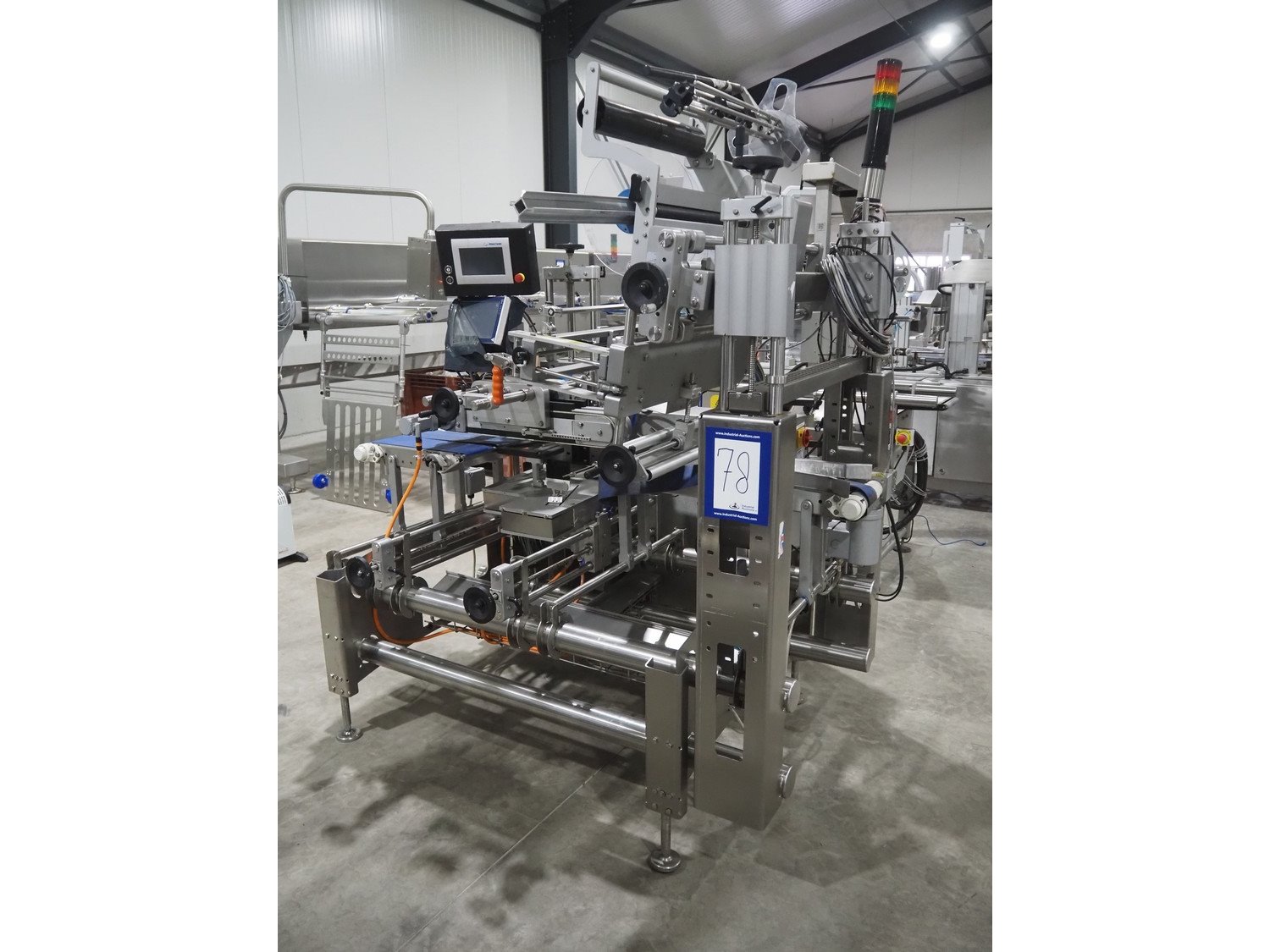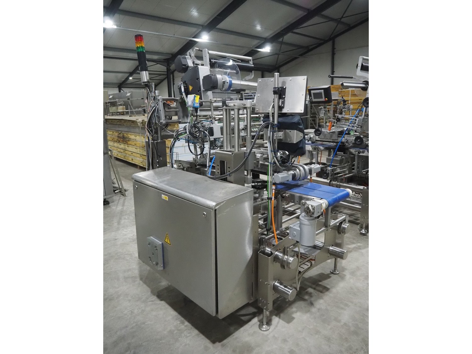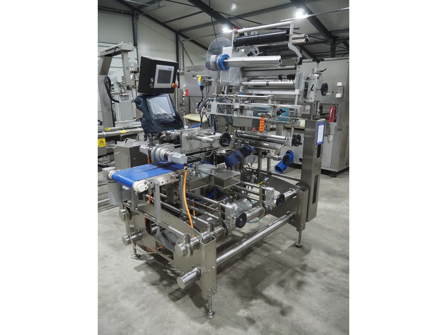Multivac labeller, type: L310, machine number: 266619, year of construction: 2018, 400 V, 3 Ph, 2000 VA, belt width: (2x) 135 mm, 90 mm, total dimensions: 1800 mm x 1500 mm x 1980 mm.