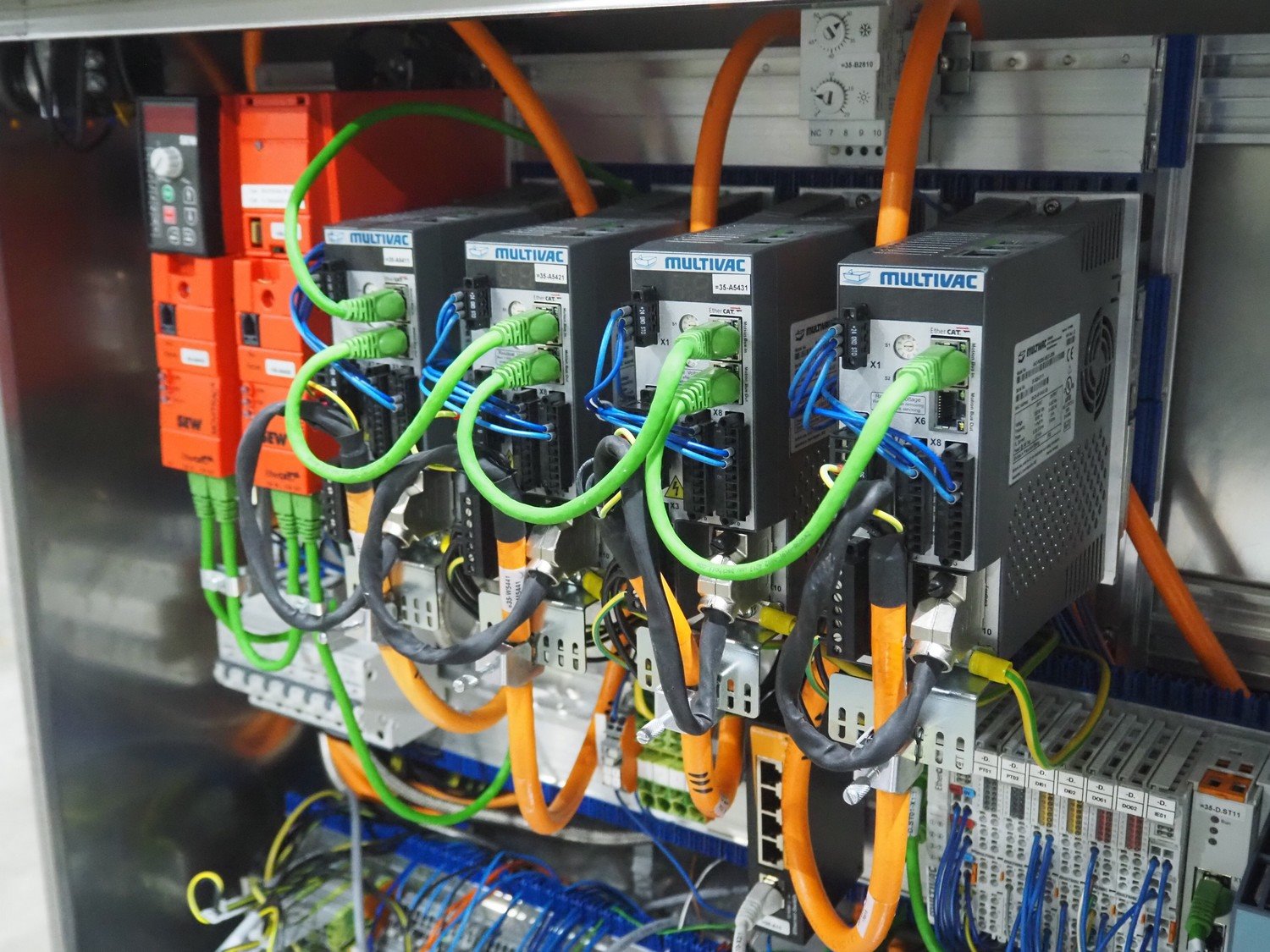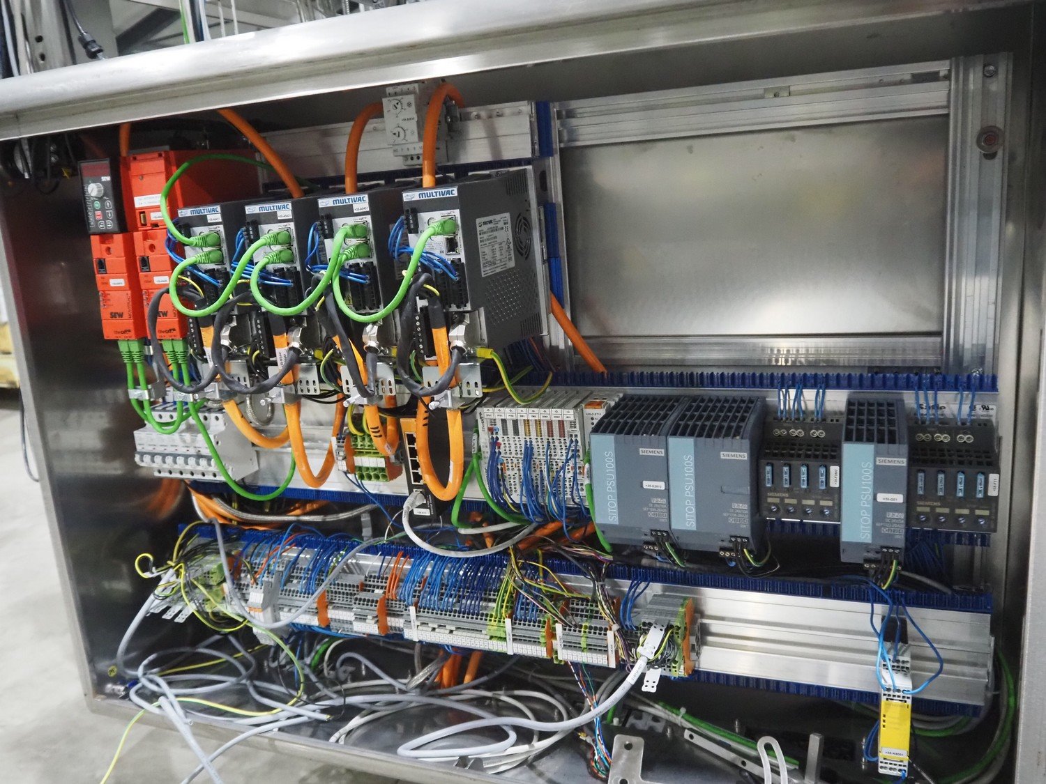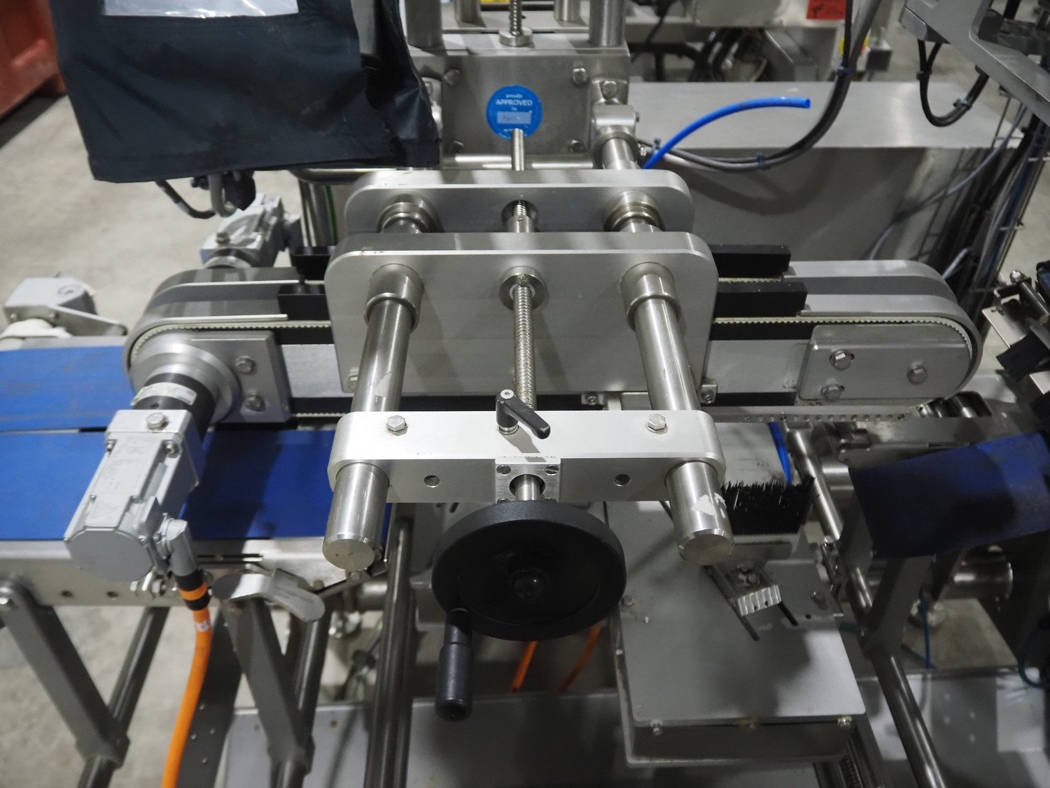 Multivac labeller, type: L310, machine number: 266619, year of construction: 2018, 400 V, 3 Ph, 2000 VA, belt width: (2x) 135 mm, 90 mm, total dimensions: 1800 mm x 1500 mm x 1980 mm.
