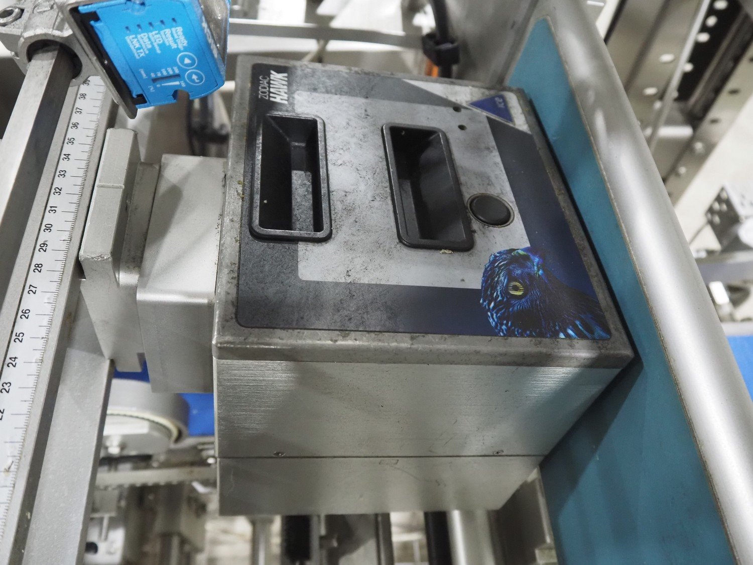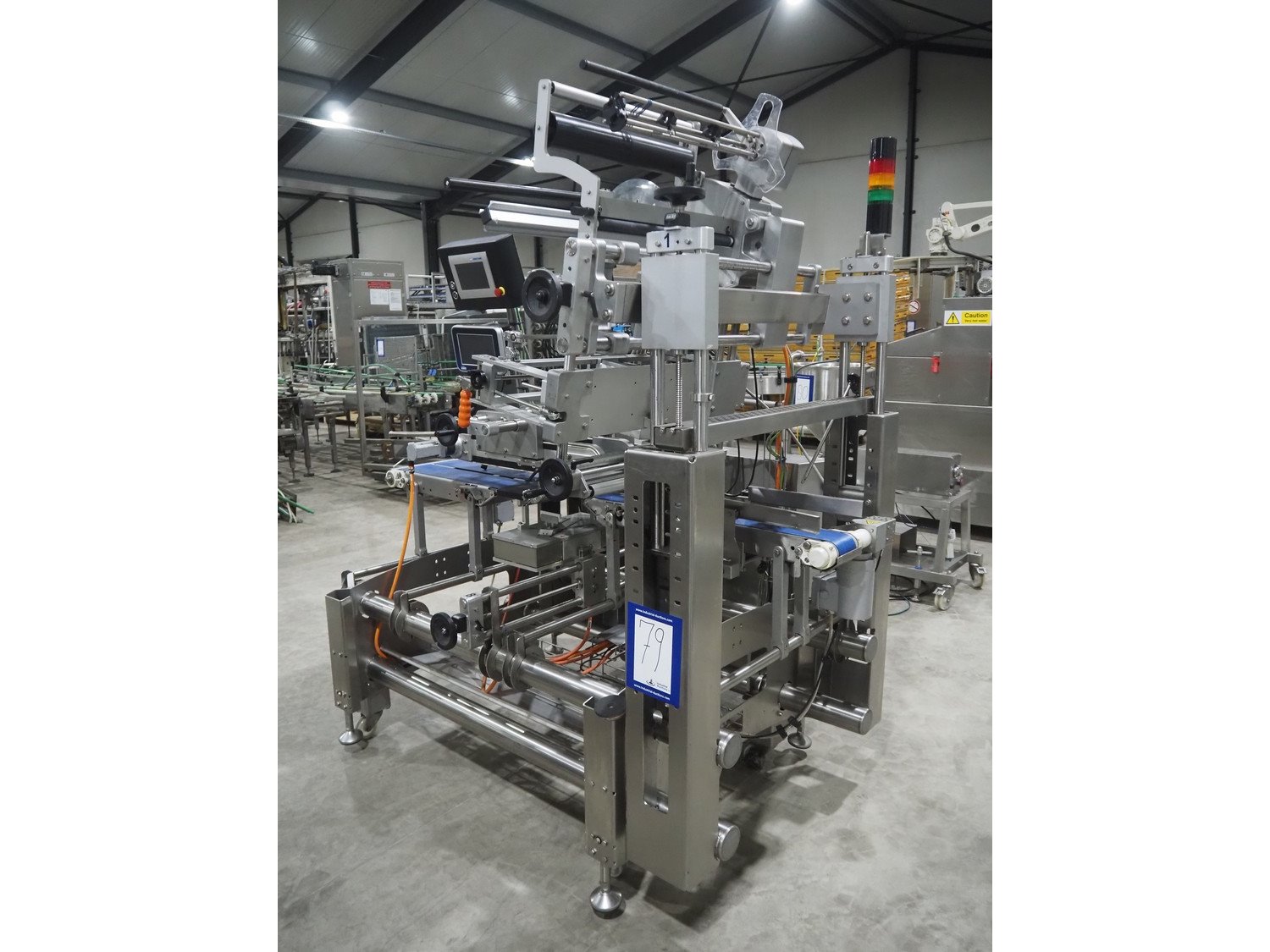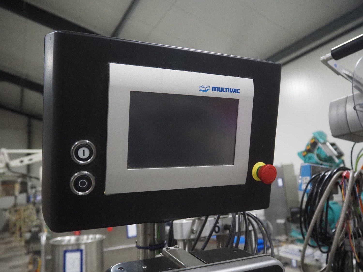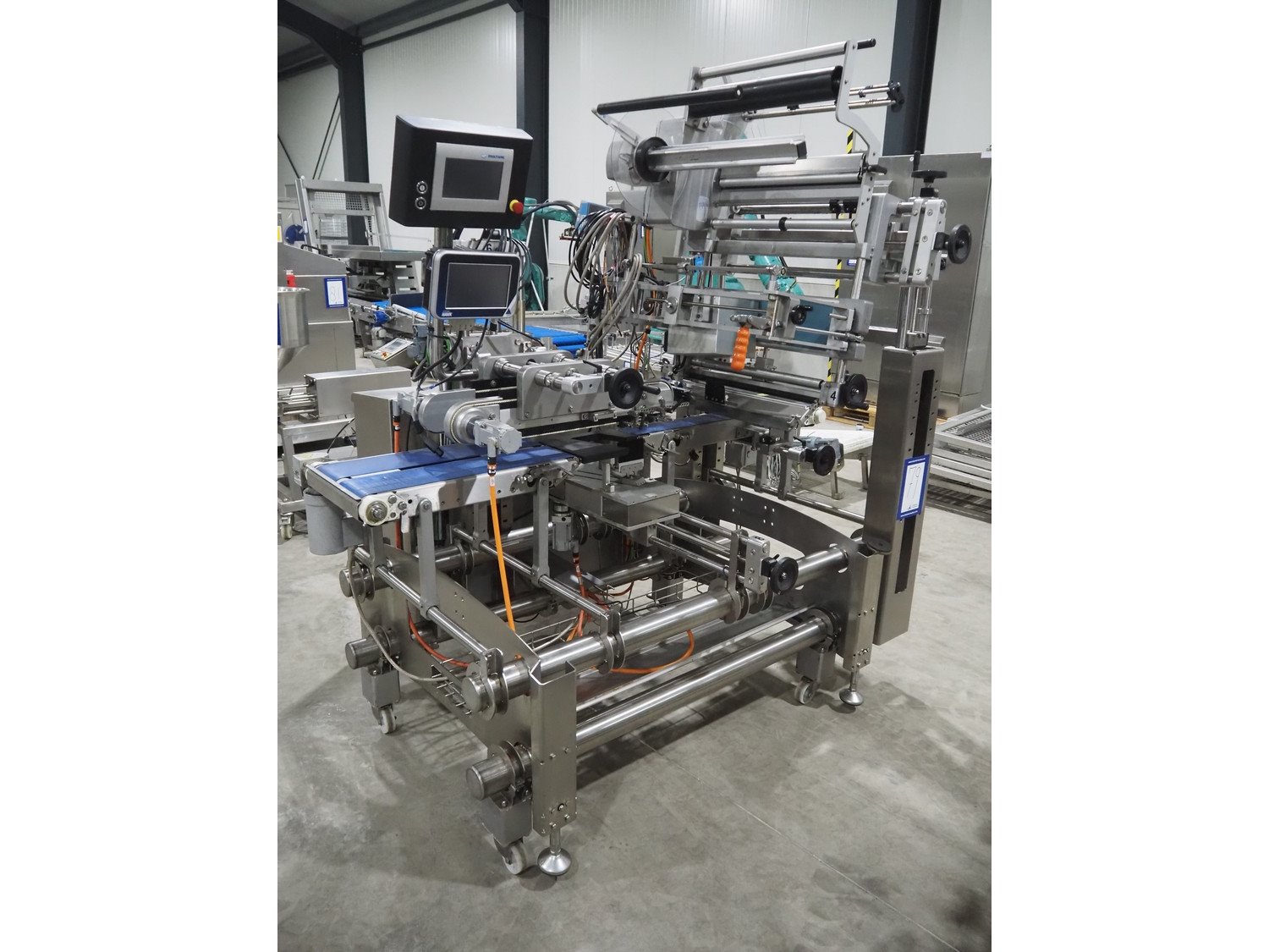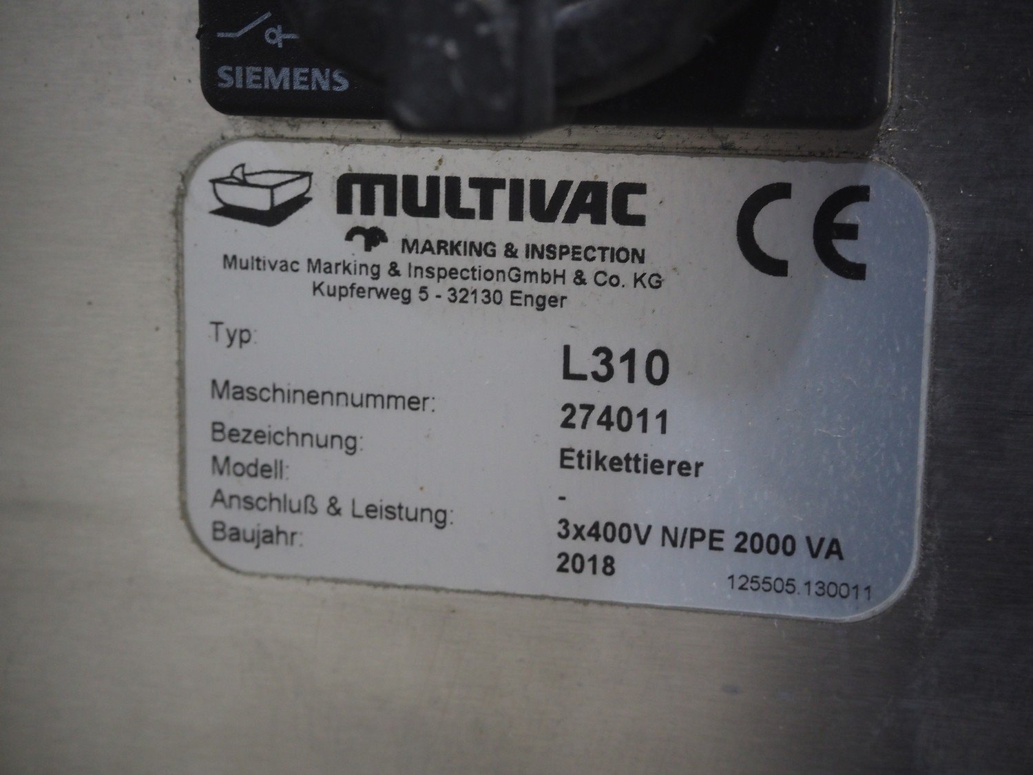 Multivac labeller, type: L310, machine number: 274011, year of construction: 2018, 400 V, 3 Ph, 2000 VA, belt width: (2x) 135 mm, 90 mm, total dimensions: 1800 mm x 1500 mm x 1980 mm.