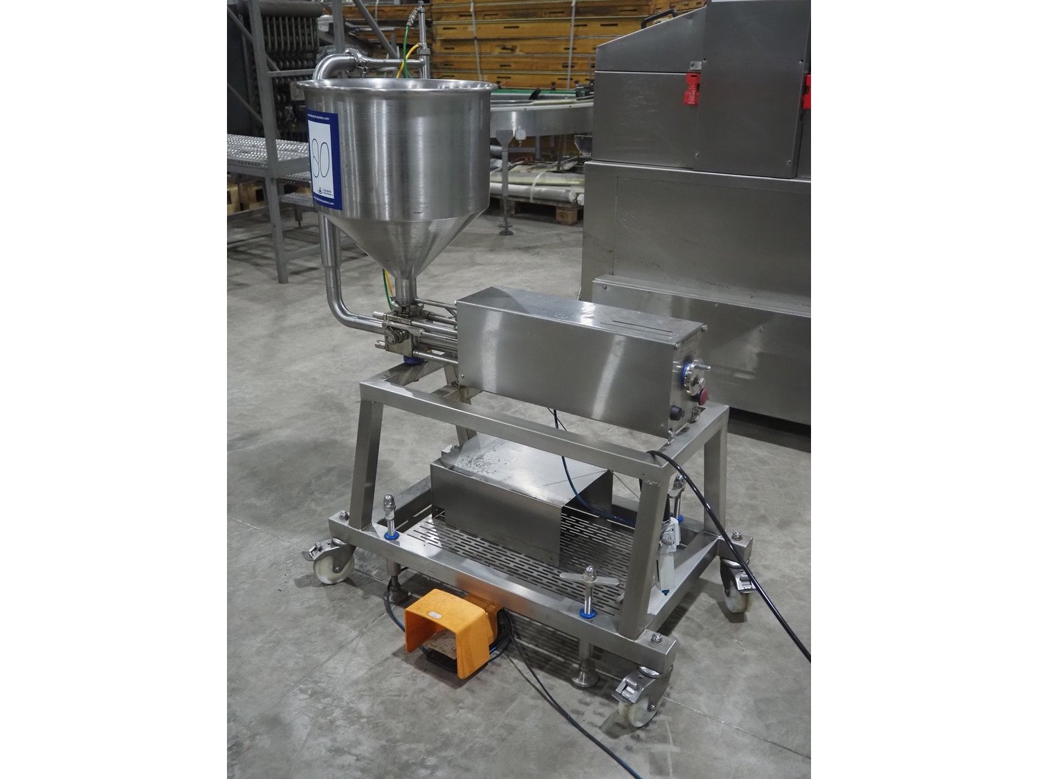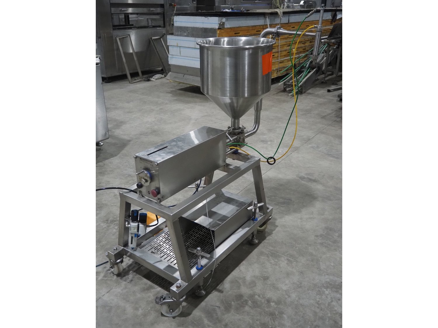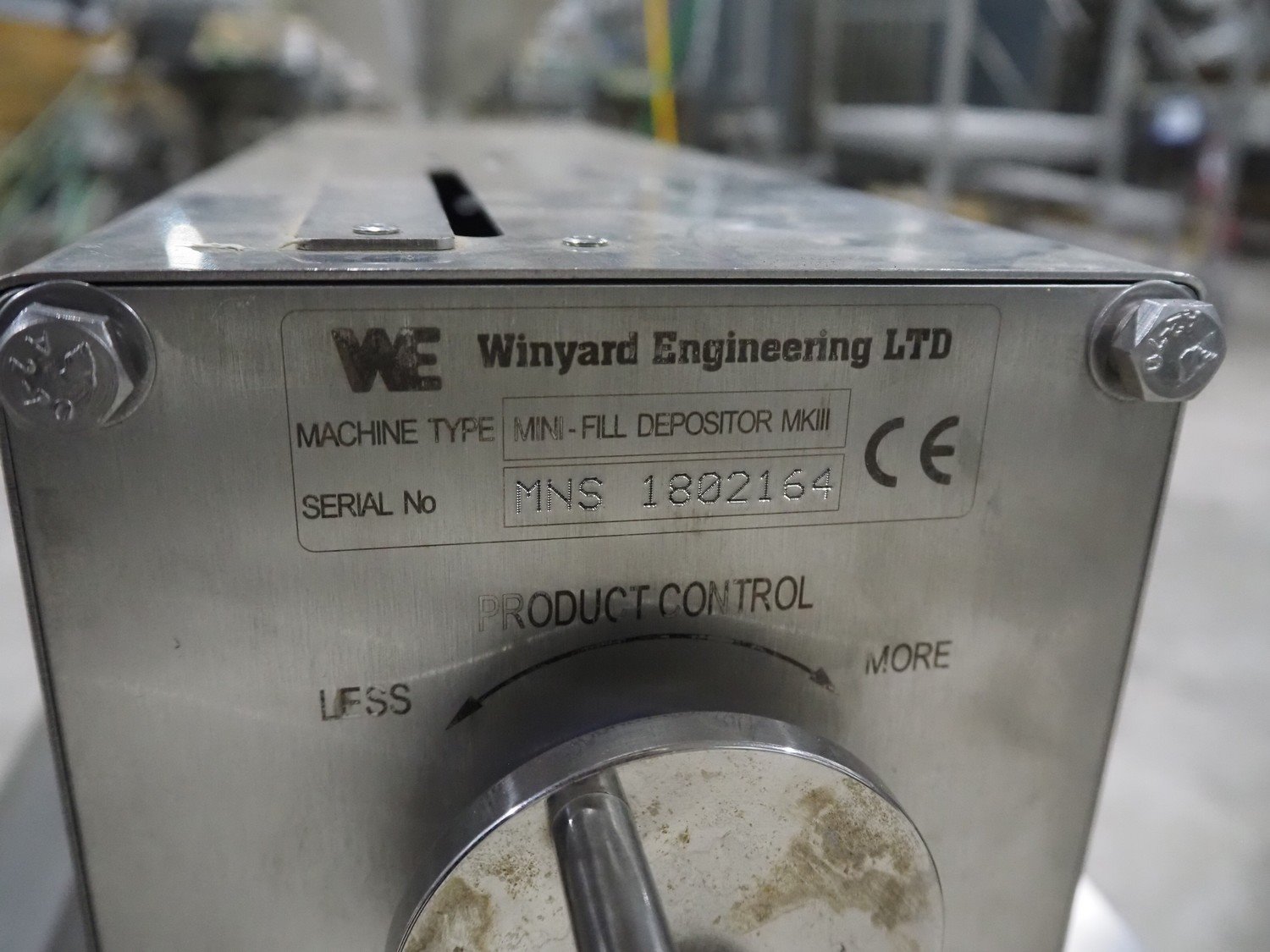 Winyard Engineering LTD mobile 1-head depositor, machine type: Mini-Fill Depositor MKII, serial number: MNS 1802164, dimensions: 1200 mm x 500 mm x 1380 mm.