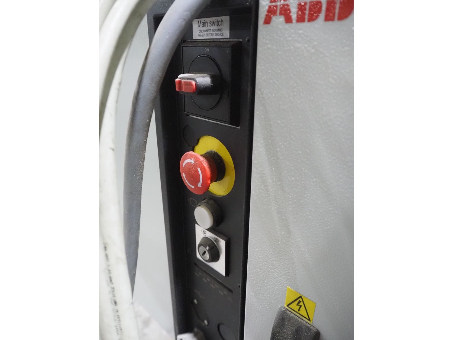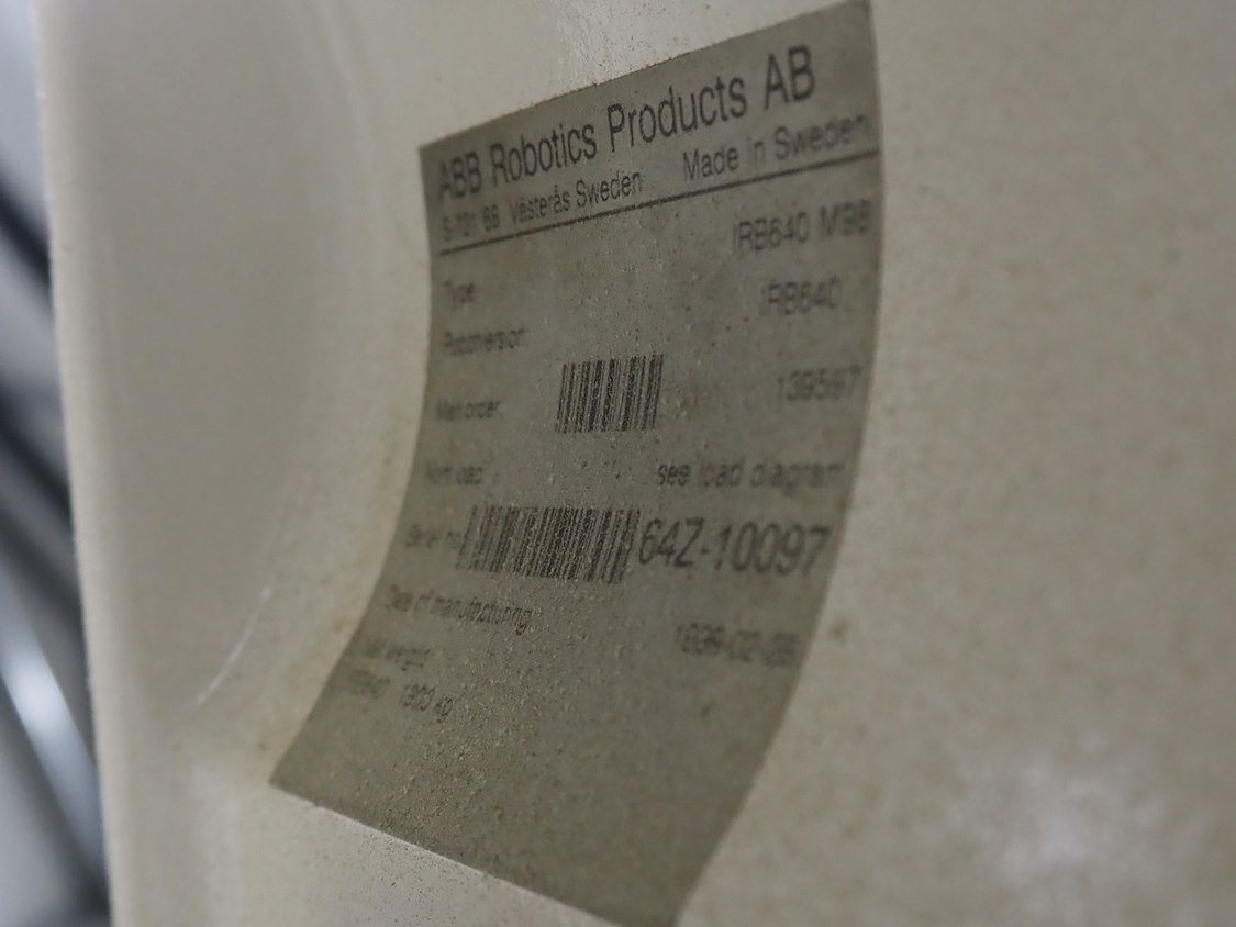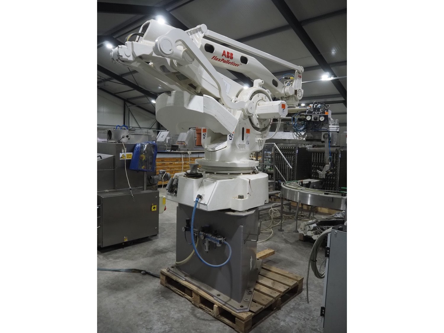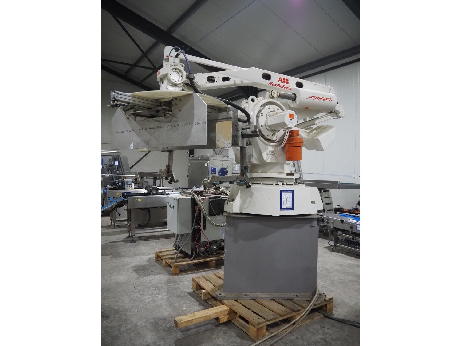 ABB flexpalletizer with control unit, type: IRB640 M98, weight: 1900 kg, dimensions control unit: 950 mm x 700 mm x 970 mm, total dimensions robot: 2850 mm x 1350 mm x 2400 mm.