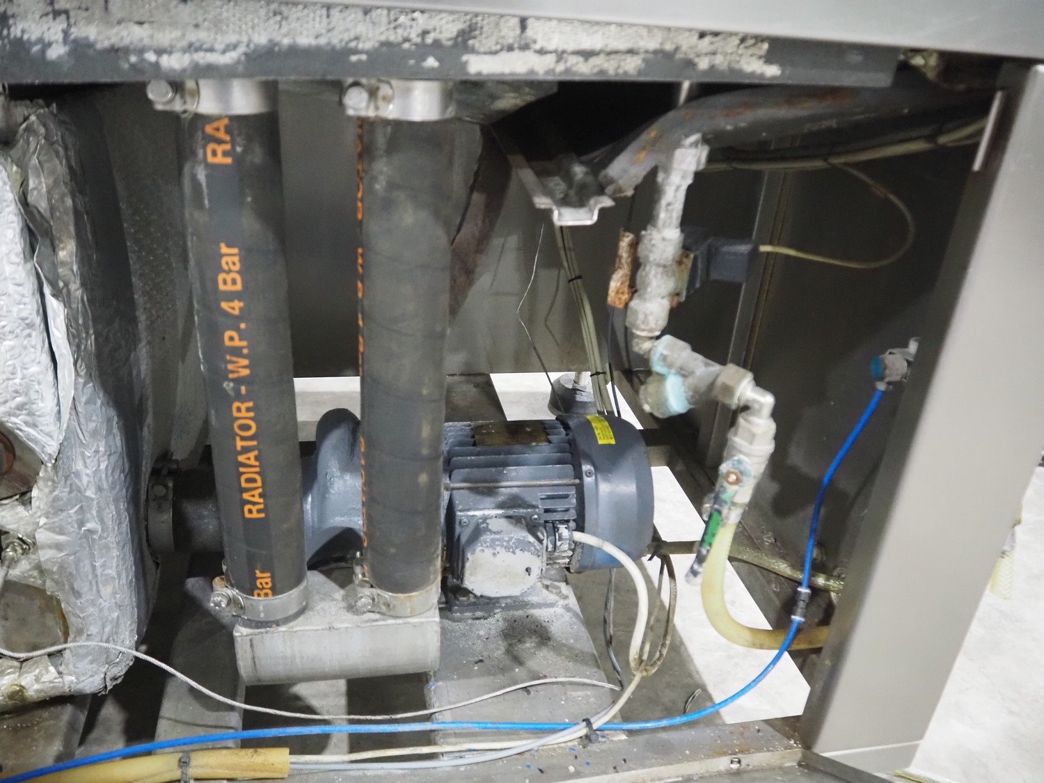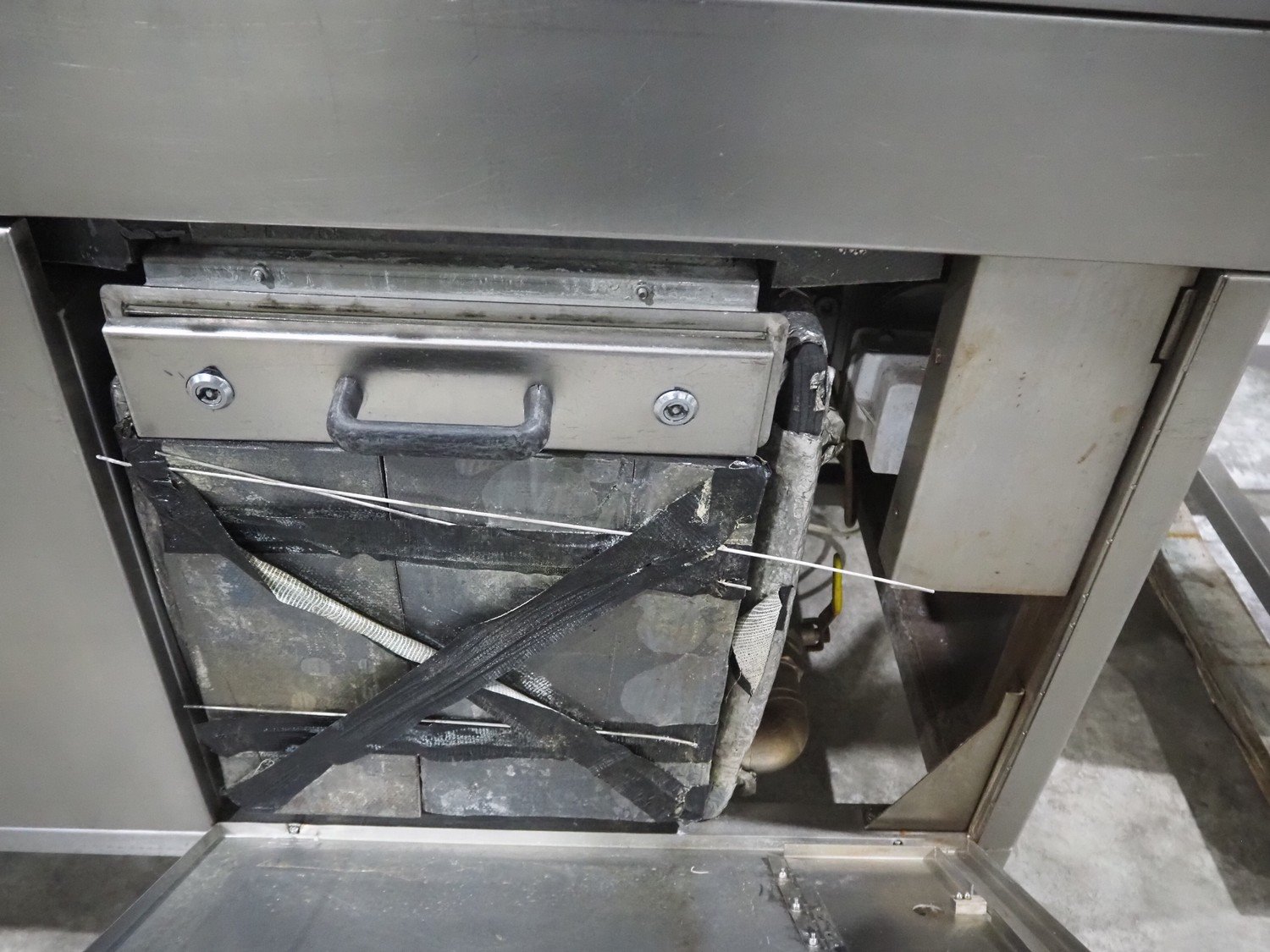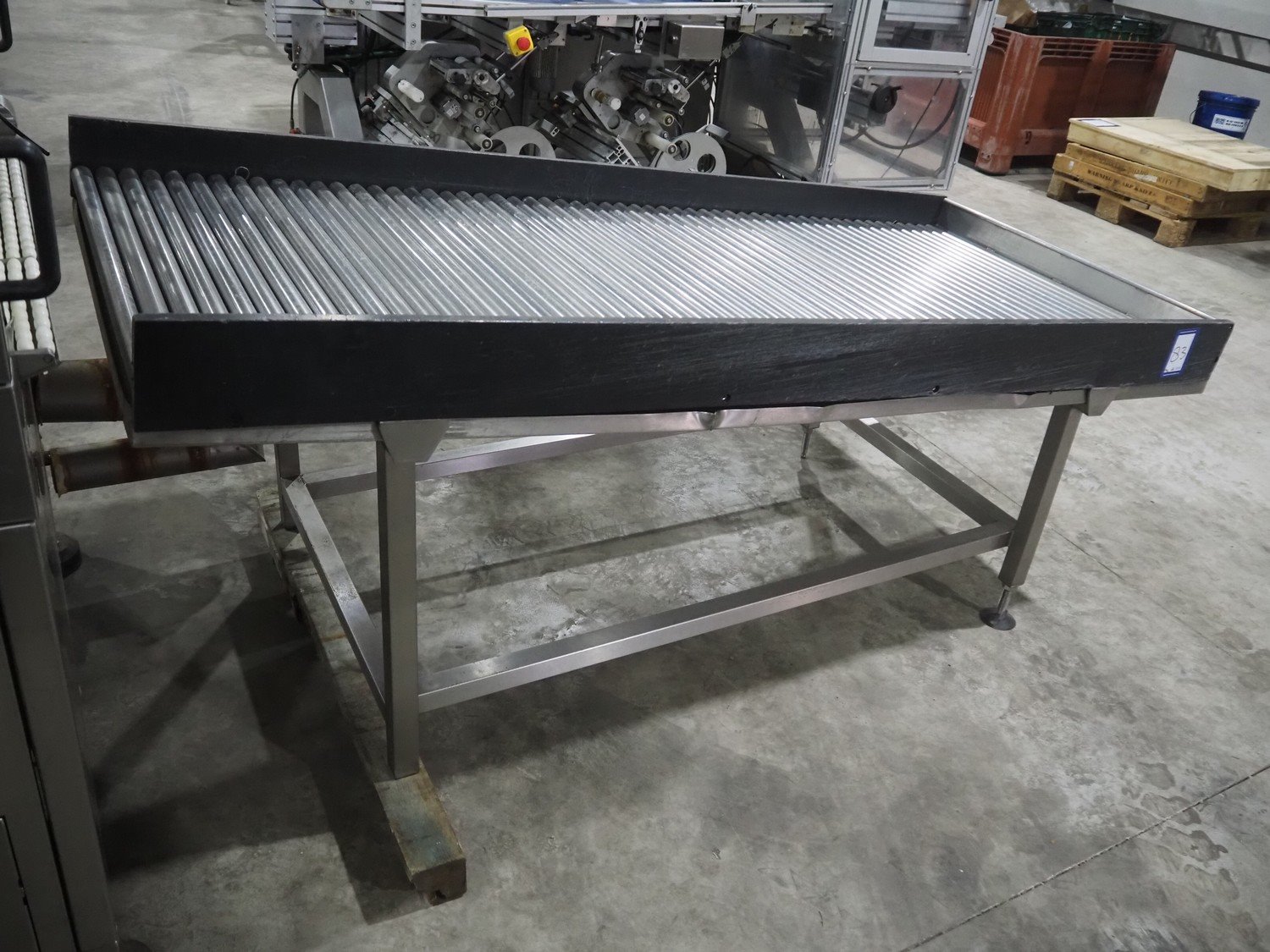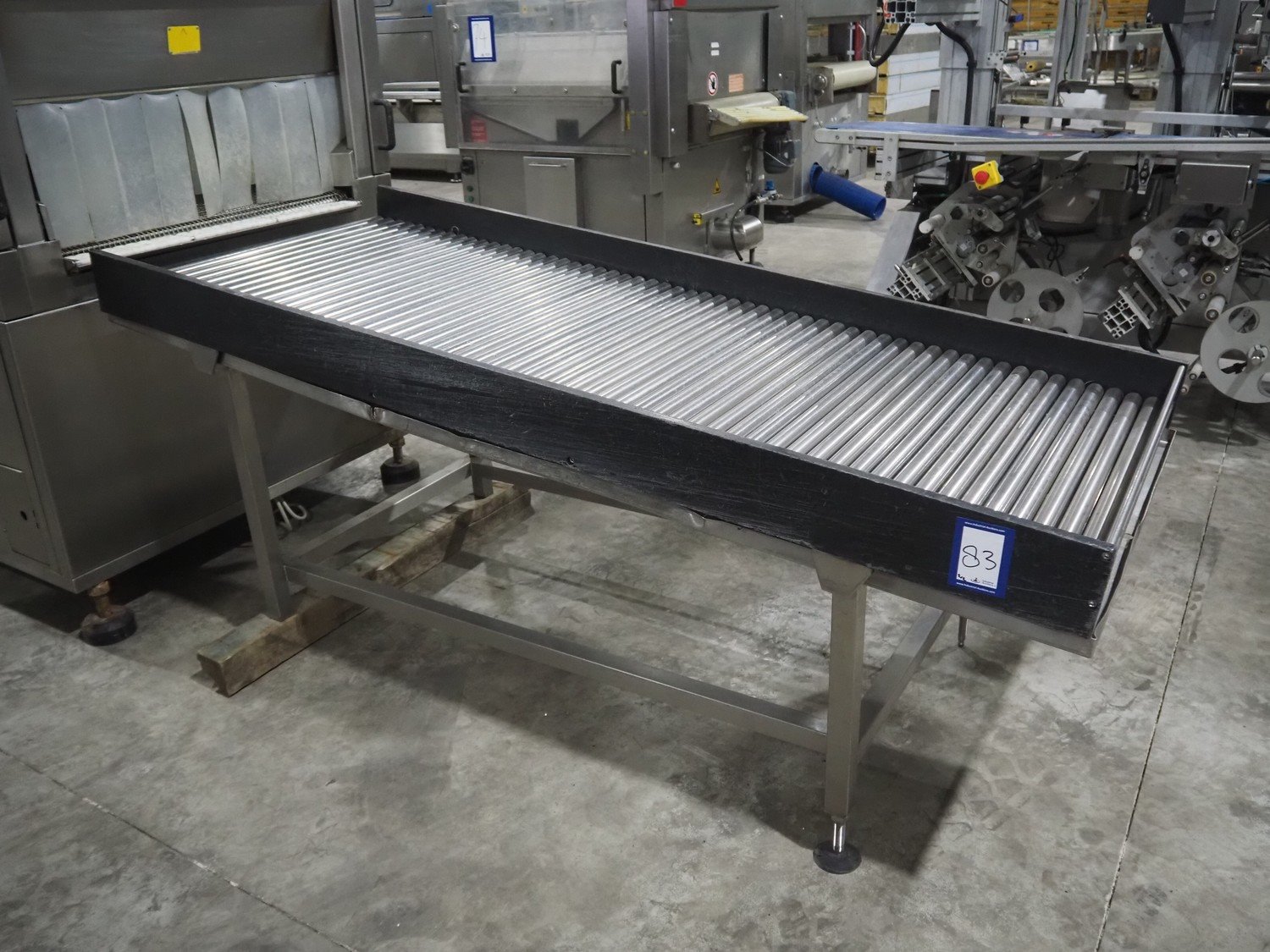 Cryovac shrink tunnel, model number: ST98-800 STEAM, serial number: A56122511, year of construction: 2005, belt width: 870 mm, clearance: 800 mm x 300 mm, total dimensions: 1500 mm x 1200 mm x 1900 mm. Including outfeed roller conveyor, s/s rollers, roller width: 800 mm, total dimensions roller conveyor: 2000 mm x 850 mm x 940 mm.