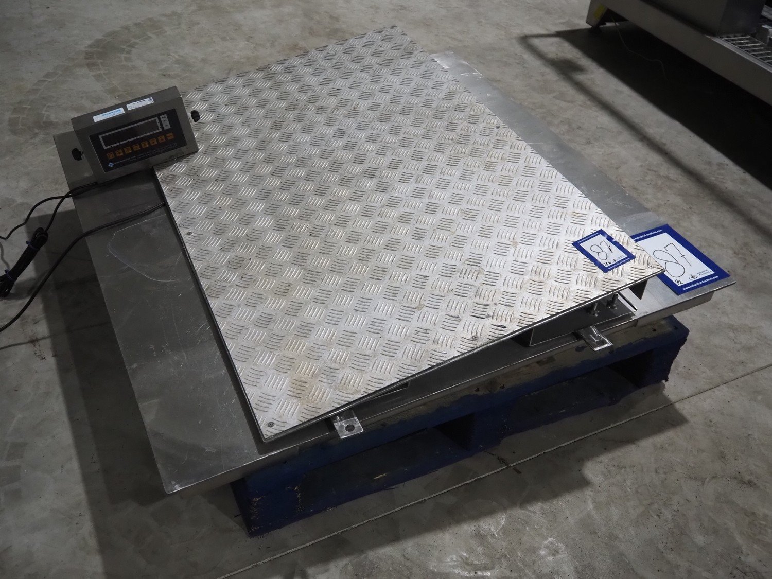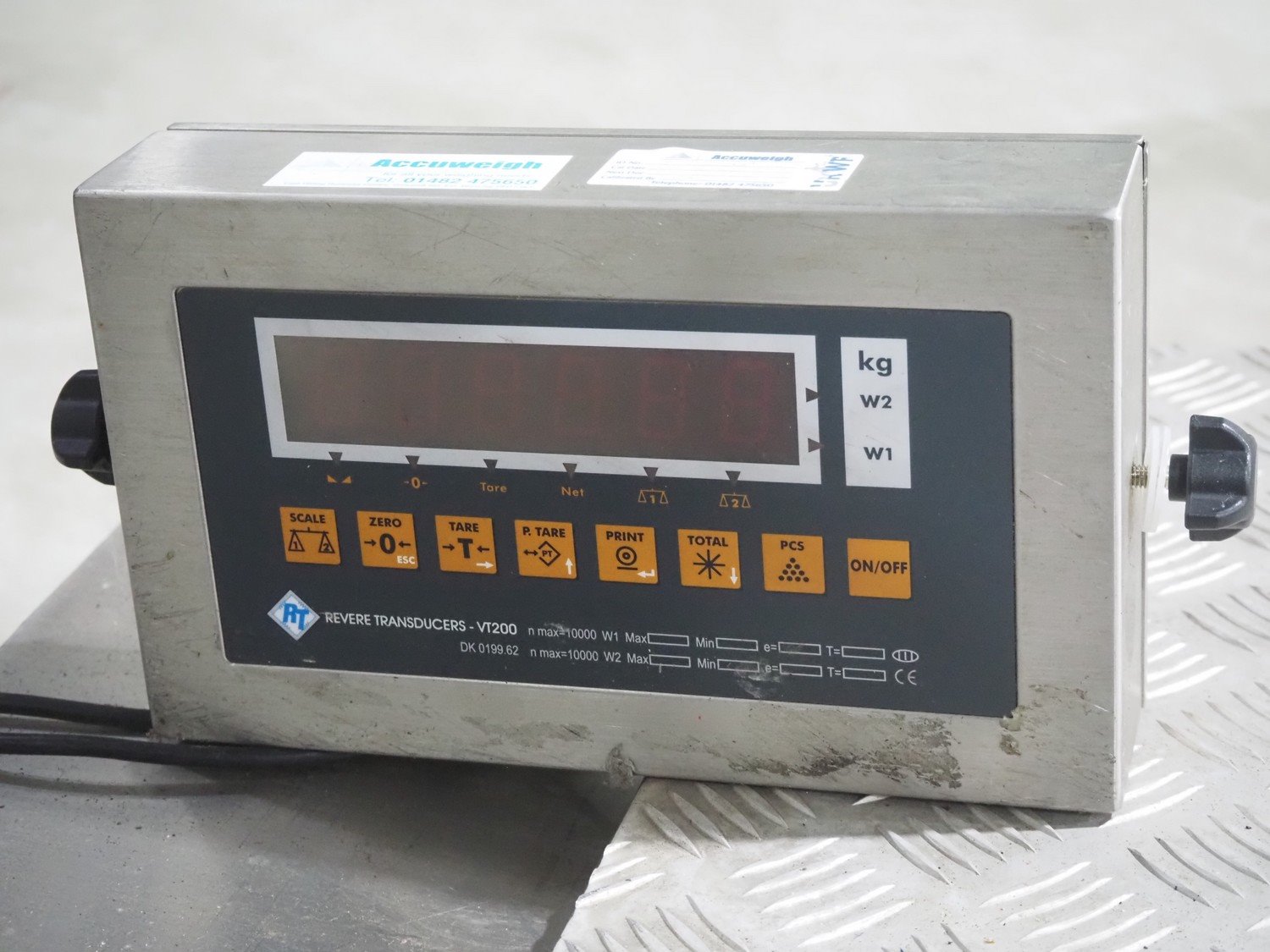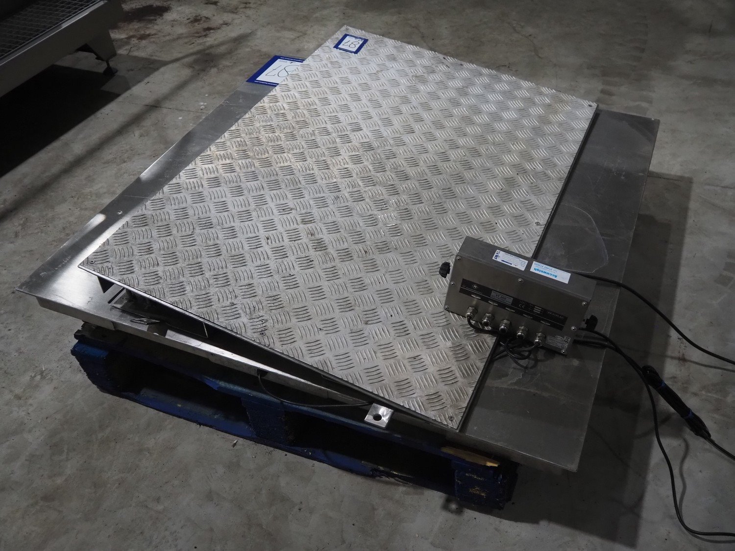 S/s floor weighing scale with Reverse Transducers indicator, model: VT200, dimensions scale: 1200 mm x 1200 mm x 150 mm. Including aluminium ramp.