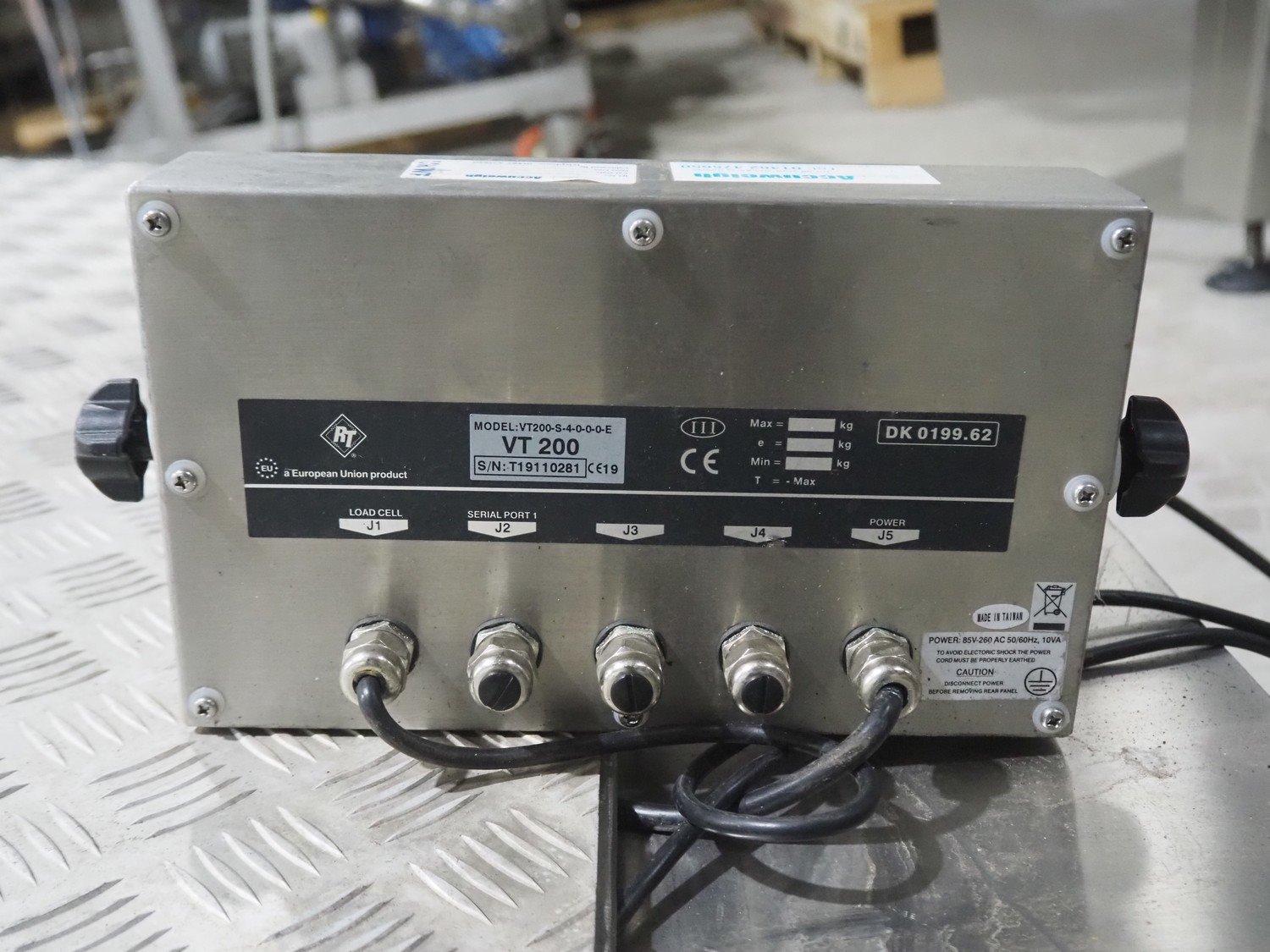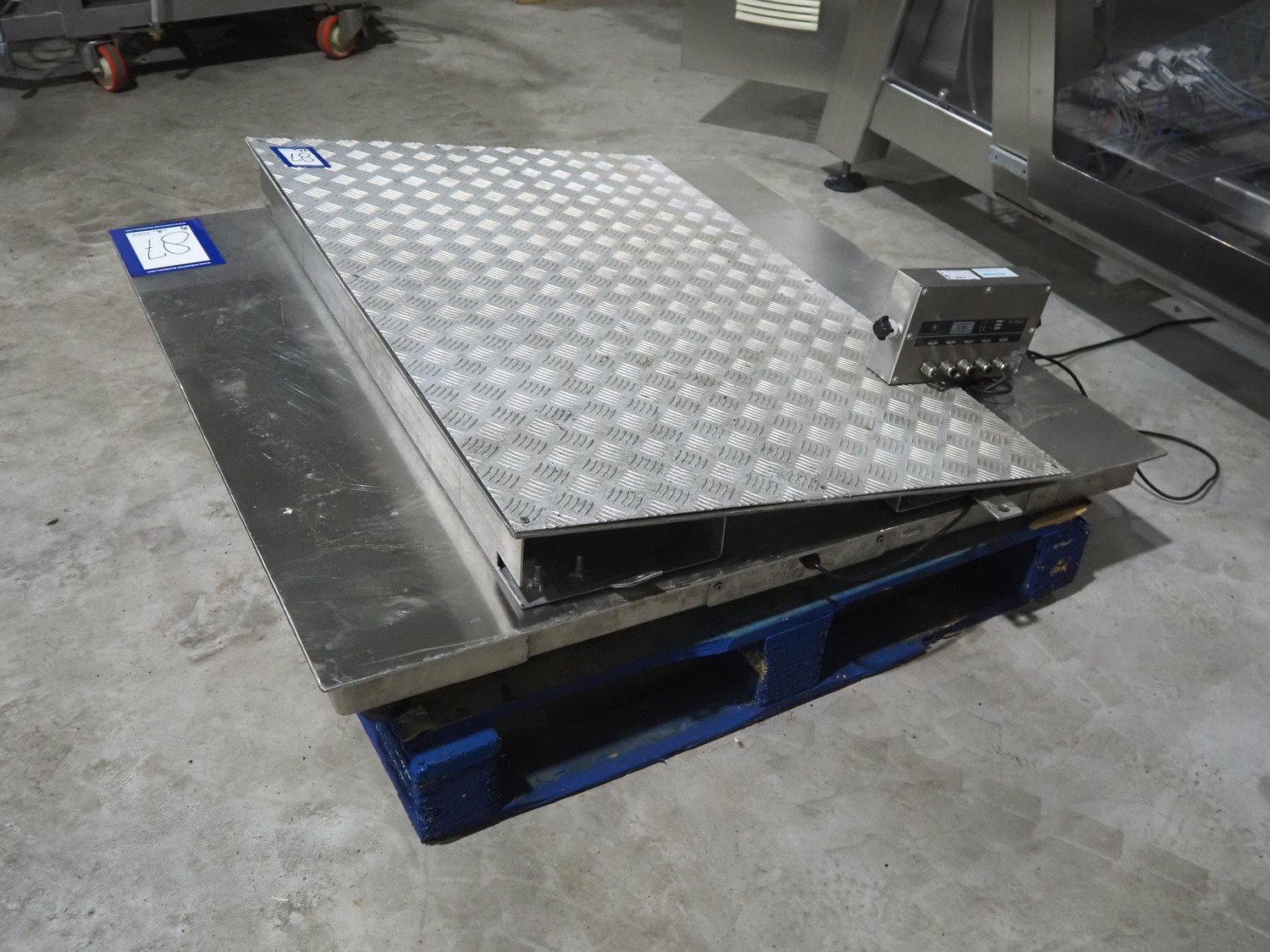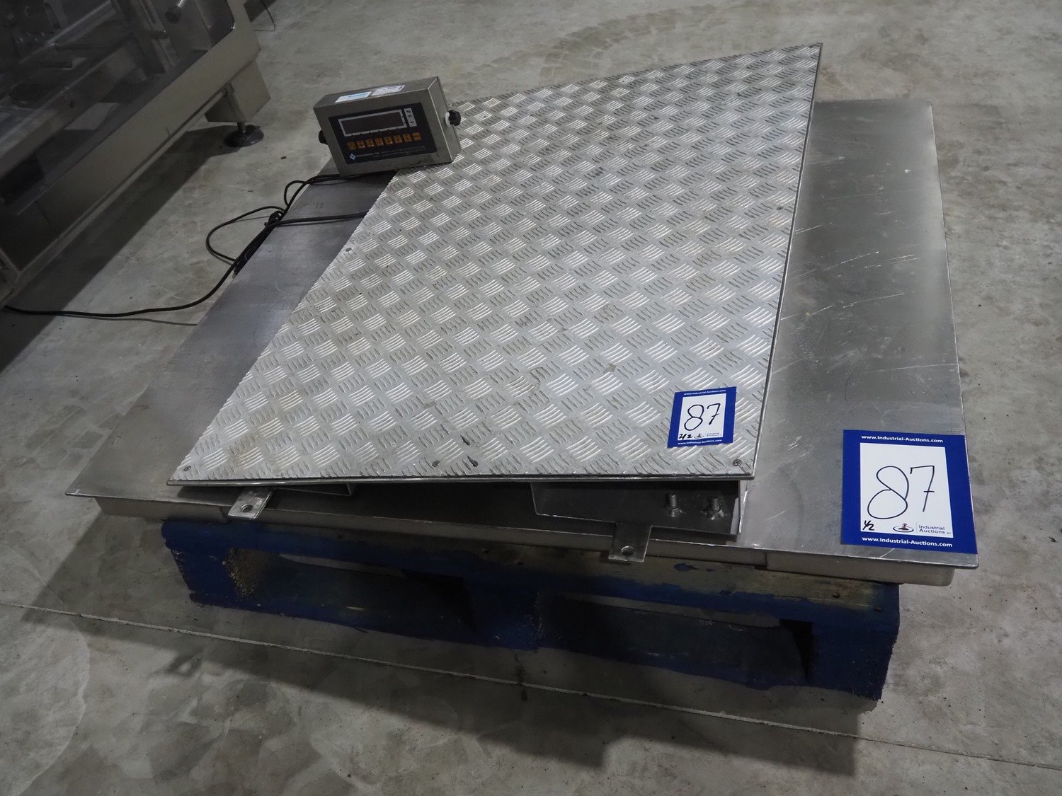 S/s floor weighing scale with Reverse Transducers indicator, model: VT200, dimensions scale: 1200 mm x 1200 mm x 150 mm. Including aluminium ramp.