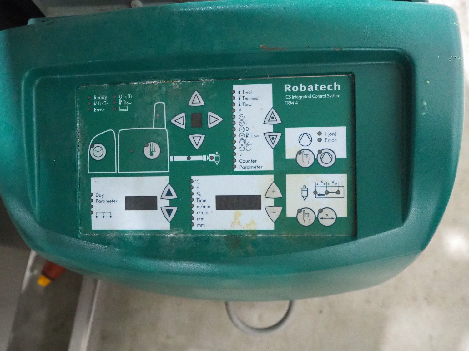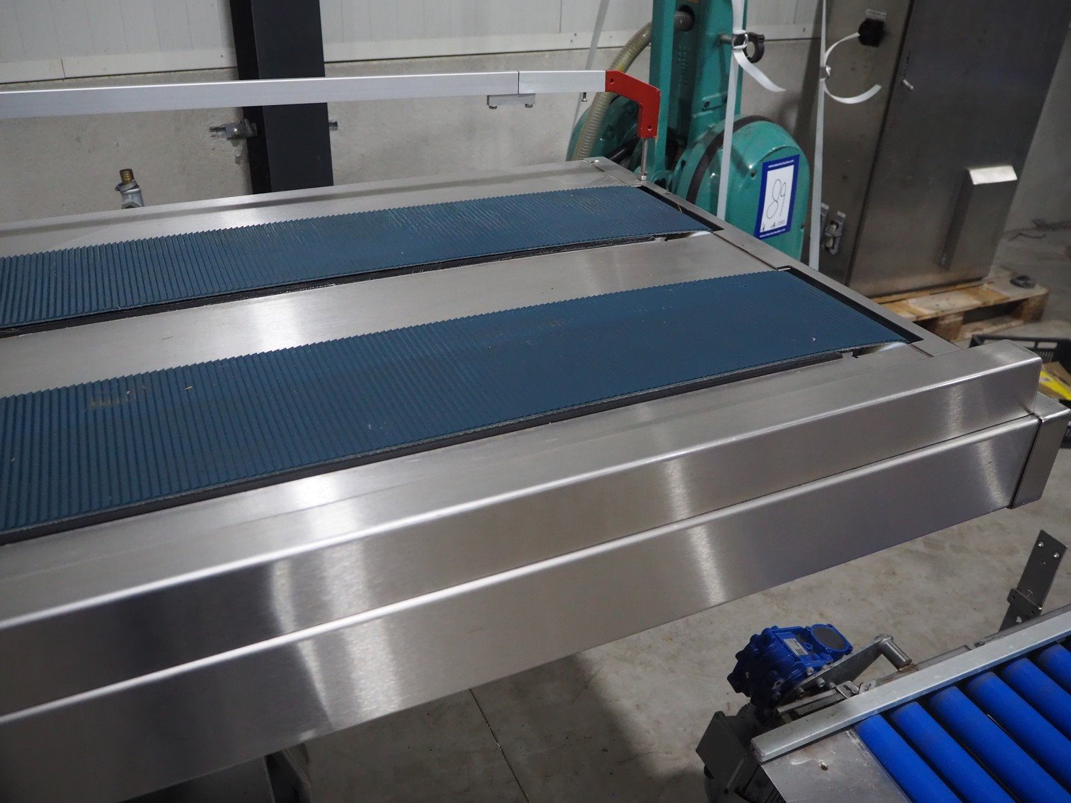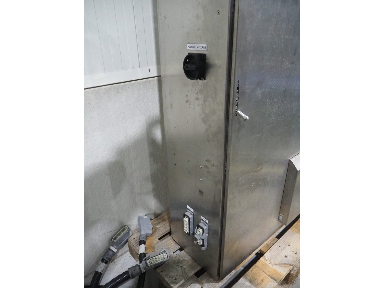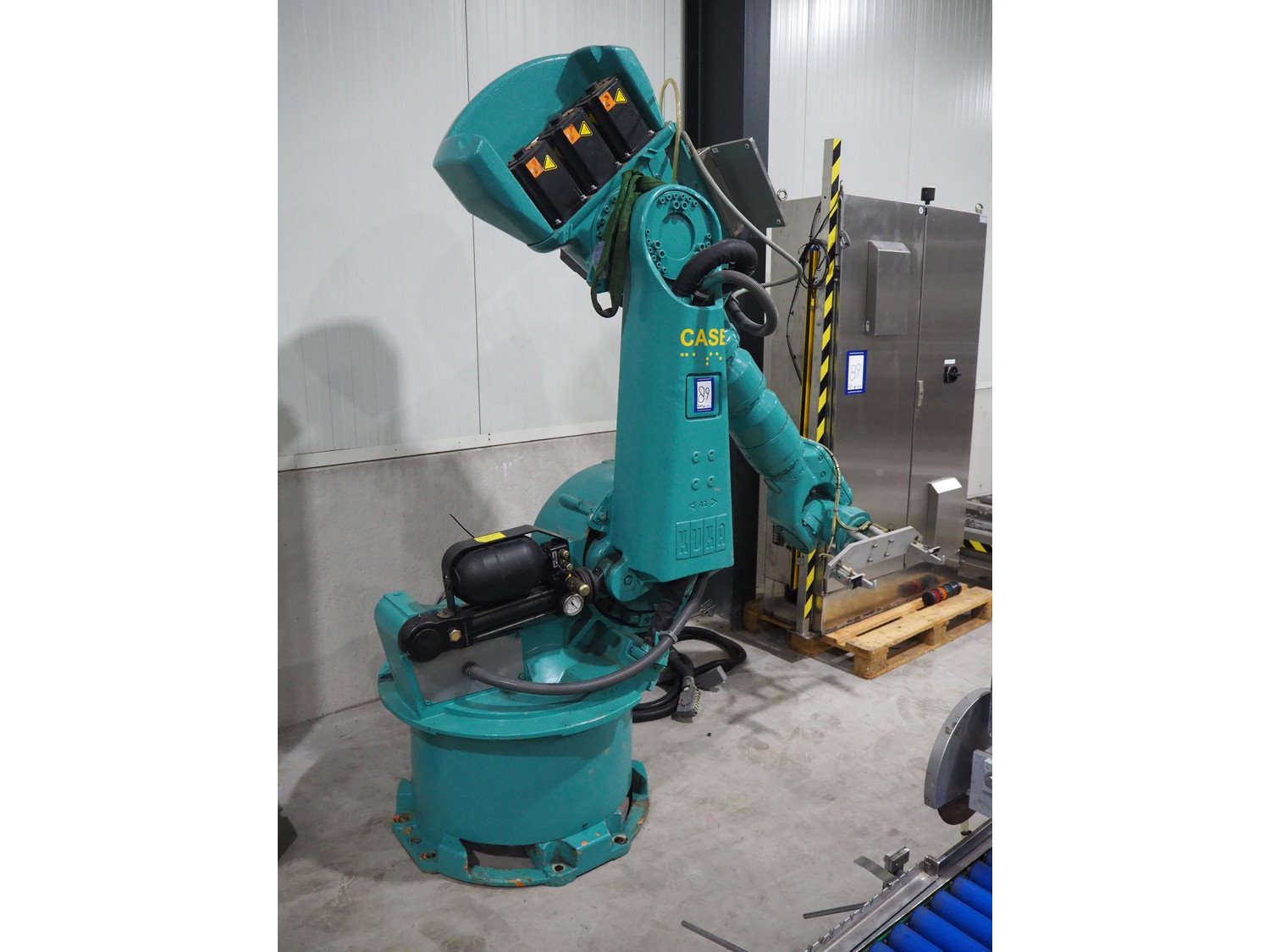 Kuka packaging robot, consisting of: Kuka robot, number: 991134623, 1600 mm x 800 mm x 1800 mm, ABB Robotics robot, dimensions: 2200 mm x 1100 mm x 2550 mm, 2 pallets with switch cabinets, dimensions: 1200 mm x 800 mm x 2250 mm, 1200 mm x 800 mm x 1950 mm, Busch pump, model: Mink MM 1144 BV, dimensions: 1200 mm x 800 mm x 650 mm, infeed conveyor, clearance: 285 mm, plastic belt, belt width: (2x) 200 mm, dimensions: 2850 mm x 1200 mm x 2100 mm, infeed belt, plastic mesh belt, belt width: 530 mm, total dimensions: 1650 mm x 1170 mm x 650 mm, roller conveyor, plastic rollers, roller width: 490 mm, total dimensions: 4150 mm x 1100 mm x 1000 mm, transport belt, coat belt, belt width: 545 mm, total dimensions: 1200 mm x 1150 mm x 1000 mm, pallet with racks, dimensions: 2300 mm x 1800 mm x 600 mm. Technical condition unknown.