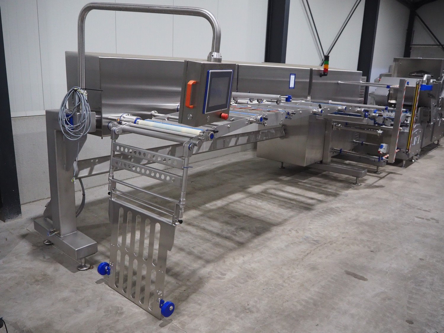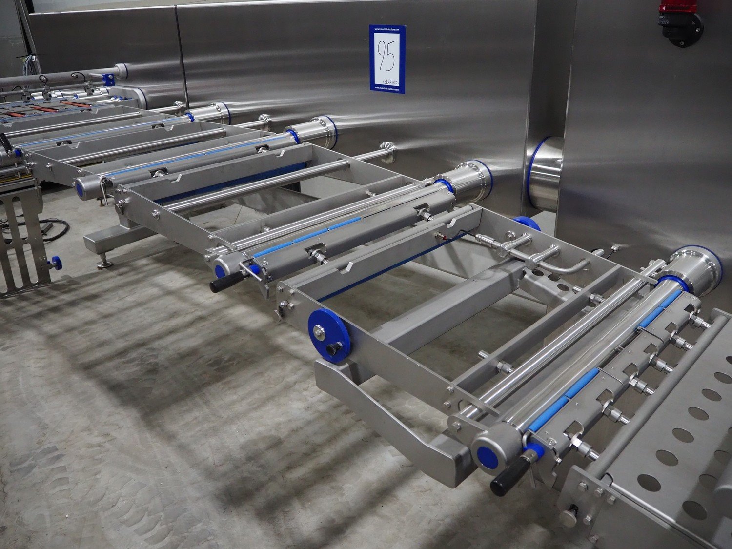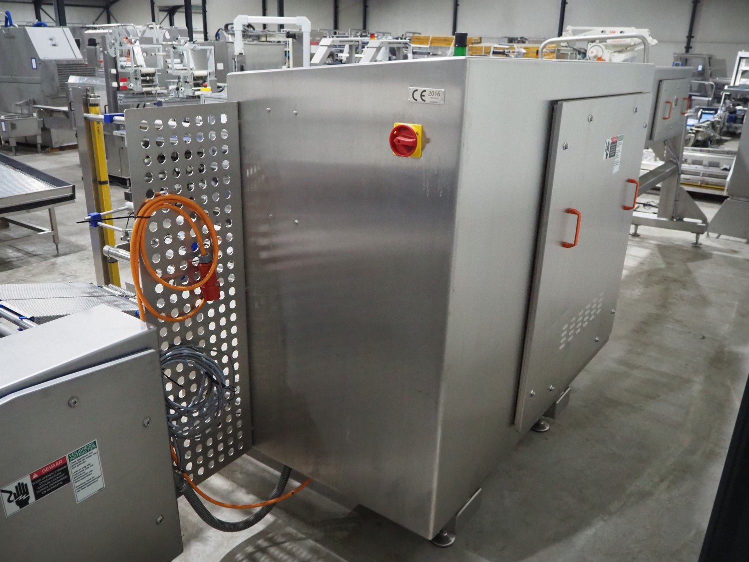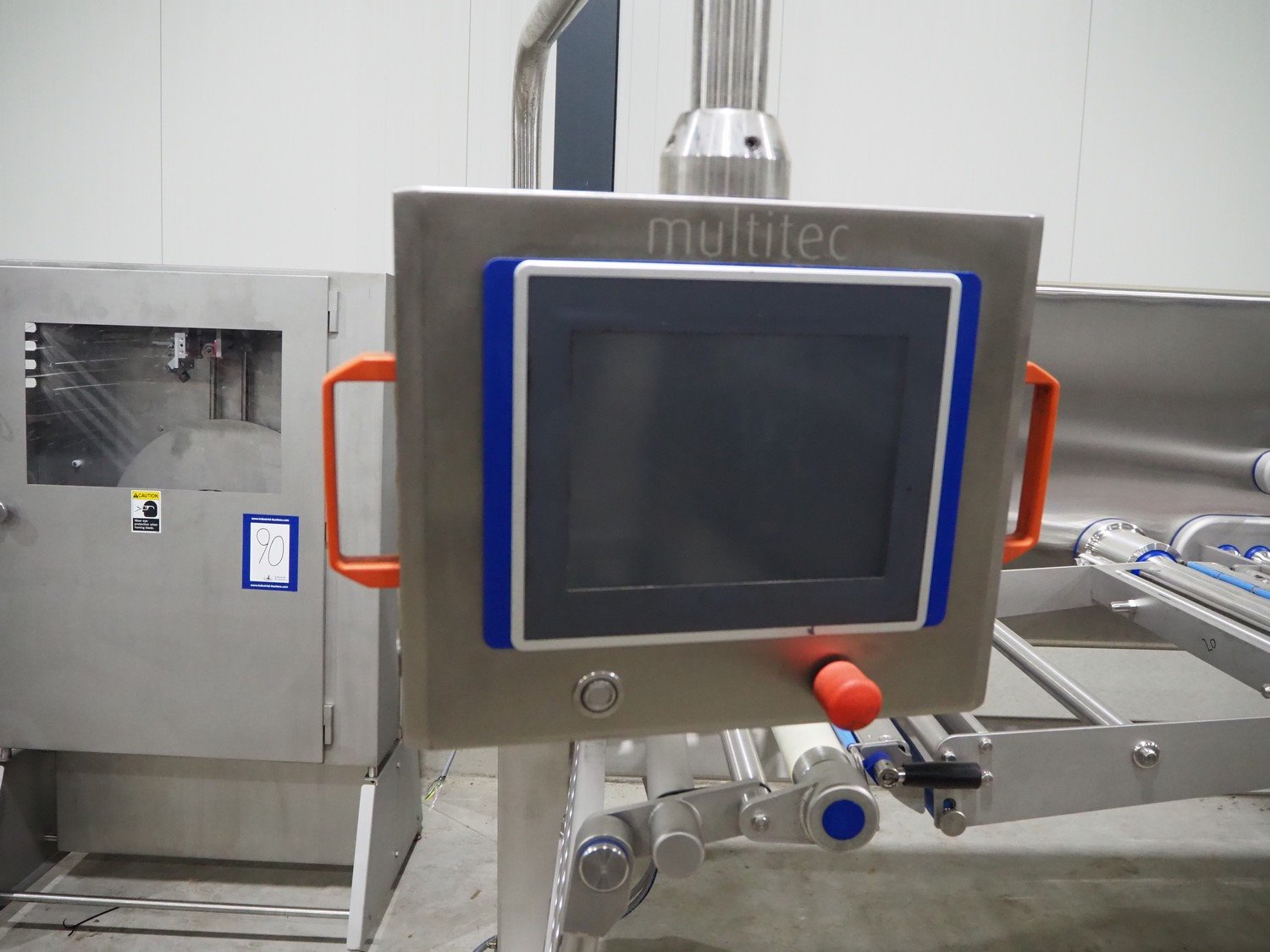 Multitec outfeed belt, year of construction: 2016, belt width: 620 mm, total dimensions: 6100 mm x 2000 mm x 2080 mm. Missing belt.