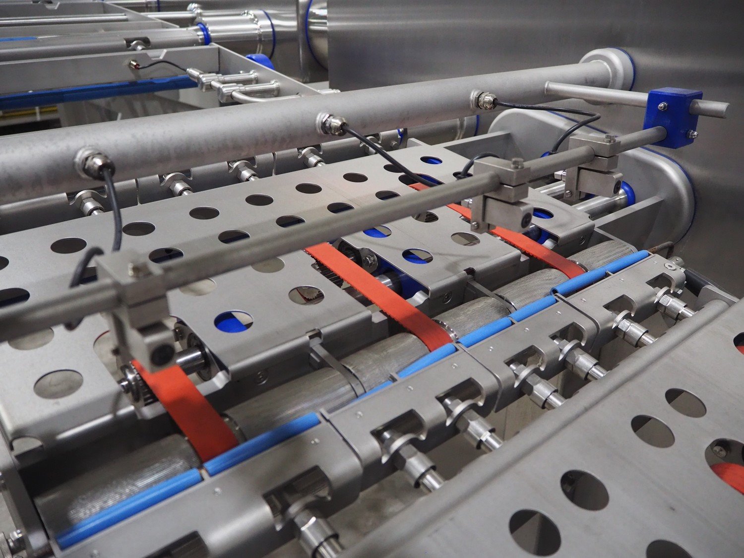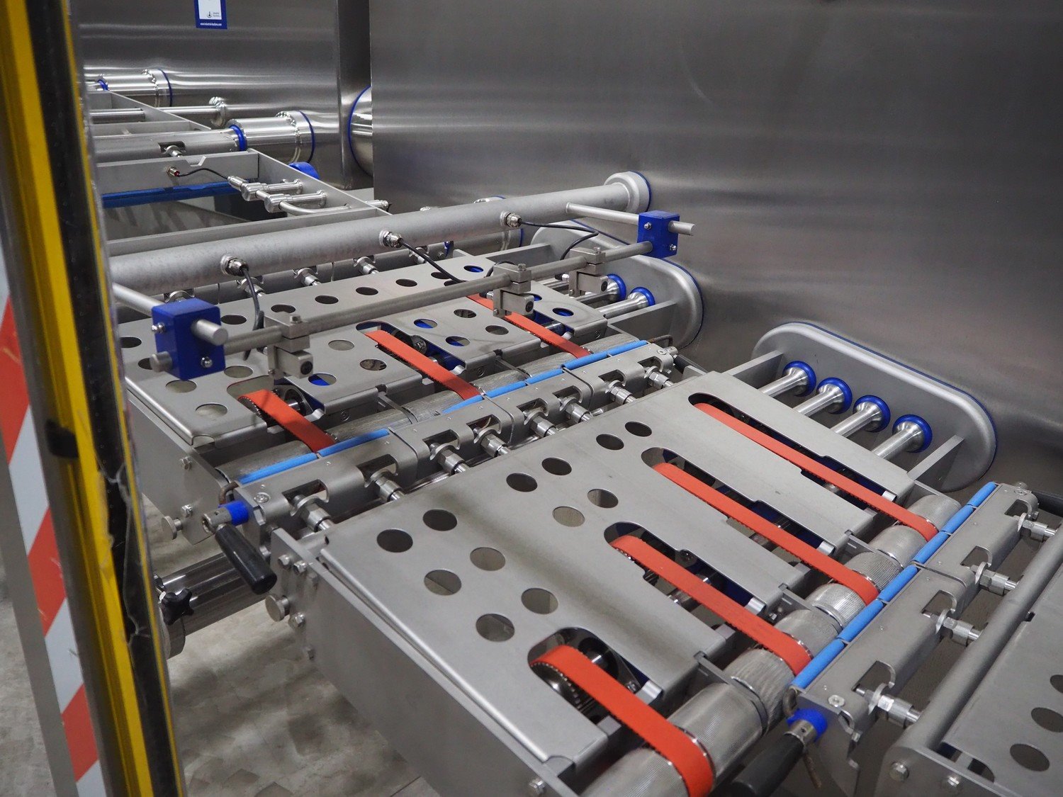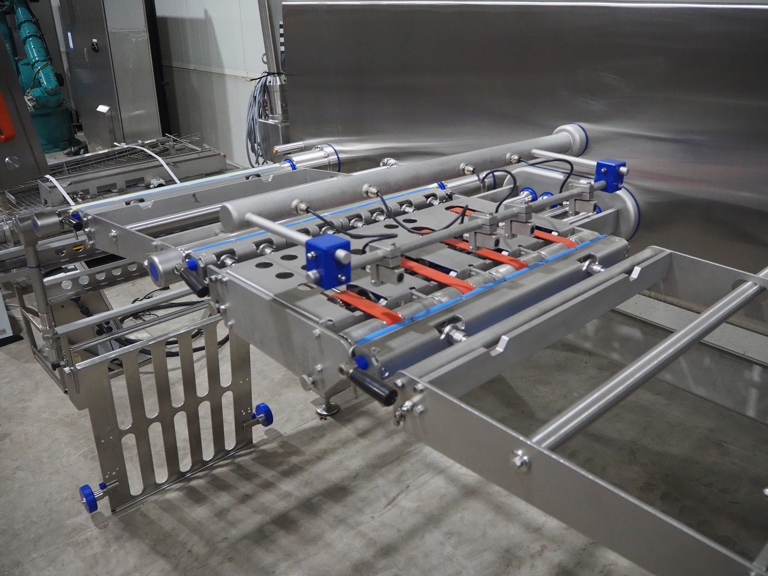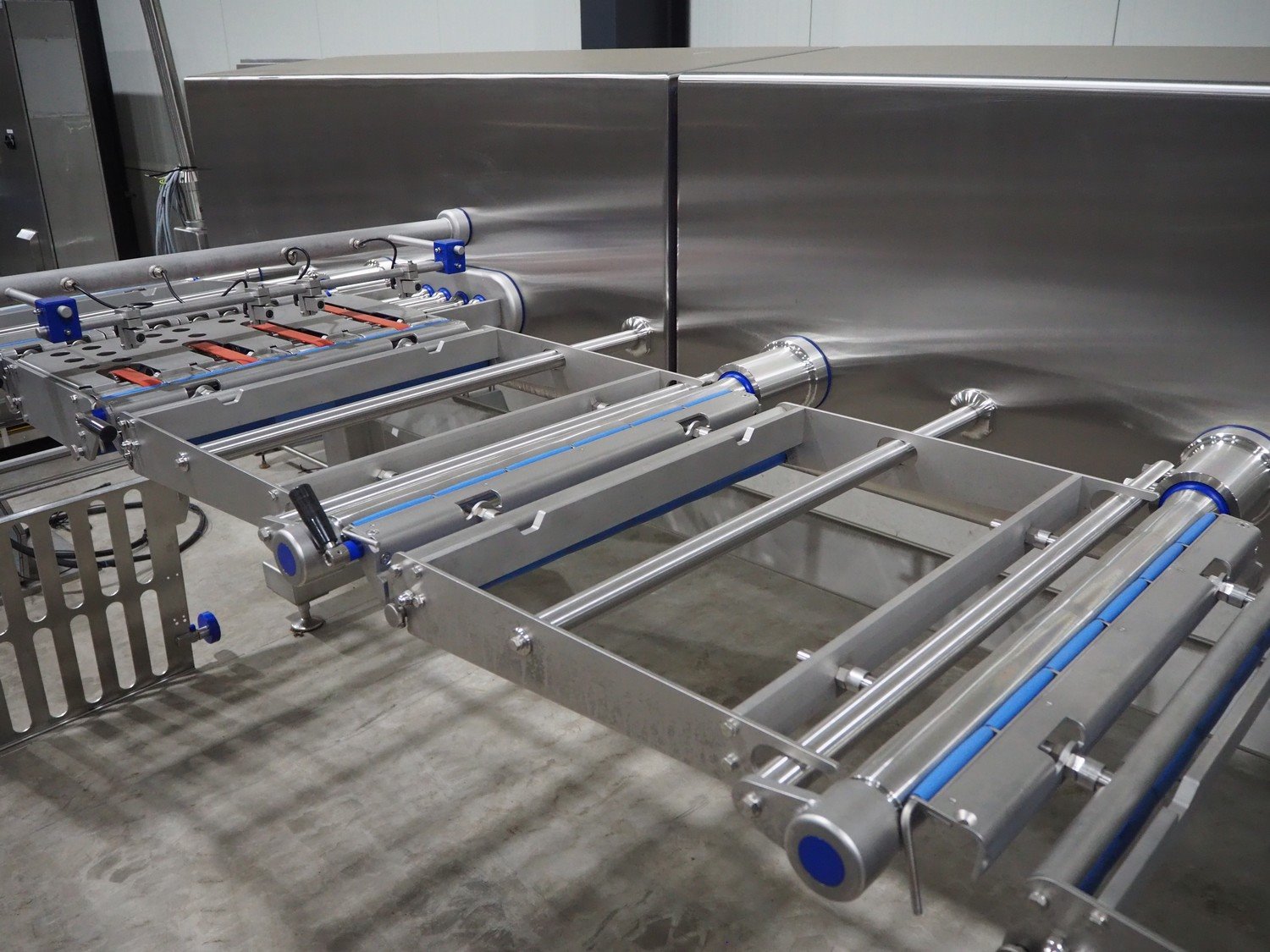 Multitec outfeed belt, year of construction: 2016, belt width: 620 mm, total dimensions: 6100 mm x 2000 mm x 2080 mm. Missing belt.