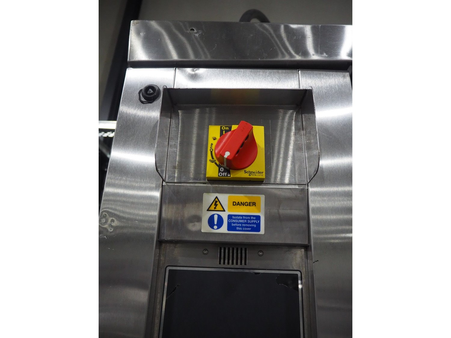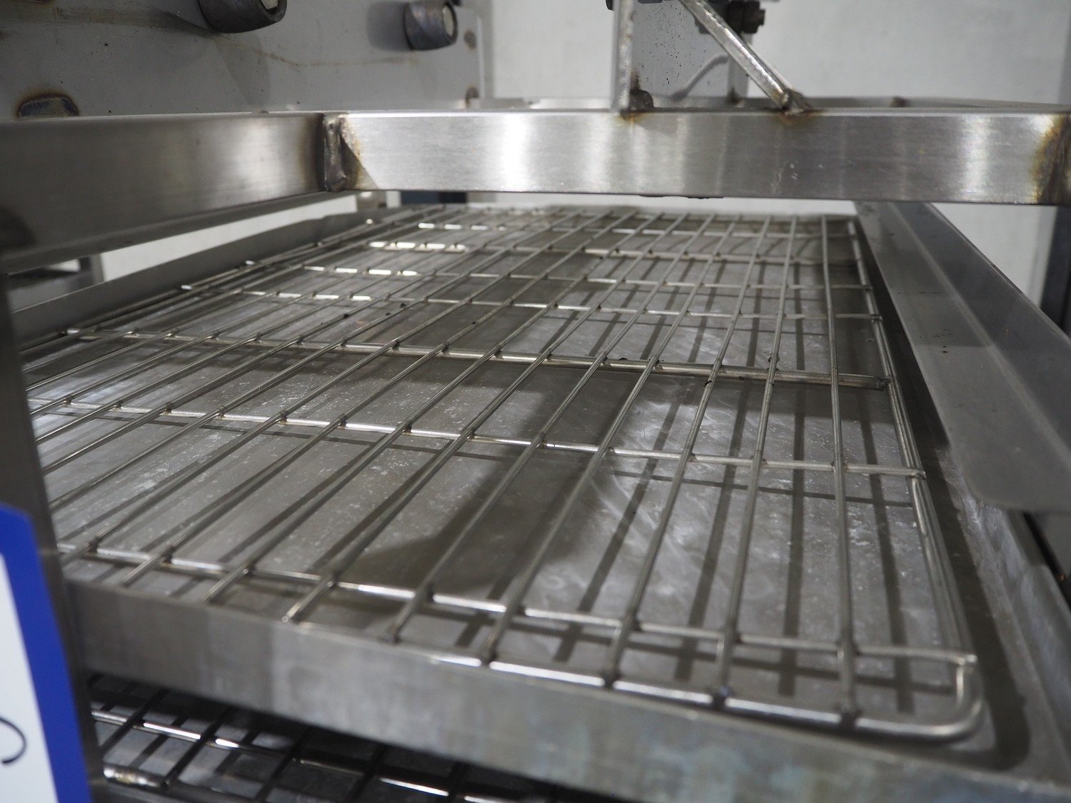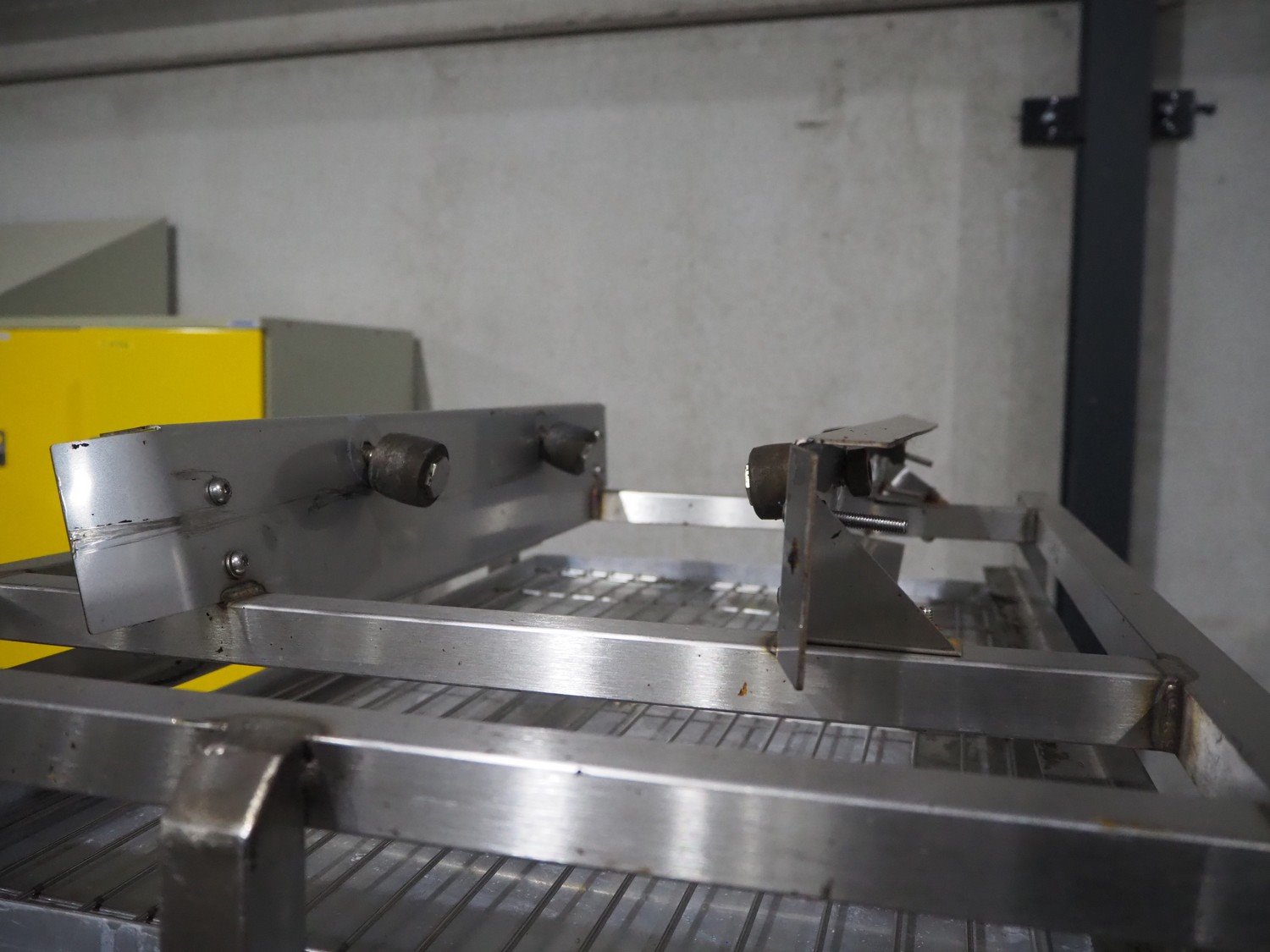 Mono rotary oven with 2 trolleys, inside dimensions: 950 mm x 950 mm x 1950 mm, total dimensions: 1500 mm x 1350 mm x 2600 mm. 2 s/s trolleys, 32 floors, floor dimensions: (32x) 760 mm x 460 mm, total dimensions: (2x) 770 mm x 530 mm x 1830 mm.