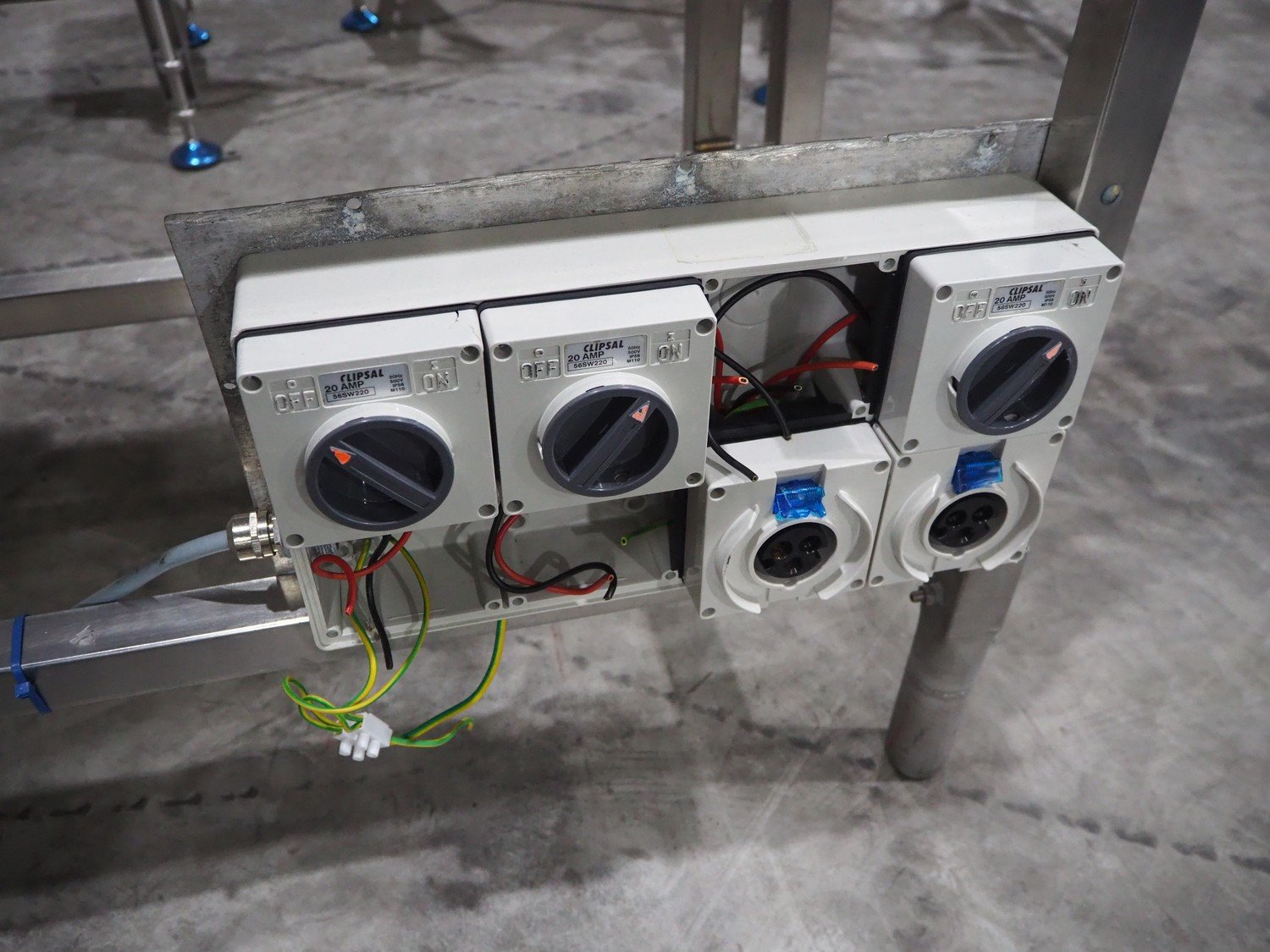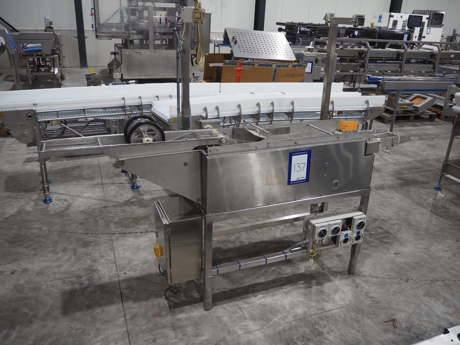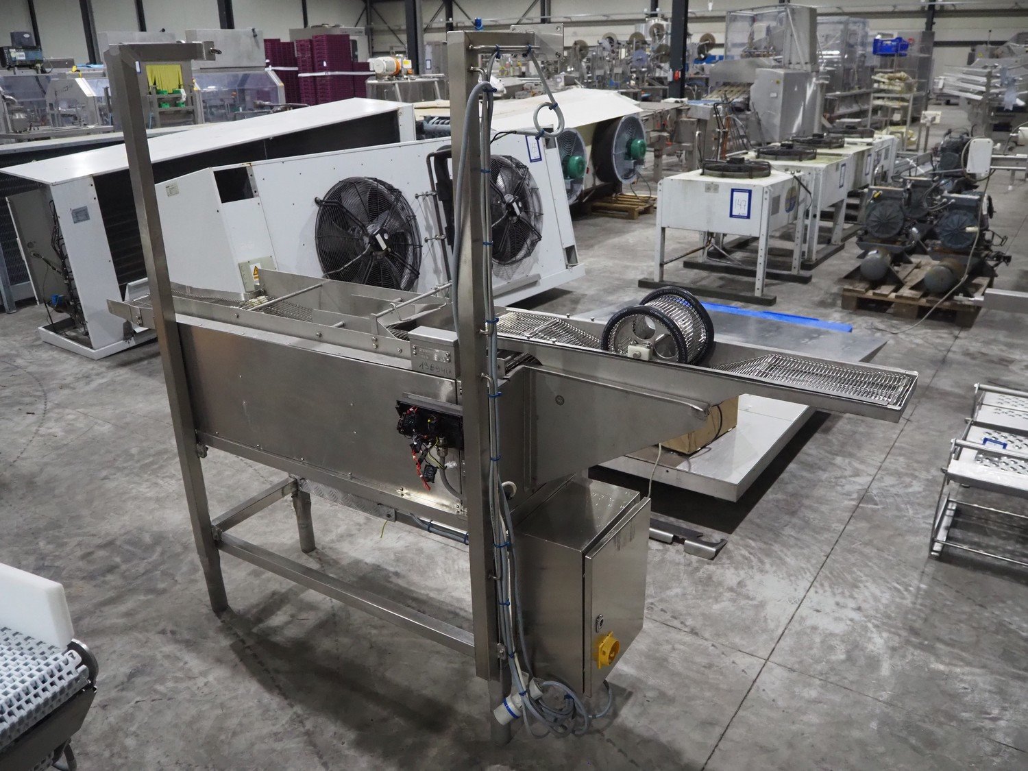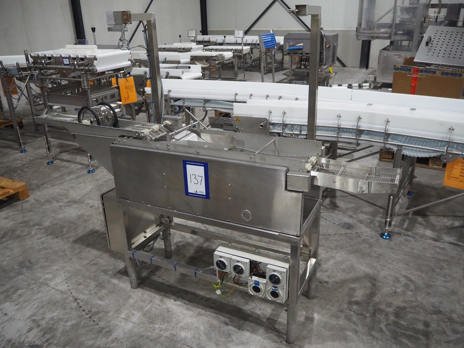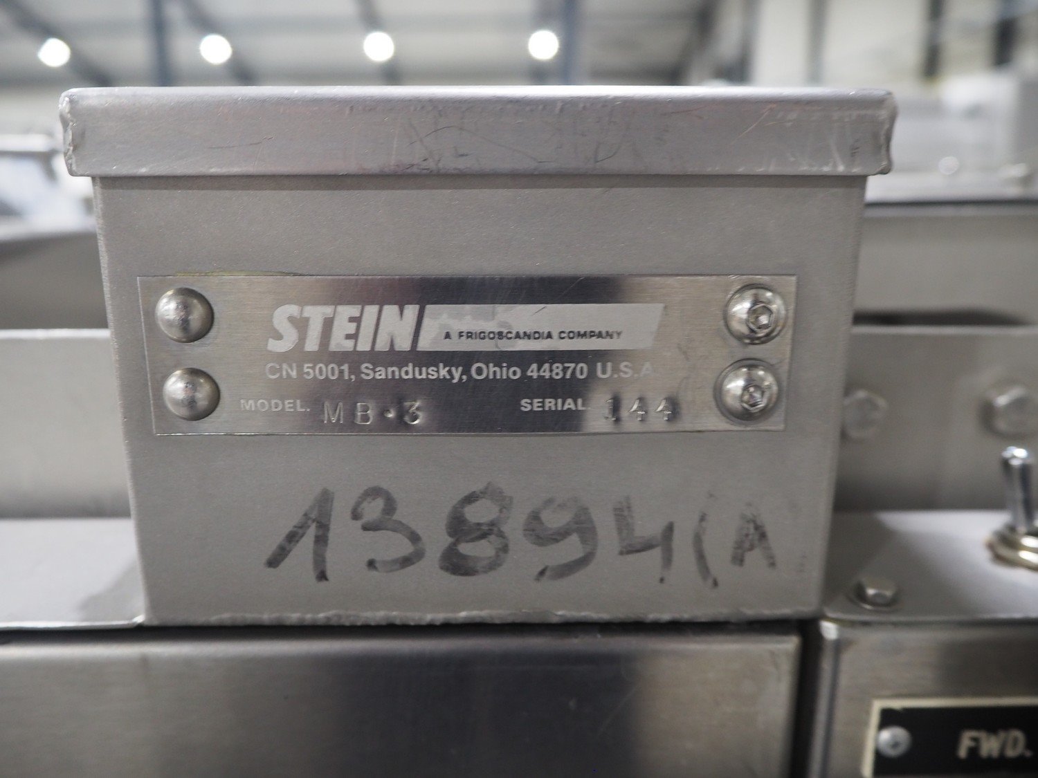 Stein coating line, model: MB.3, serial number: 144, s/s belt, belt width: (1x) 305 mm (1x) 205 mm (1x) 155 mm, electric heated, working width: (1x) 205 mm (1x) 140 mm, clearance: 310 mm x 350 mm, total dimensions: 2250 mm x 550 mm x 1670 mm. Technical condition unkown.