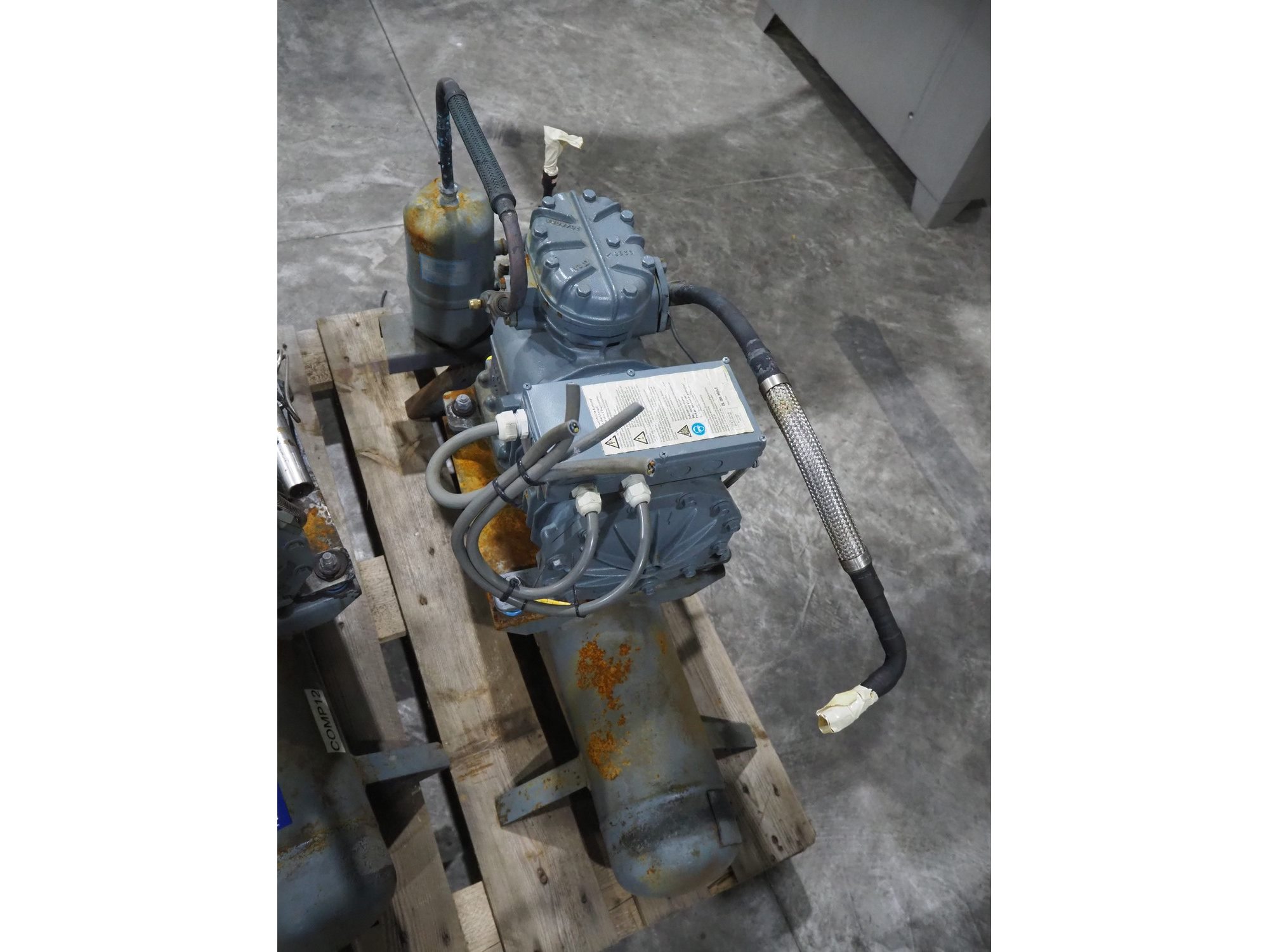 DWM Copeland cooling compressor, type: DLFP-20X-EWL, number: 2078532, year of construction: 2003, 220/240/380/420 V, 3 Ph, 50 Hz, 7.8/4.5 A, capacity: 12.90 m³ per hour, total dimensions: 1250 mm x 500 mm x 720 mm.