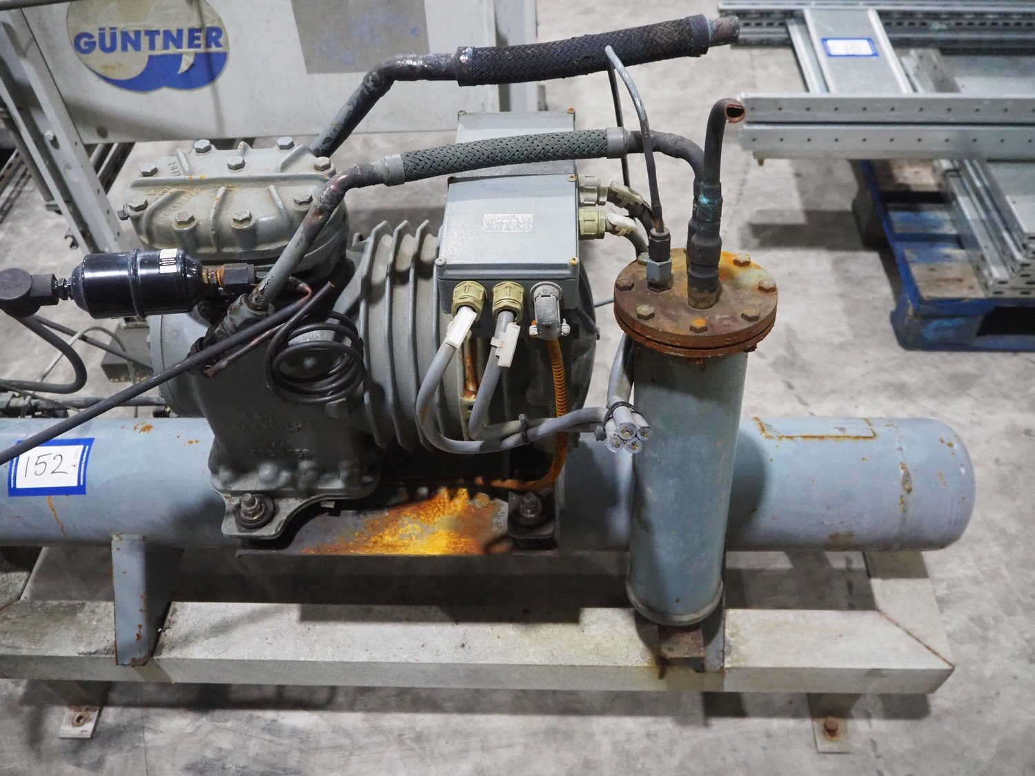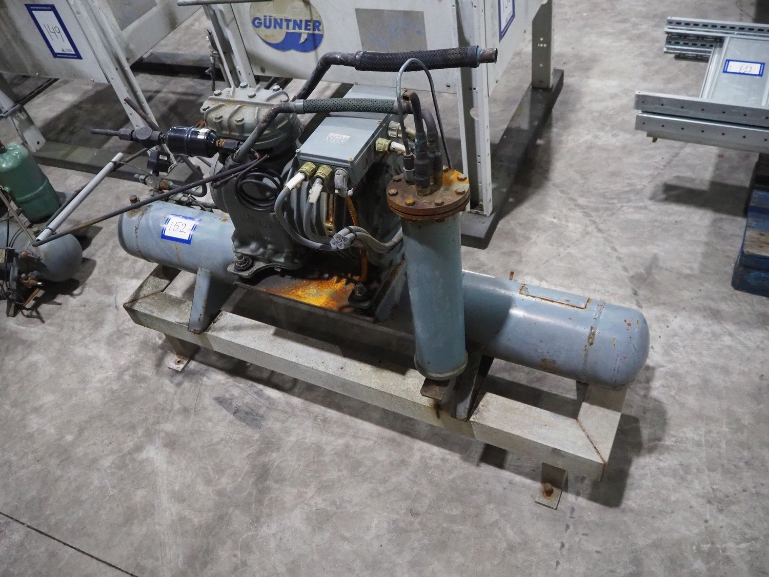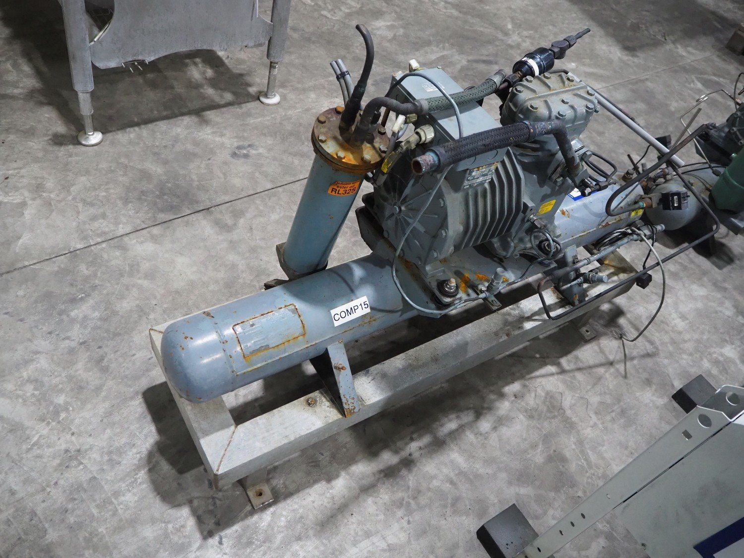 DWM Copeland cooling compressor, type: 0829034, serial number: 370310, year of construction: 1992, 220/240/380/420 V, 3 Ph, 50 Hz, 9.5/5.5 A, capacity 12.9 m³ per hour, dimensions: 1250 mm x 500 mm x 720 mm.