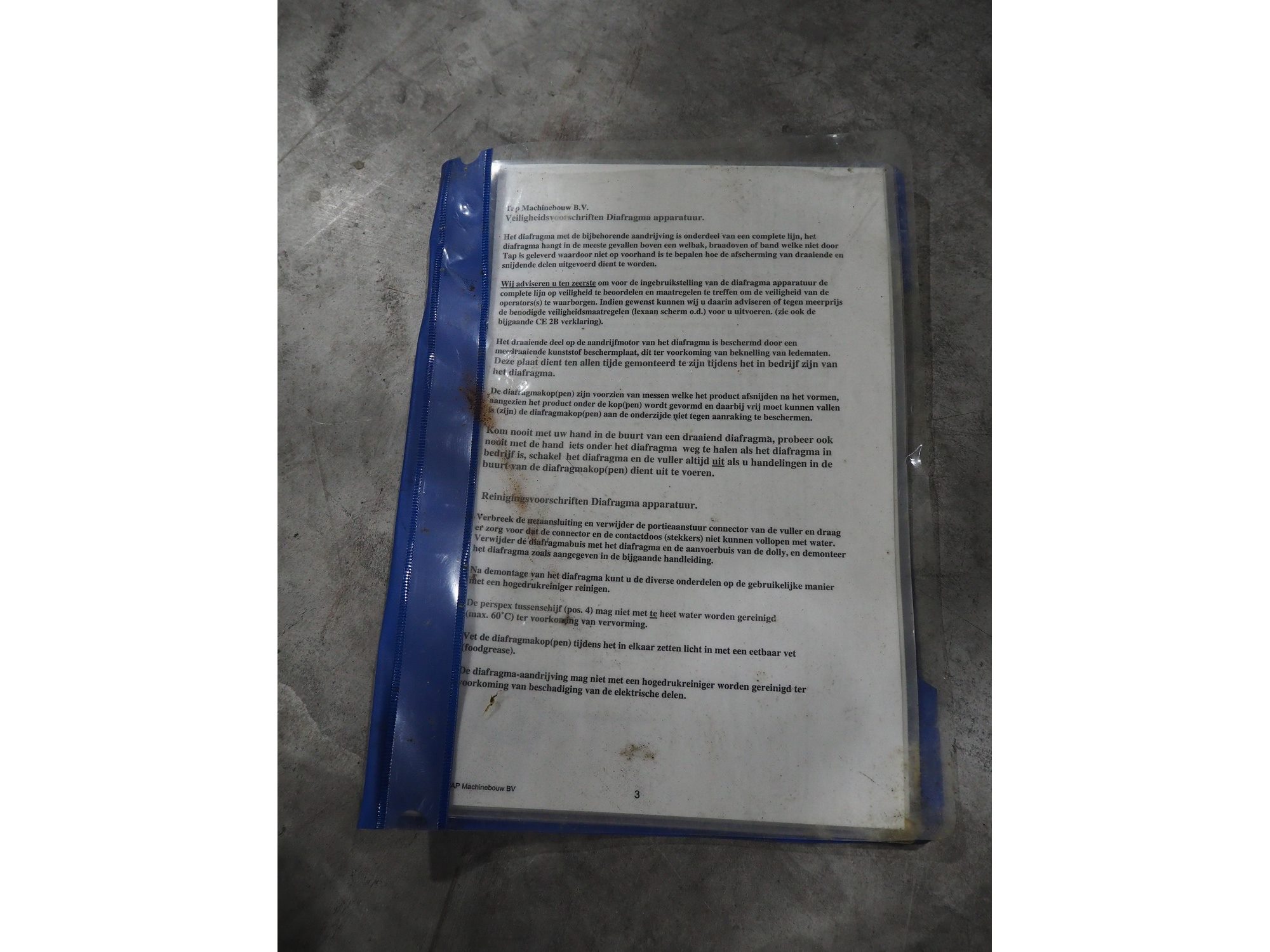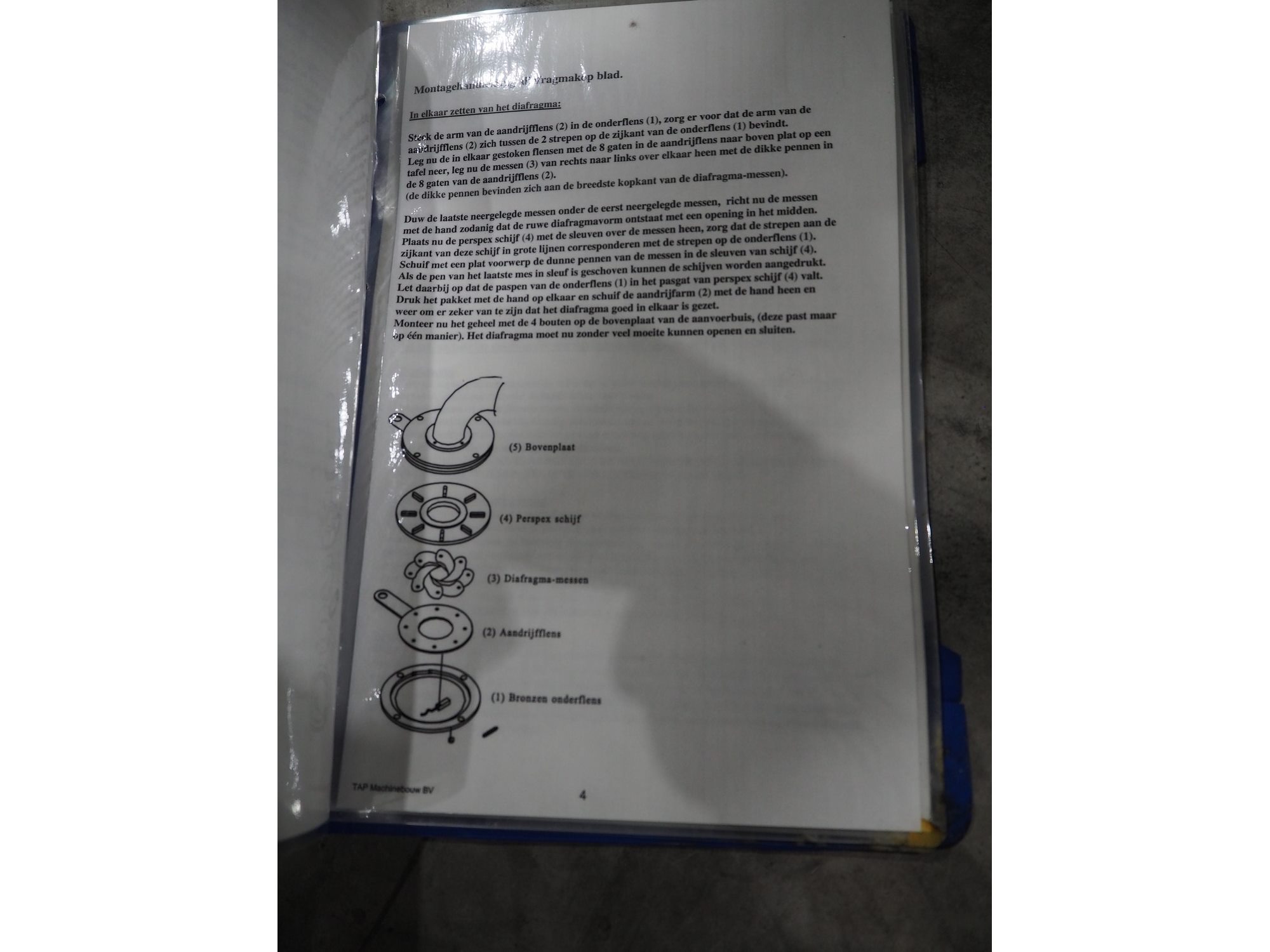 Tap Machinebouw B.V. mobile diaphragm, serial number: 1-2-3-6DF25/50/70, 3 x 400 V, 50 Hz, 0,37 Kw, clearance: Ø 58, total dimensions: 1350 mm x 785 mm x 1240 mm. Including 3 crates with parts.