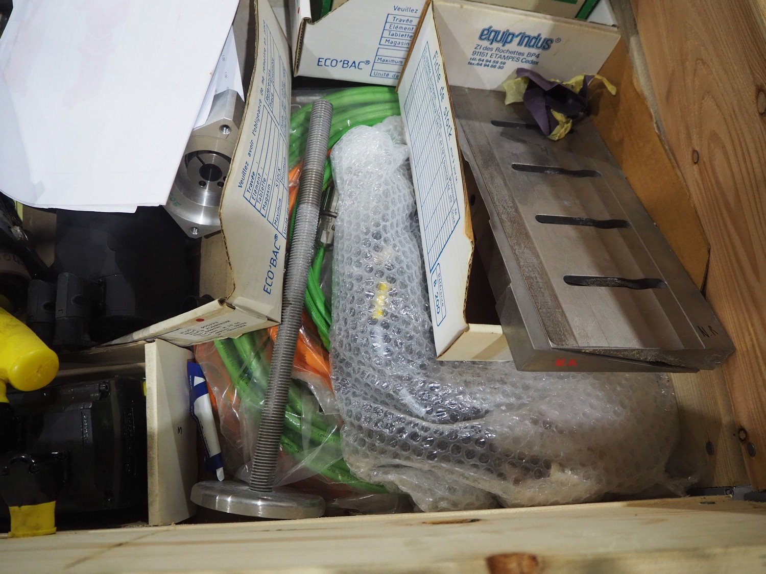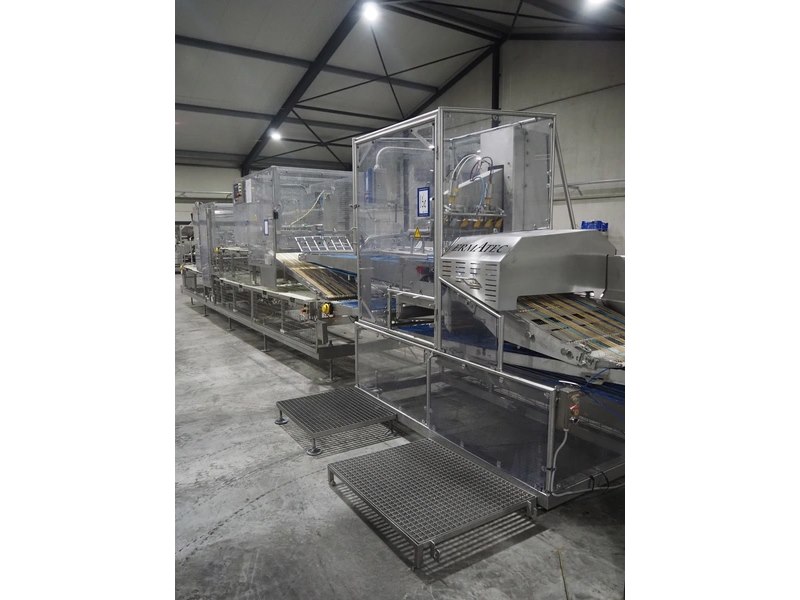 Ermatec ultrasonic slicing line used for cheese, type: 1717-19-12-08, serial number: Trancheur From, year of construction: 17/12/08, working width: 600 mm, 6 lanes, plastic belts, belt width: 75 mm, total dimensions: 13200 mm x 1900 mm x 2600 mm. Including pallet with various parts, dimensions: 1200 mm x 980 mm x 1120 mm.