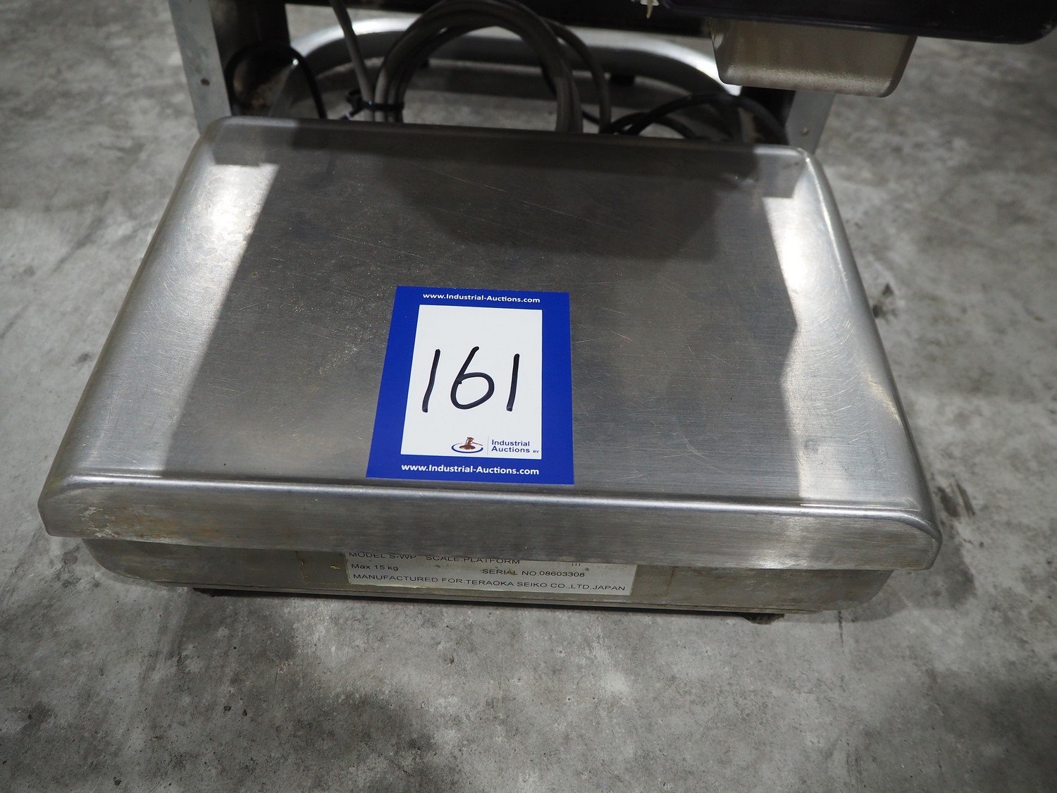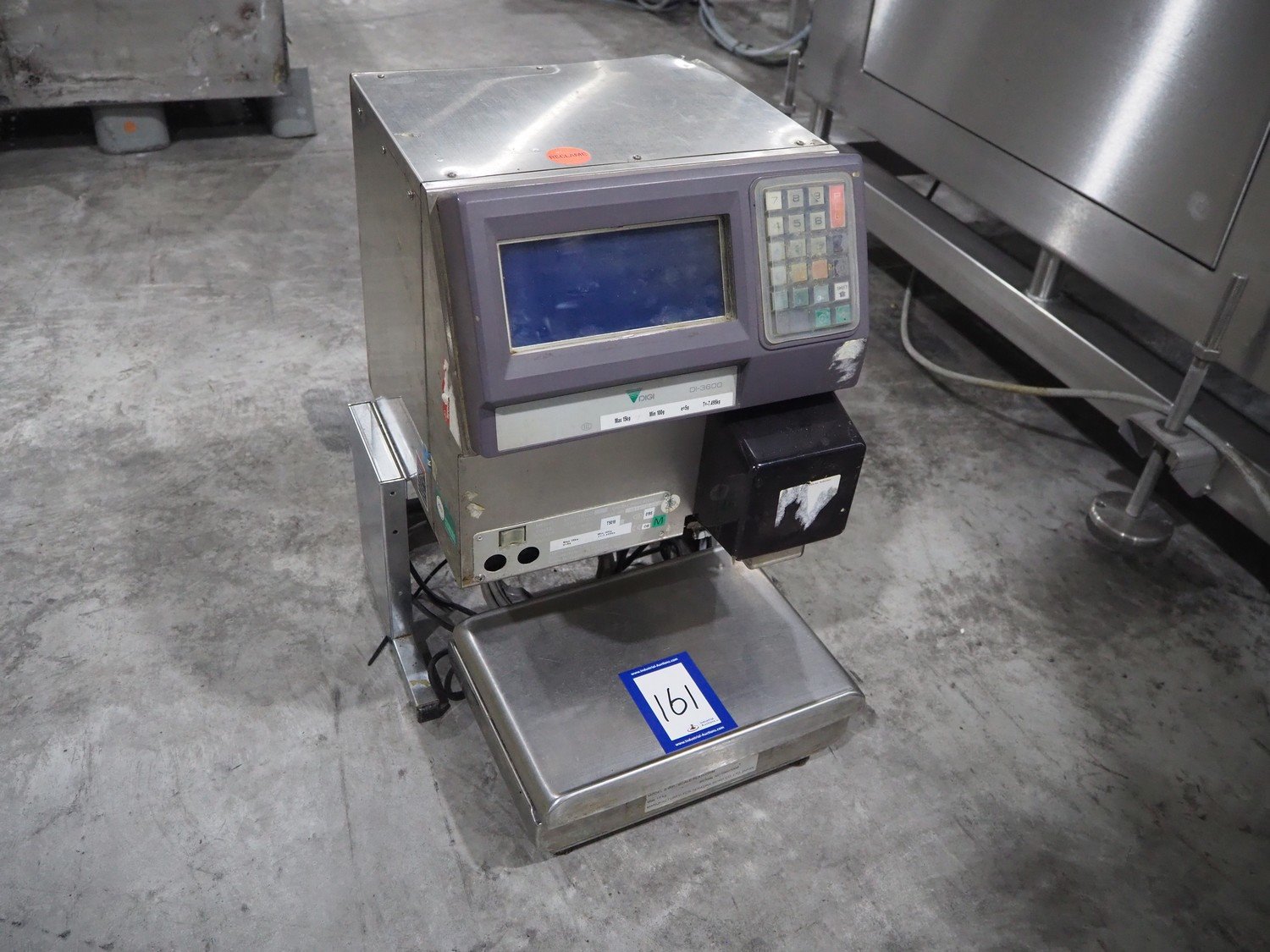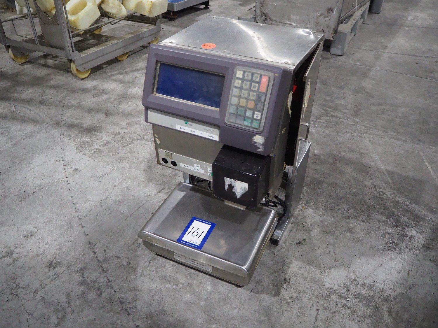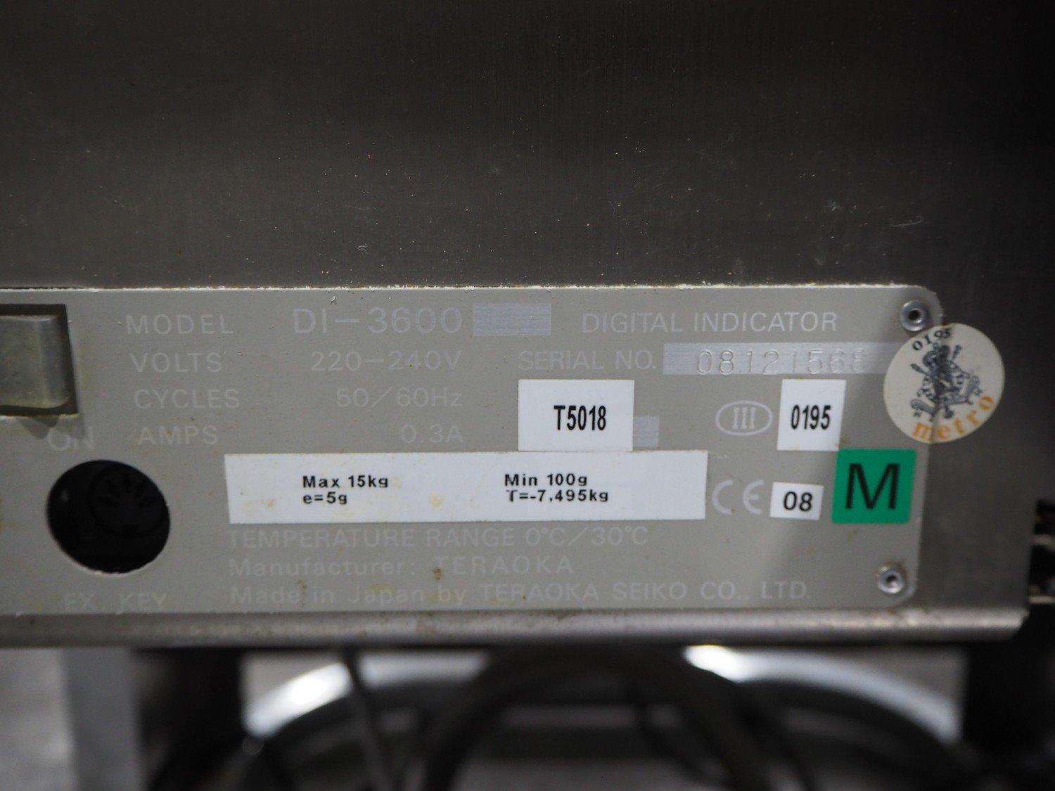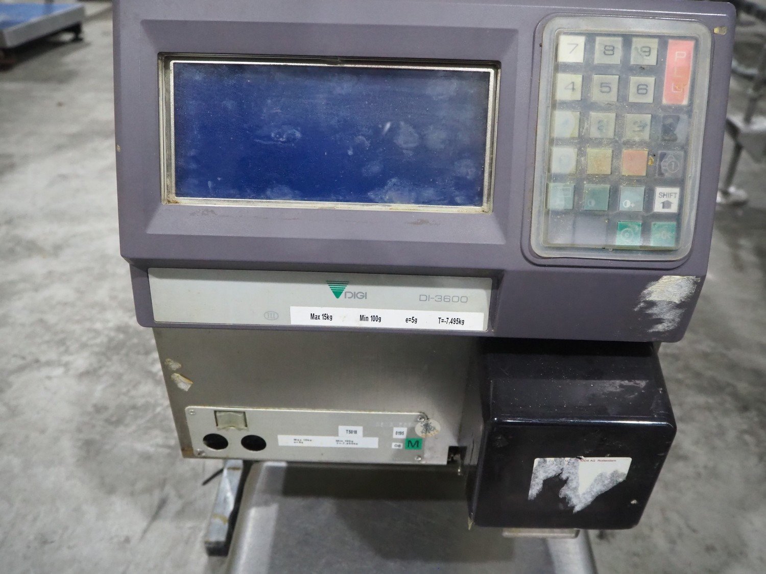 Digi Systems weighing scale with label printer, type: DI-3600, serial number: 08121568, 220-240 V, 50/60 Hz, 0.3 A, min 100 gram, max 15 kg, e= 5 gram, scale dimensions: 345mm x 450 mm, total dimensions: 480 mm x 400 mm x 600 mm.