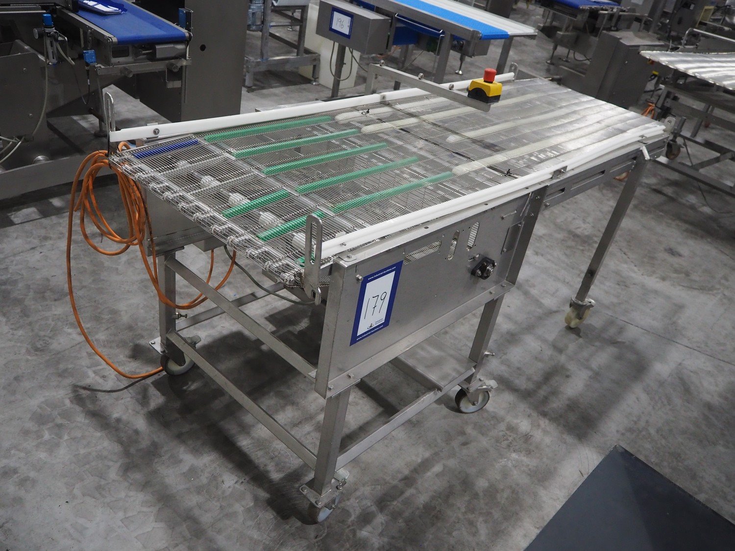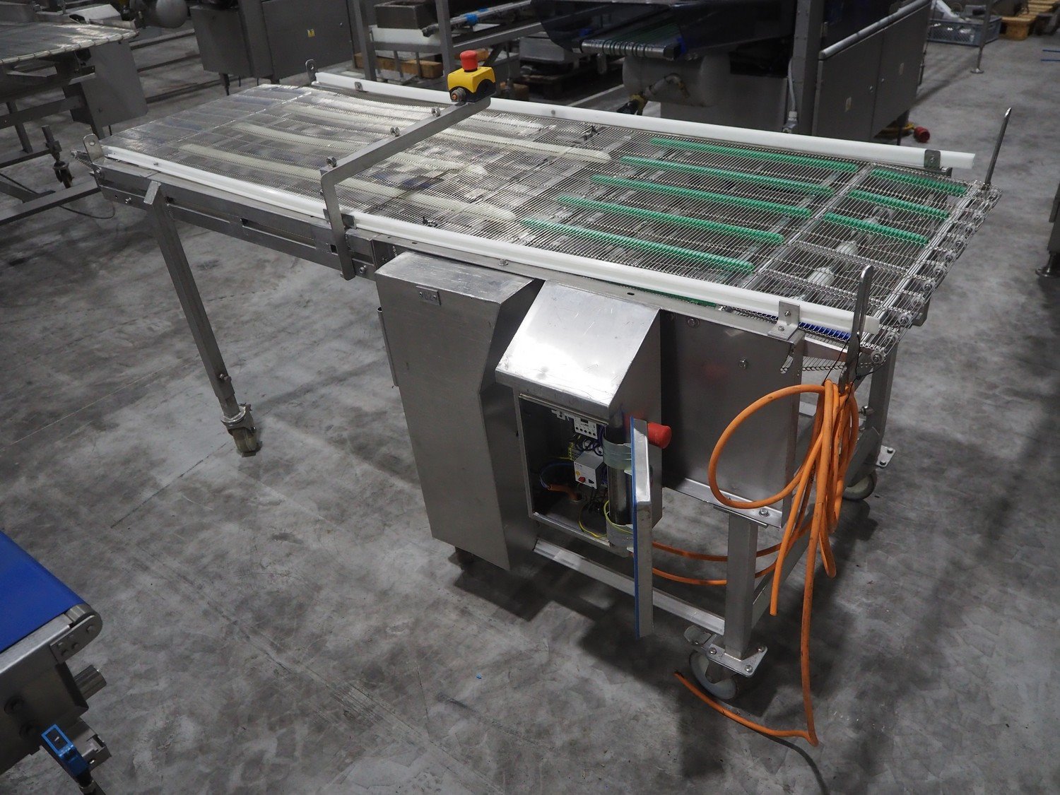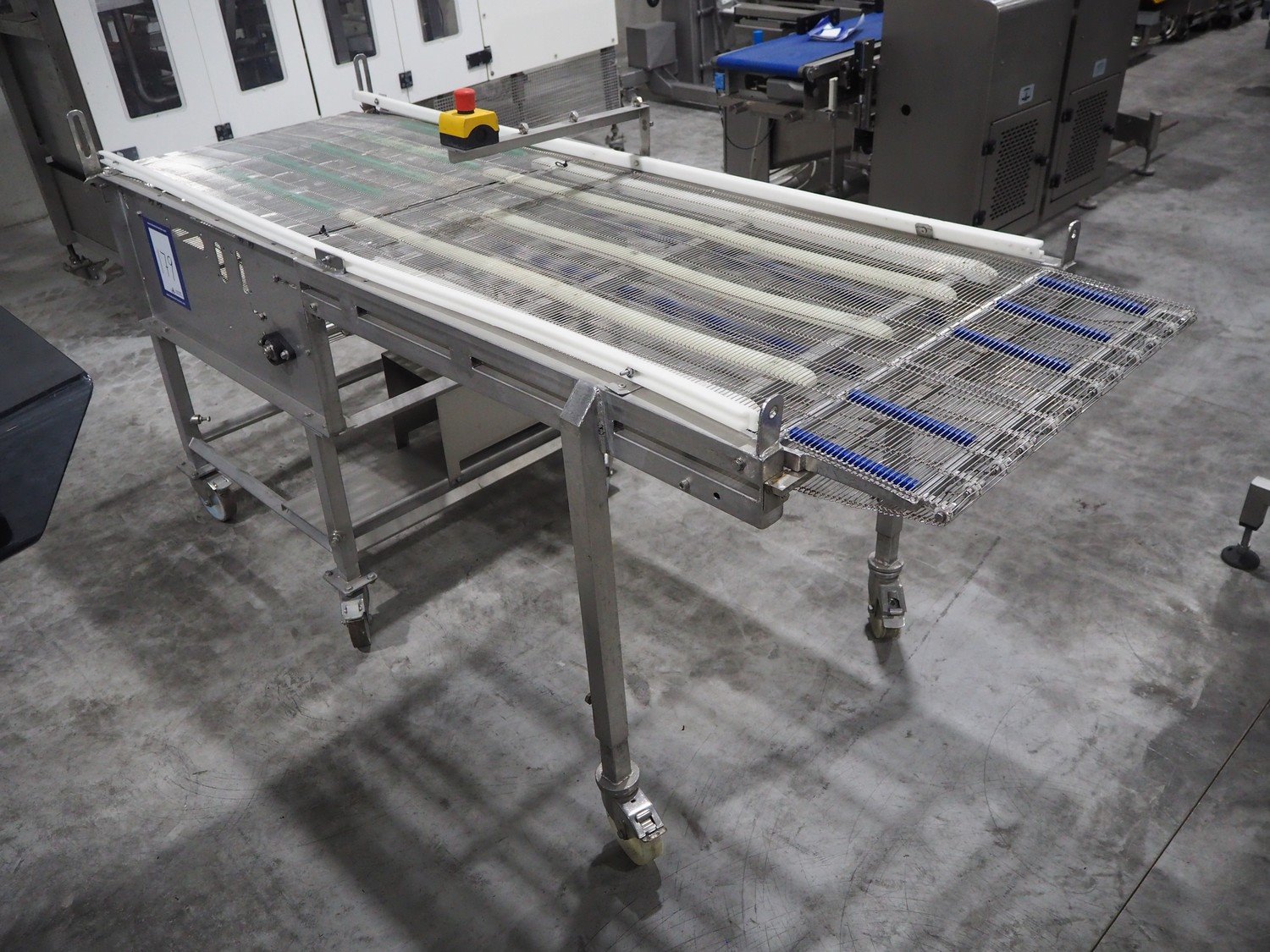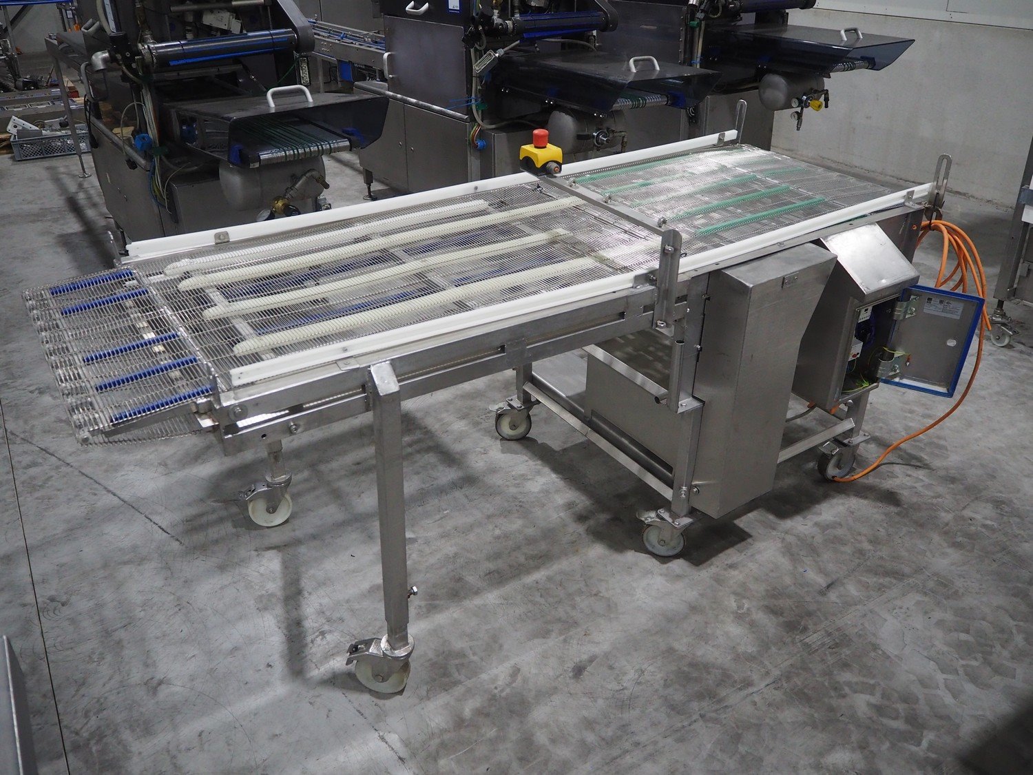 S/s mobile mesh belt, belt width: 690 mm, total dimensions: 2250 mm x 1000 mm x 1150 mm.