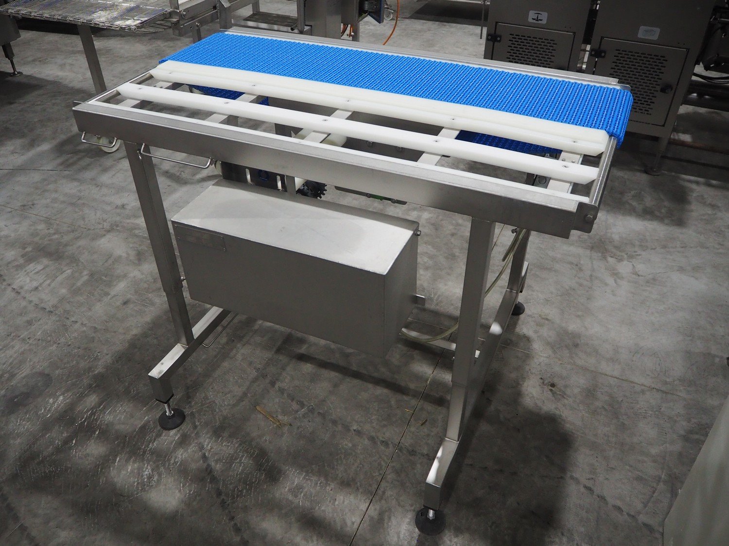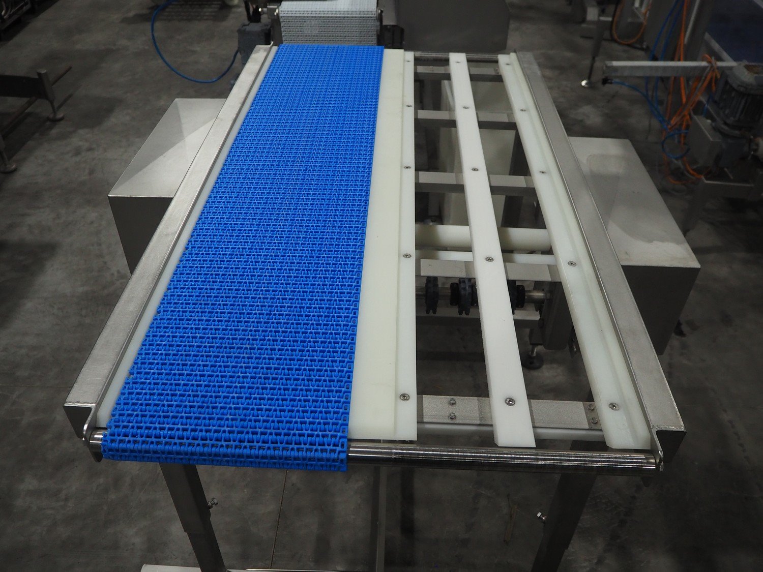 Jansen Techniek double transport belt, type: S1100 F6 PP, number: 20115047, year of construction: 2012, plastic mesh belt, belt width: (1x) 265 mm, total dimensions: 1250 mm x 1100 mm x 950 mm. Without 1 belt.