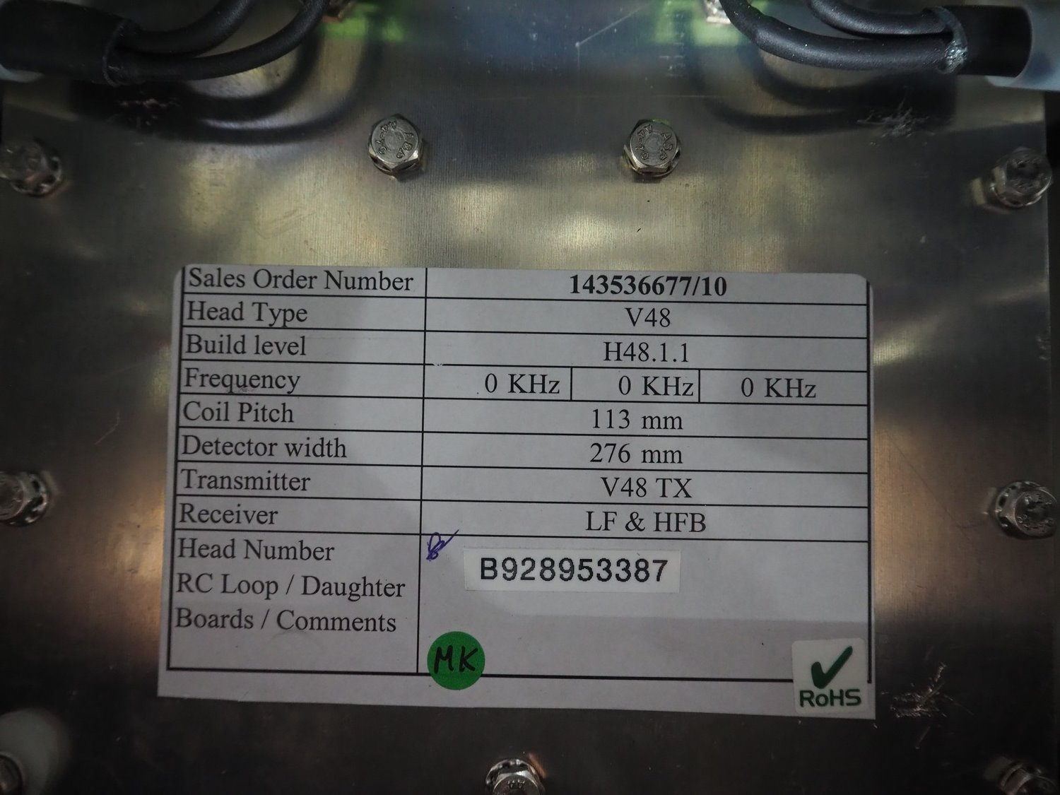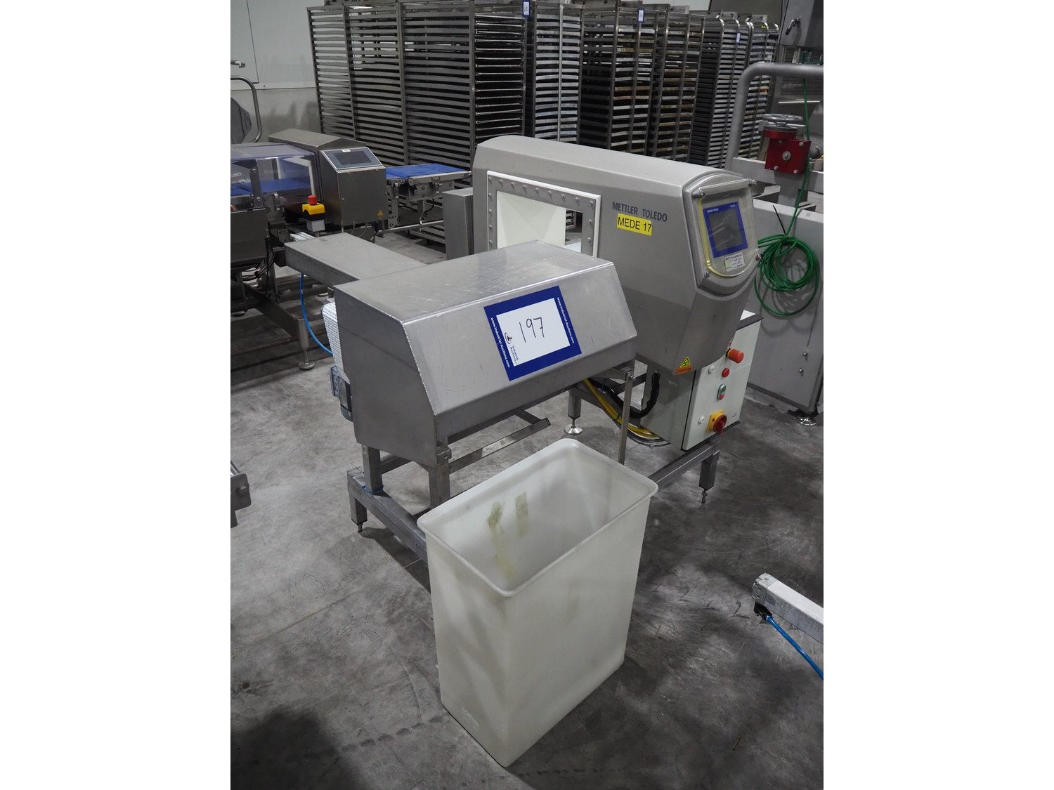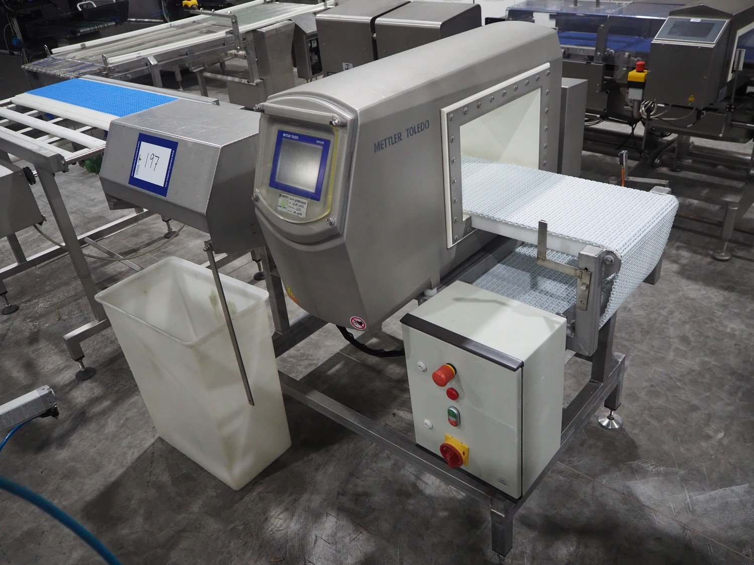 Mettler Toledo metal detector with rejector, model : V48-RAD, 50/60 Hz, 100/240V, 340 W, plastic mesh belt, belt width: 300 mm, clearance: 350 mm x 400 mm, total dimensions: 1450 mm x 1200 mm x 1250 mm.