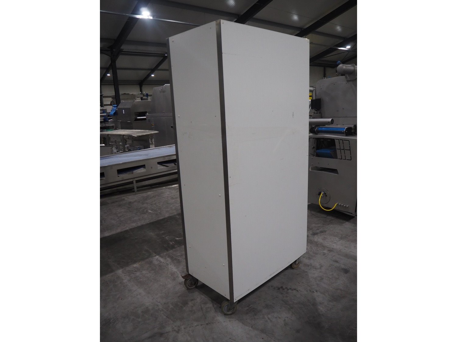 Mobile wooden cabinet, dimensions: 1000 mm x 650 mm x 2100 mm.