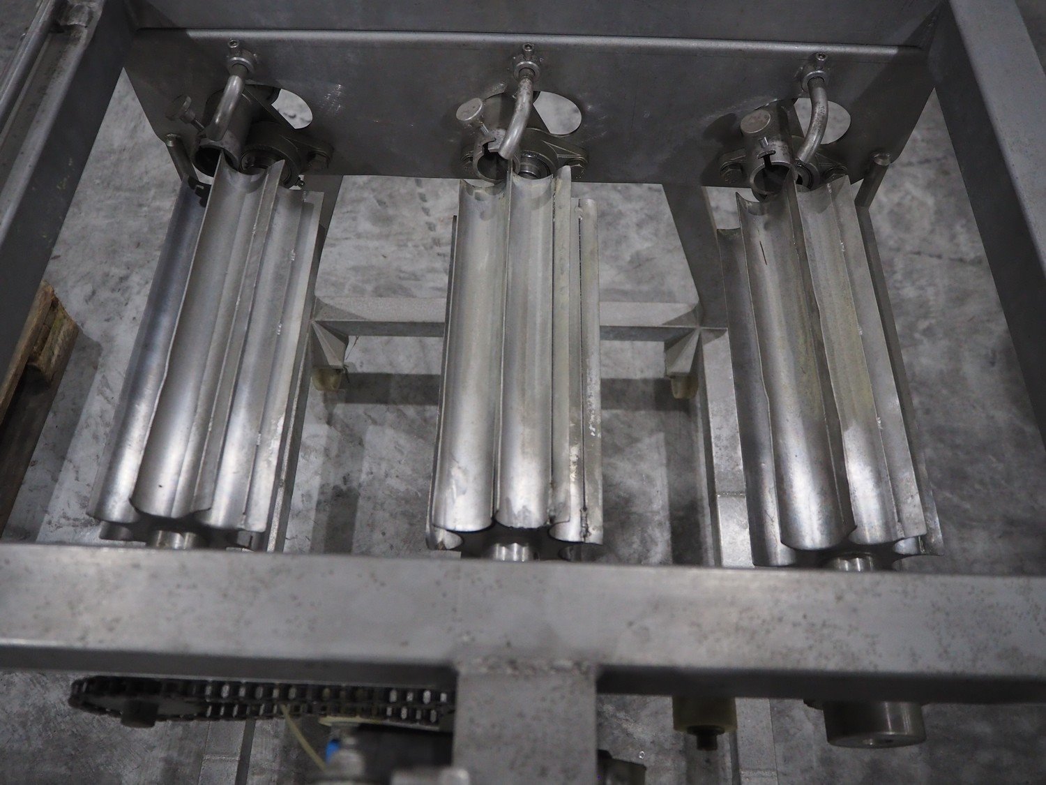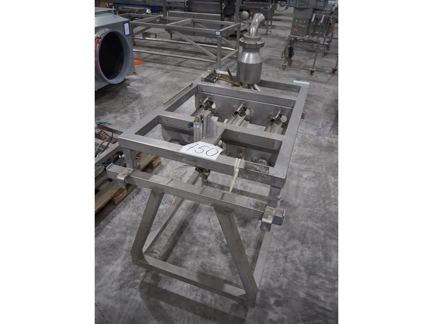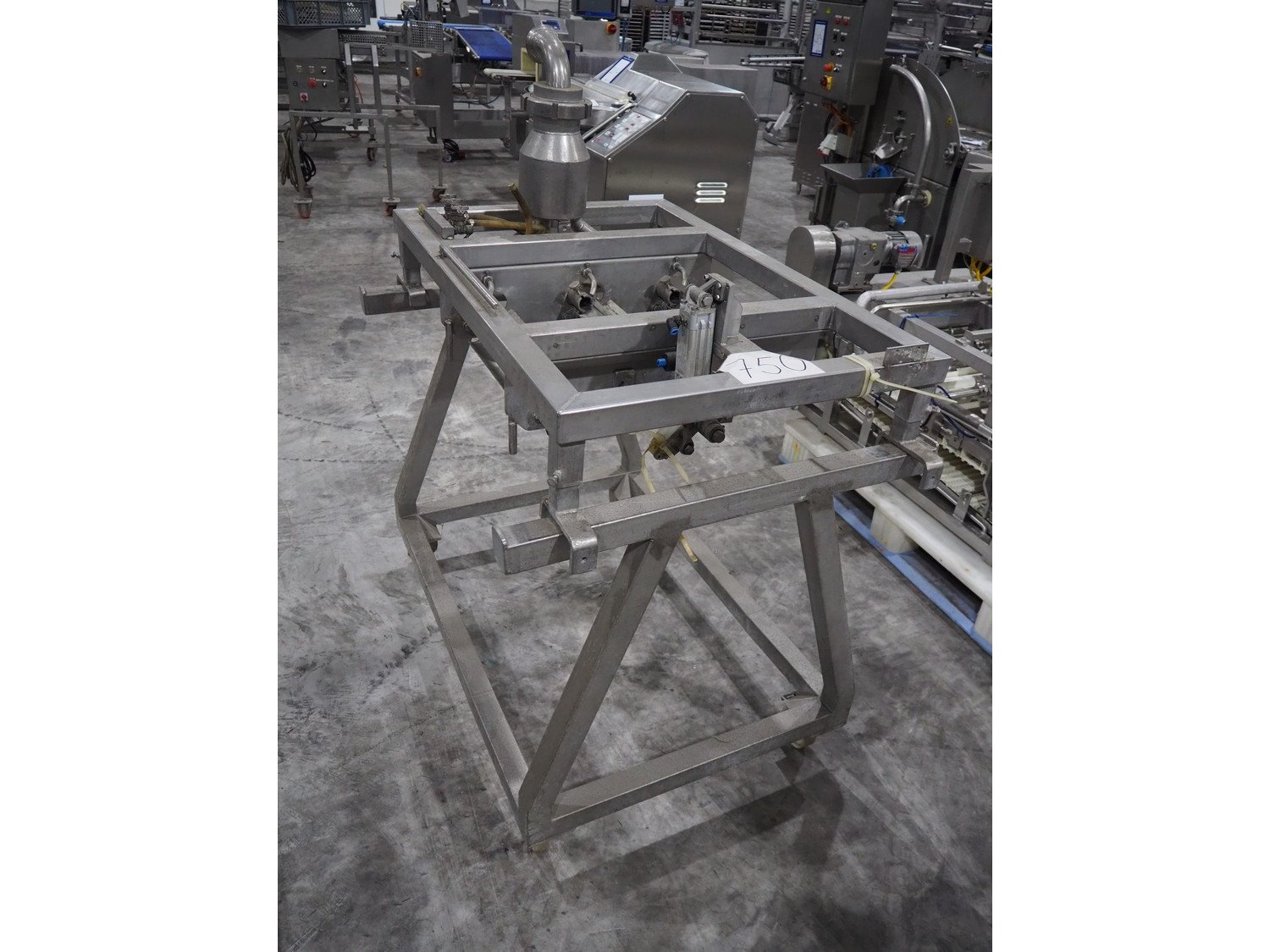 Mobile skinless sausage cutting machine, length sausages: 300 mm, total dimensions: total dimensions: 1040 mm x 500 mm x 1400 mm.