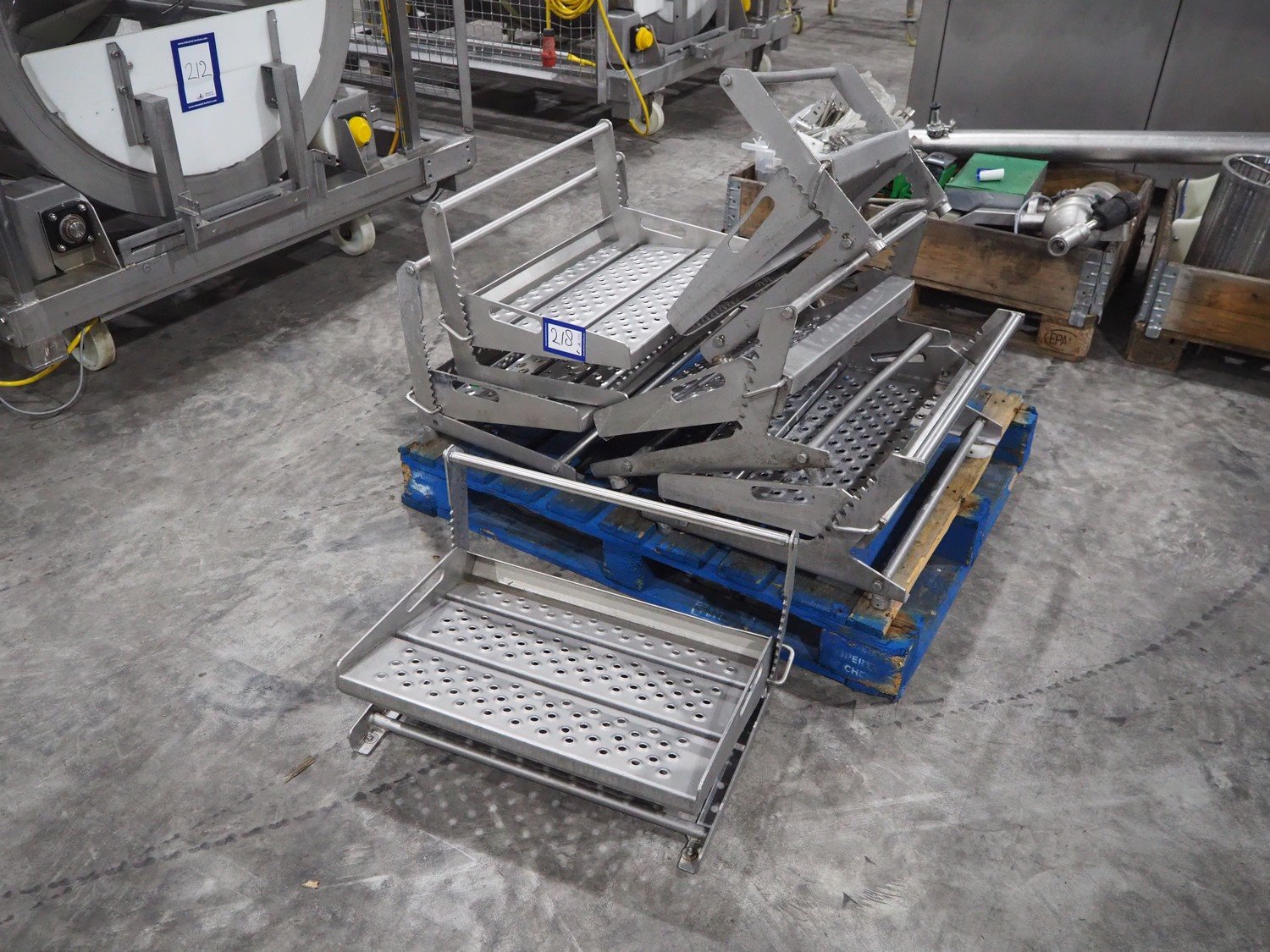 Pallet with 6 s/s ergo steps, dimensions: 750 mm x 470 mm x 430 mm.